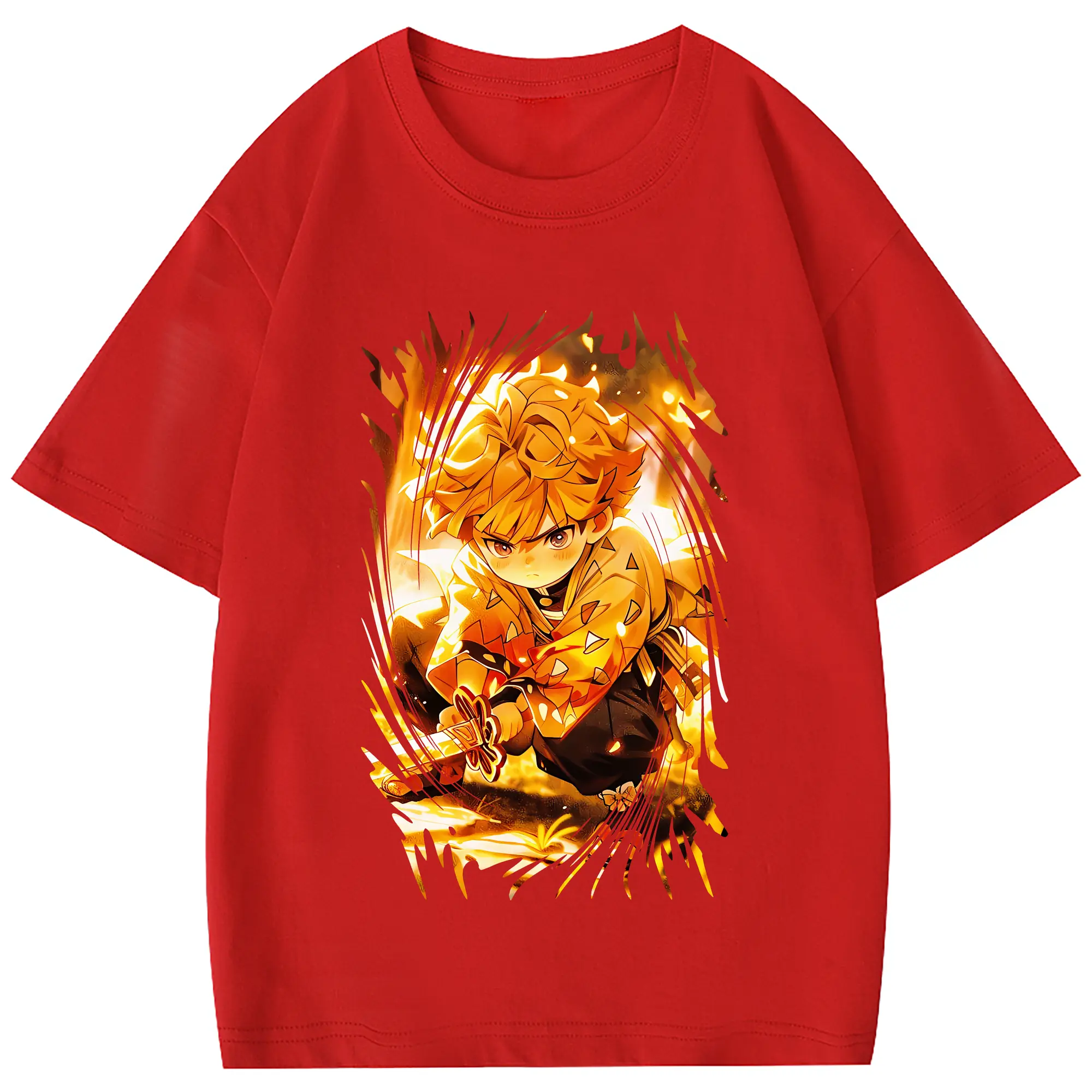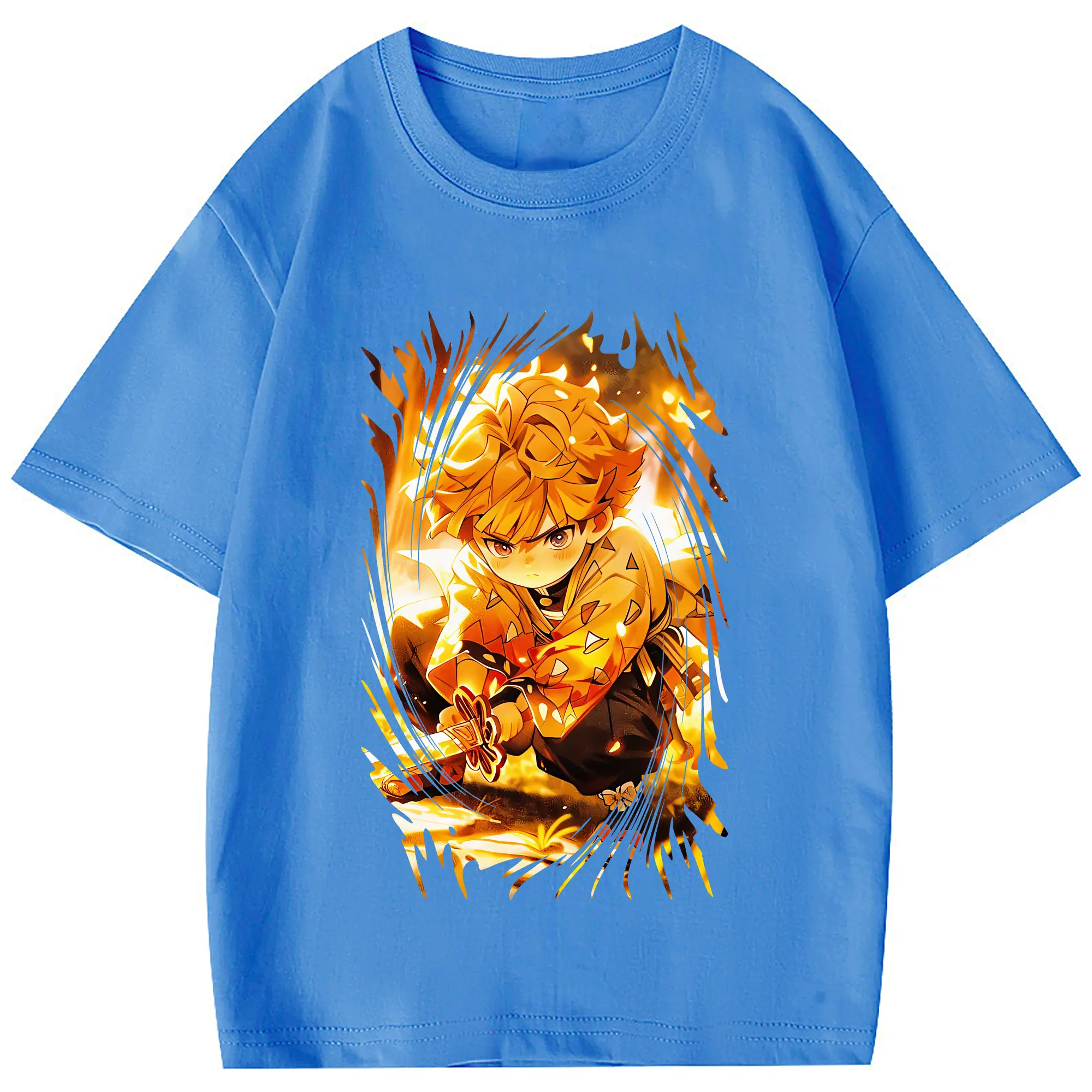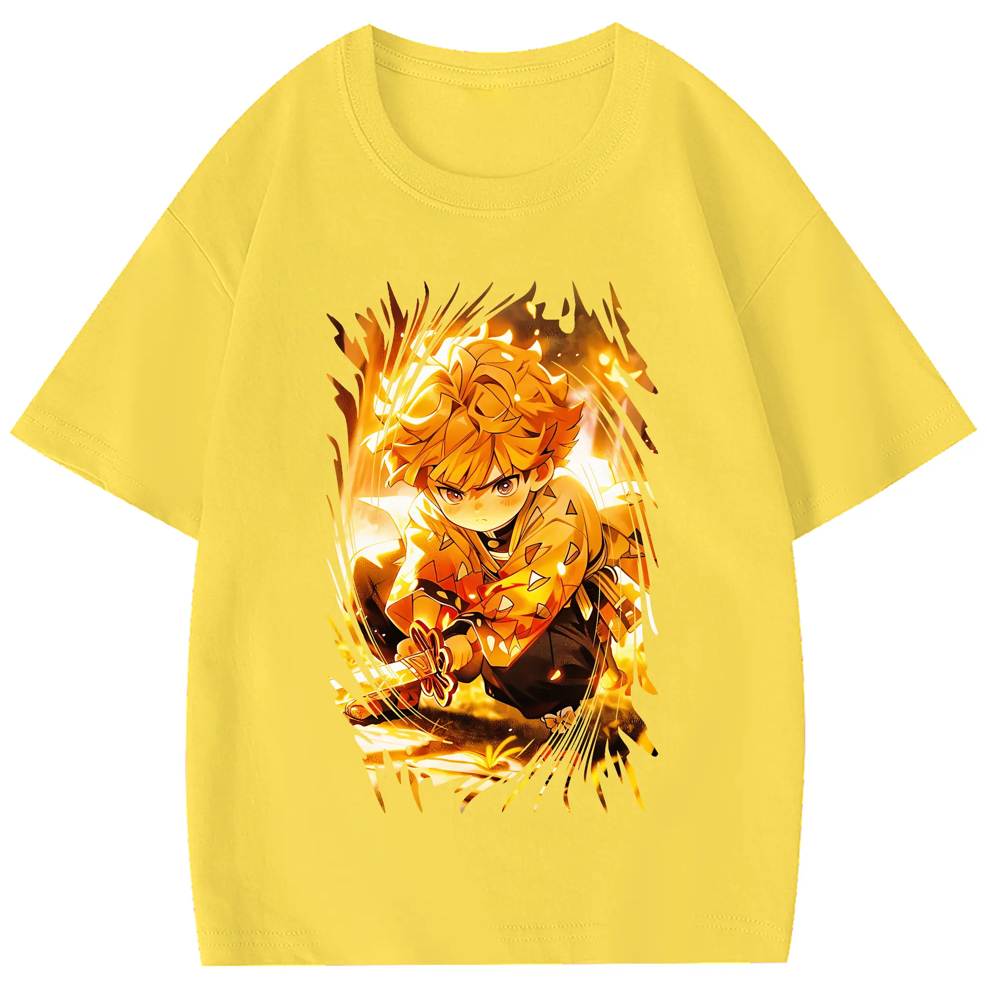 鬼滅の刃 グッズ,我妻 善逸 - 綿100% 半袖Tシャツ ・ フロントプリント ・ 快適 通気性 ・ 日常使い 散歩 スポーツ用