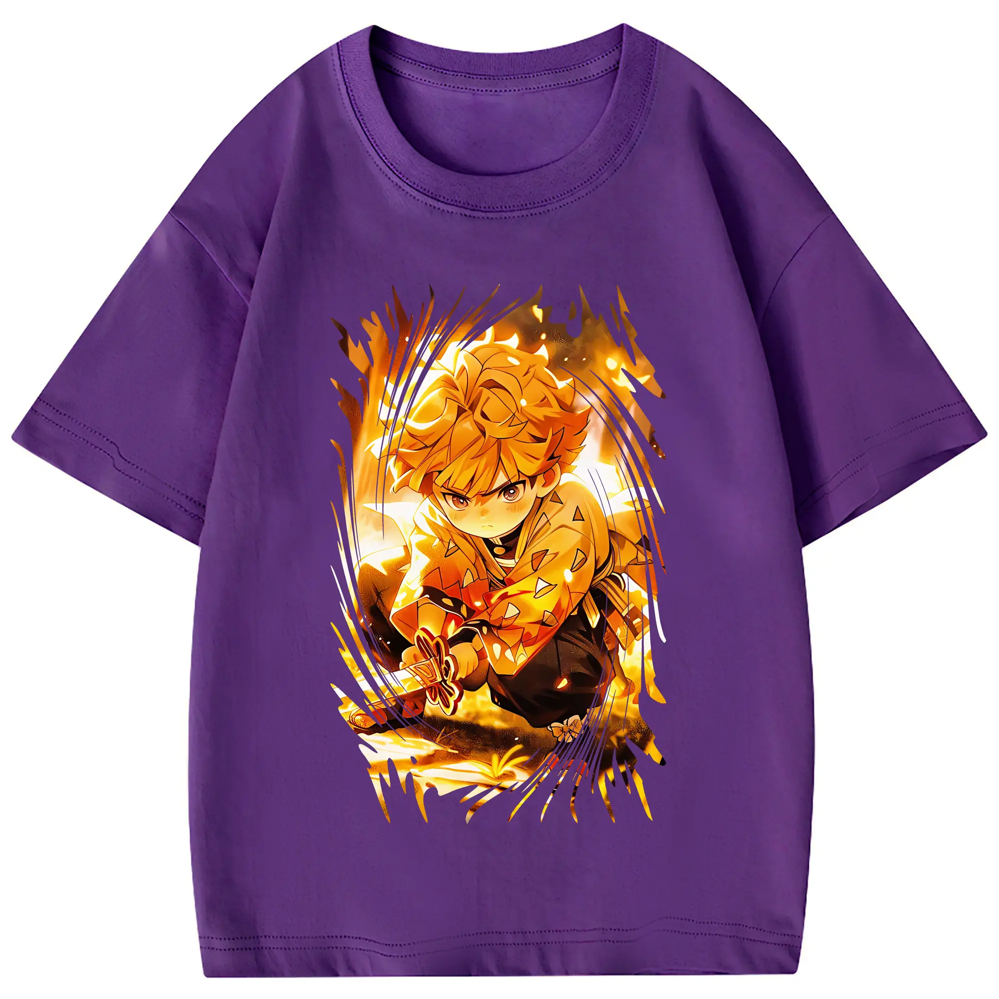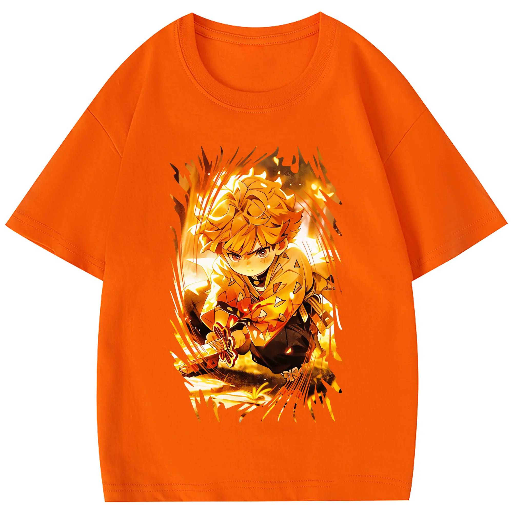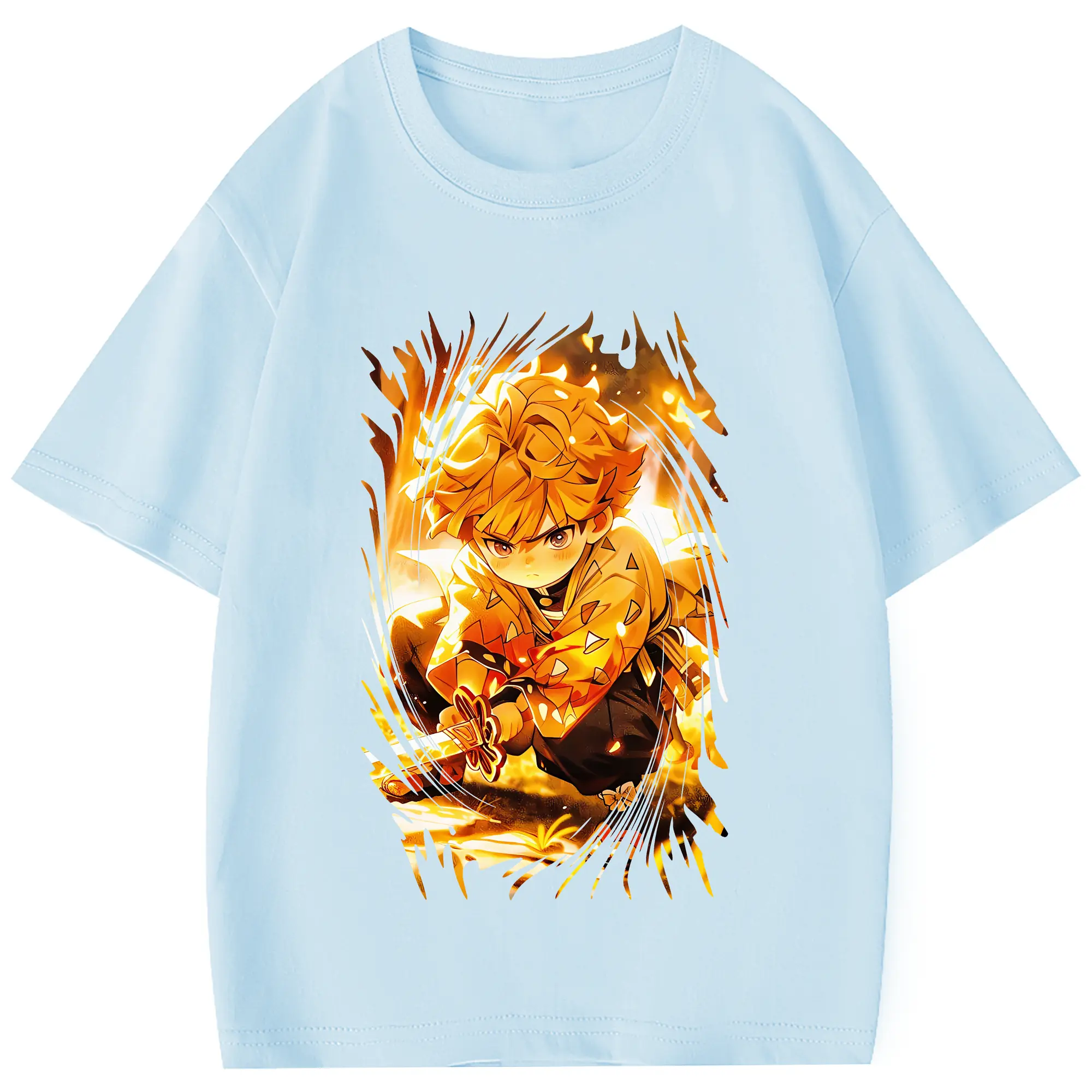 鬼滅の刃 グッズ,我妻 善逸 - 綿100% 半袖Tシャツ ・ フロントプリント ・ 快適 通気性 ・ 日常使い 散歩 スポーツ用