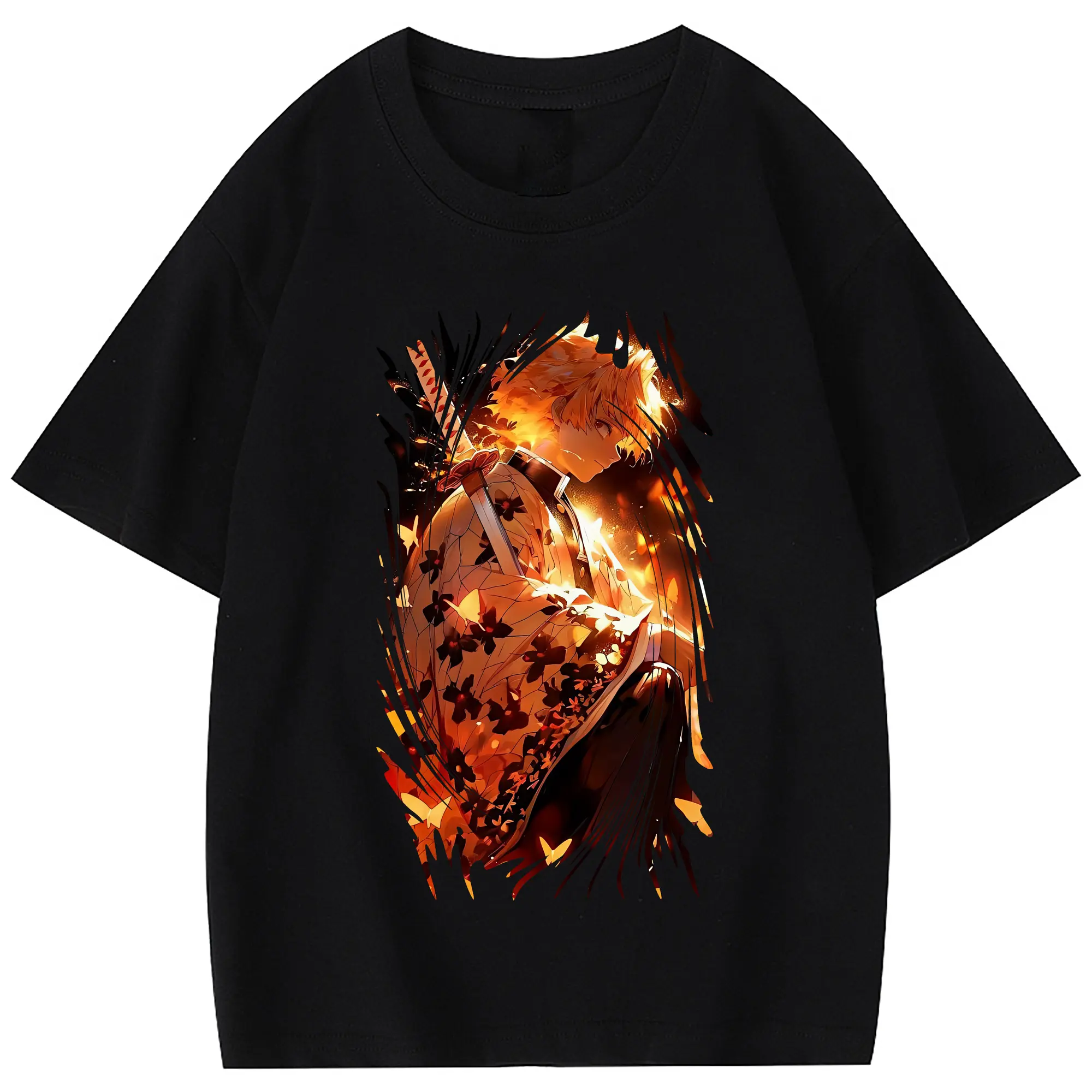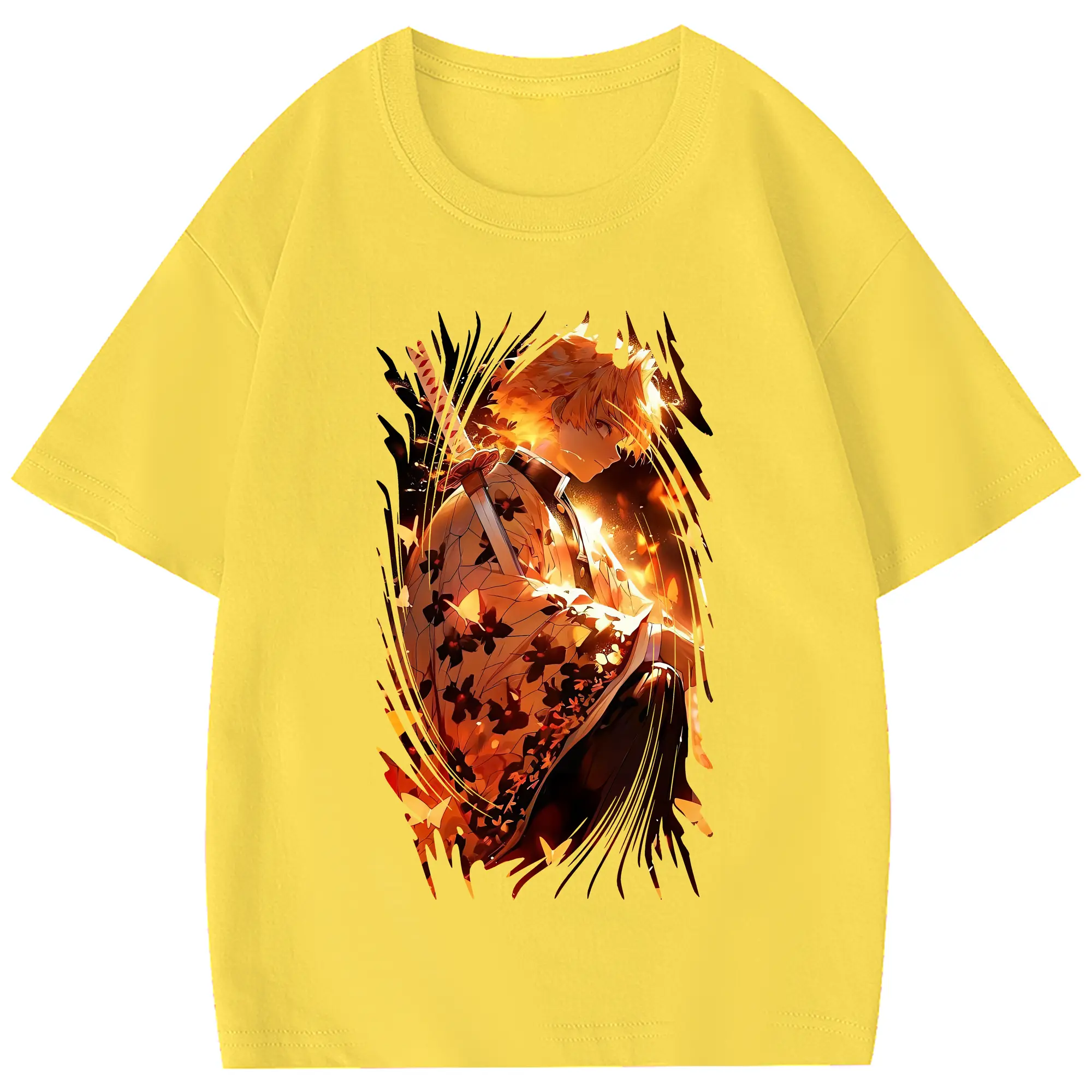 鬼滅の刃 グッズ,我妻 善逸 - 綿100% 半袖Tシャツ ・ フロントプリント ・ 快適 通気性 ・ 日常使い 散歩 スポーツ用