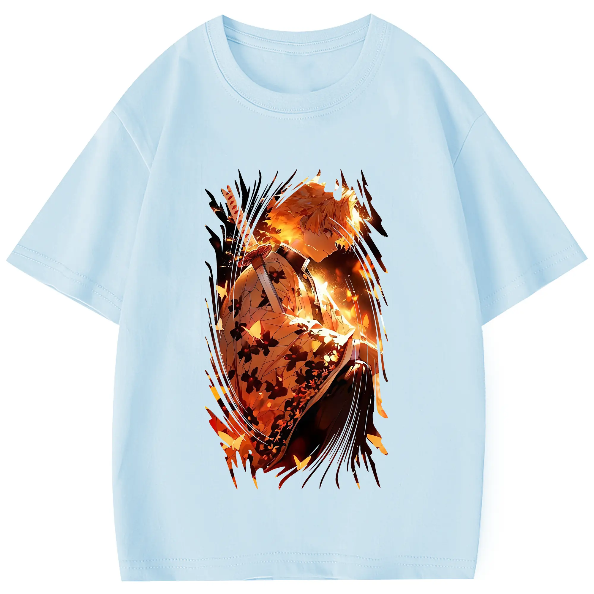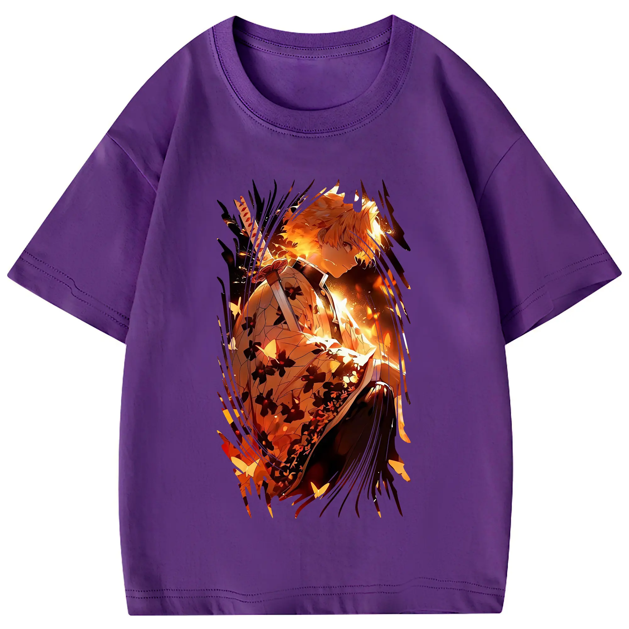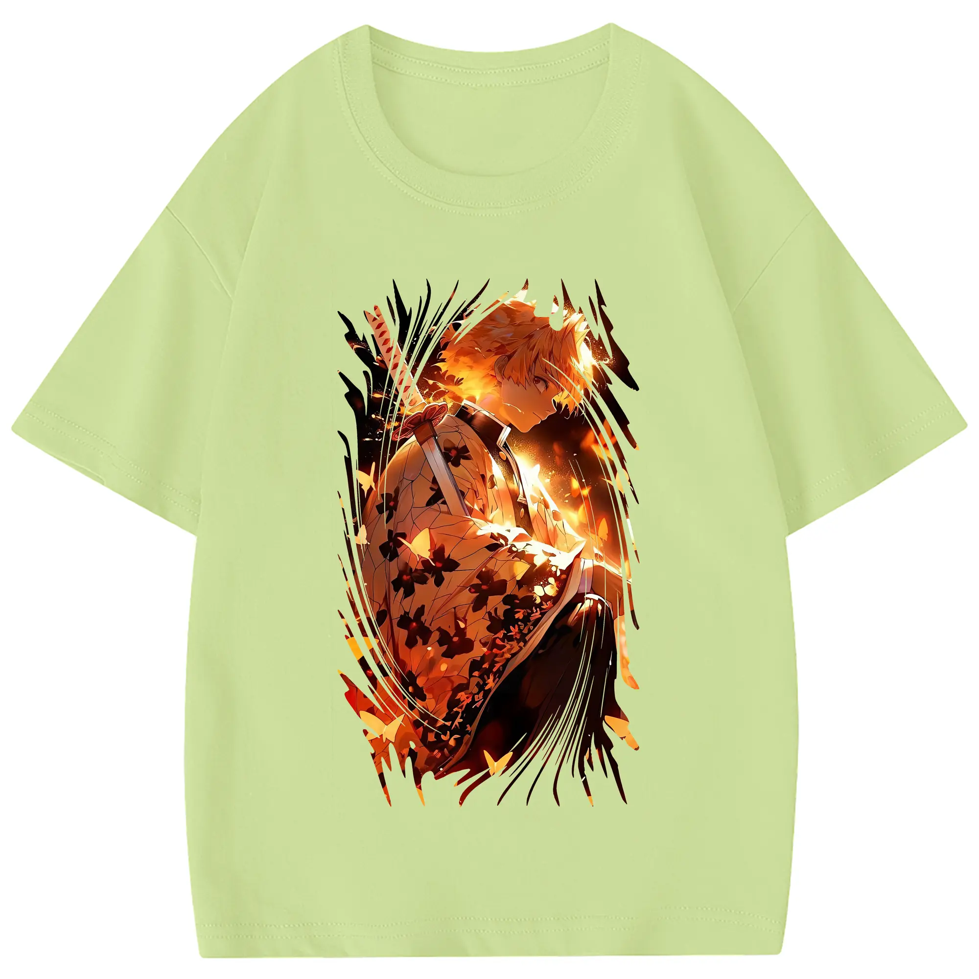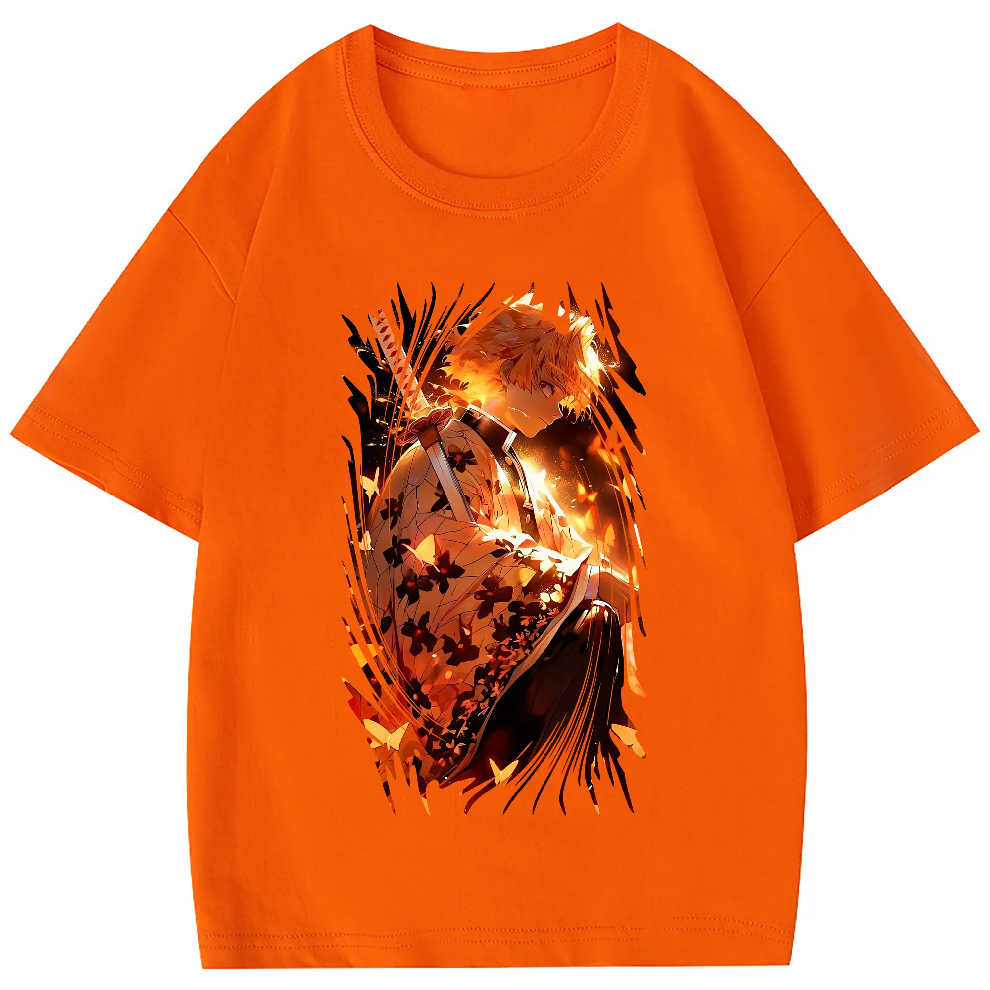 鬼滅の刃 グッズ,我妻 善逸 - 綿100% キッズTシャツ ・ フロントプリント ・ 快適 通気性 ・ スポーツ カジュアル 散歩用