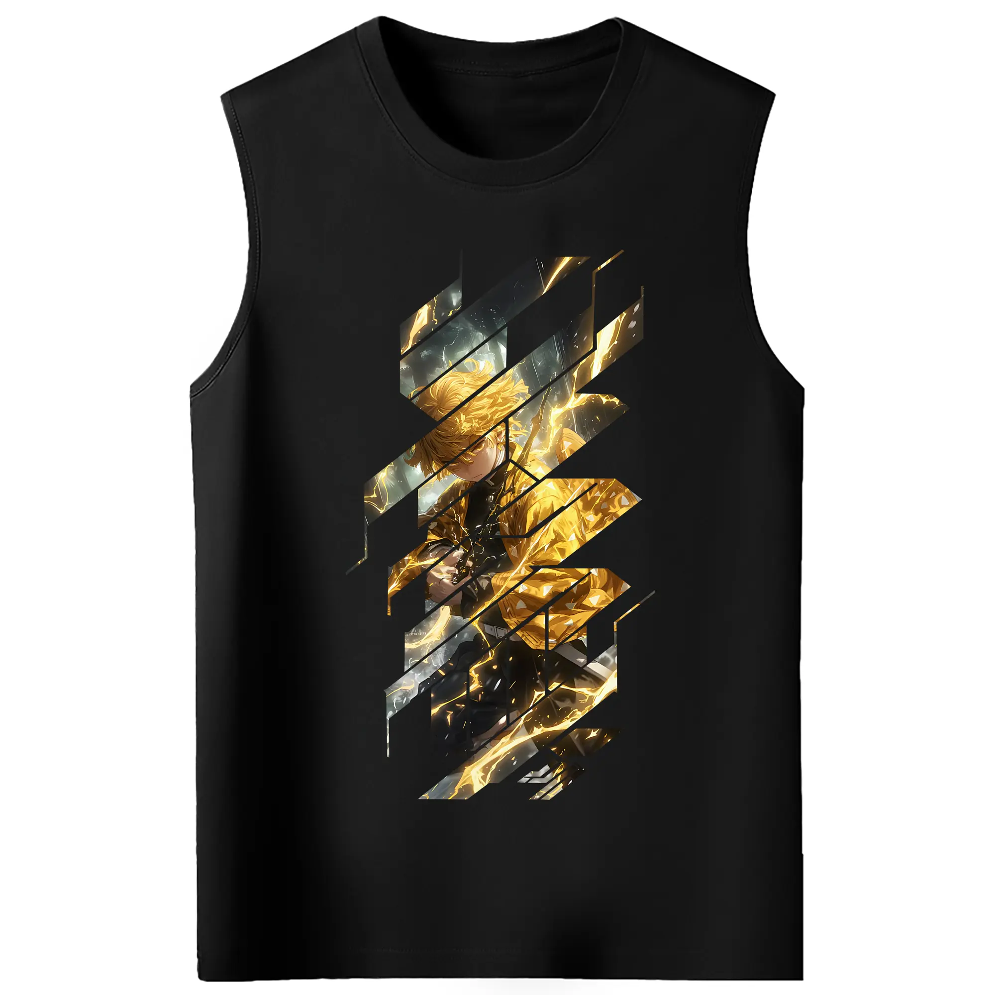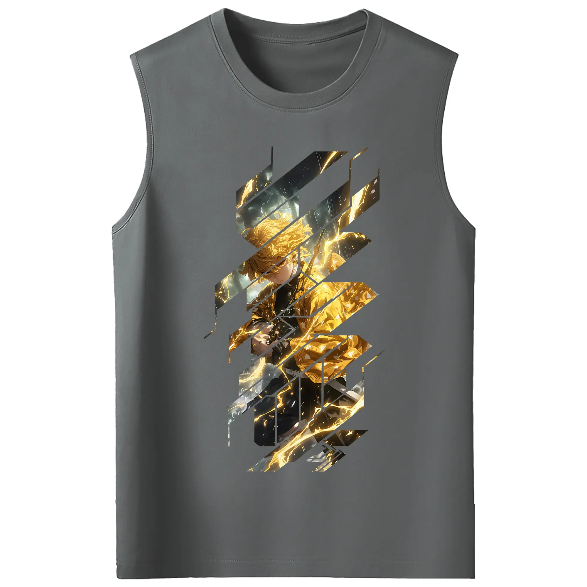 鬼滅の刃 グッズ,我妻 善逸 - コットン100% タンクトップ ・ フロントプリント ・ タイトフィット ・ 快適 通気性 ・ スポーツ カジュアル 散歩用