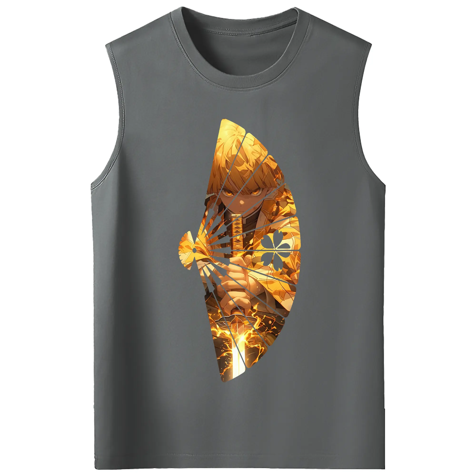 鬼滅の刃 グッズ,我妻 善逸 - コットン100% タンクトップ ・ フロントプリント ・ タイトフィット ・ 快適 通気性 ・ スポーツ カジュアル 散歩用