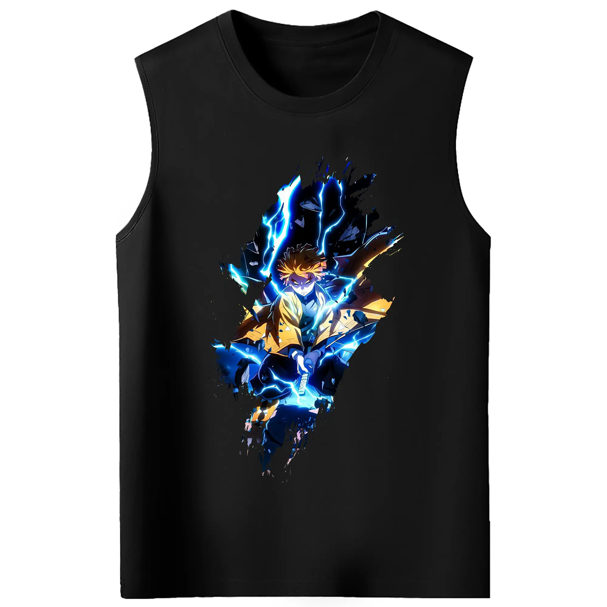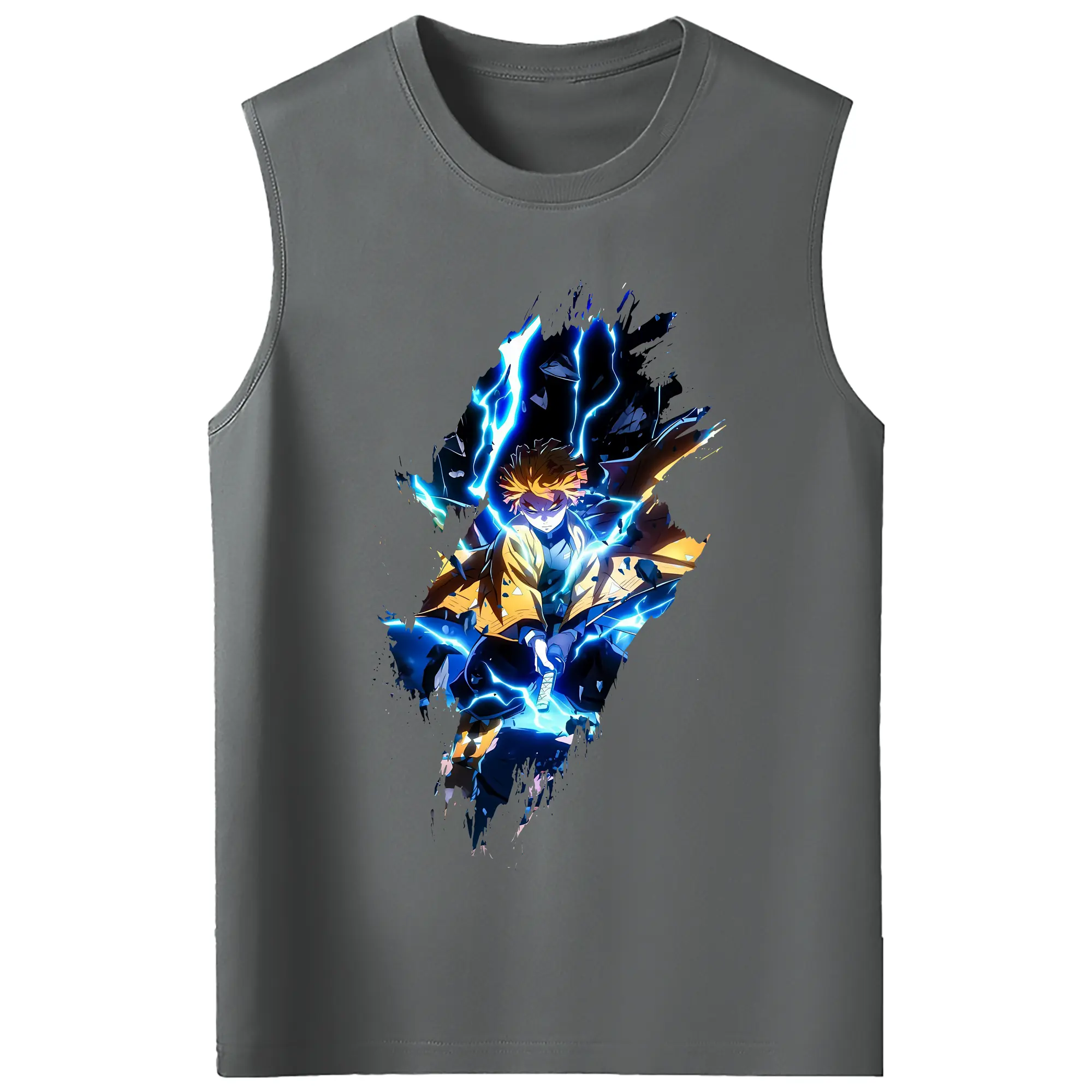 鬼滅の刃 グッズ,我妻 善逸 - コットン100% タンクトップ ・ フロントプリント ・ タイトフィット ・ 快適 通気性 ・ スポーツ カジュアル 散歩用
