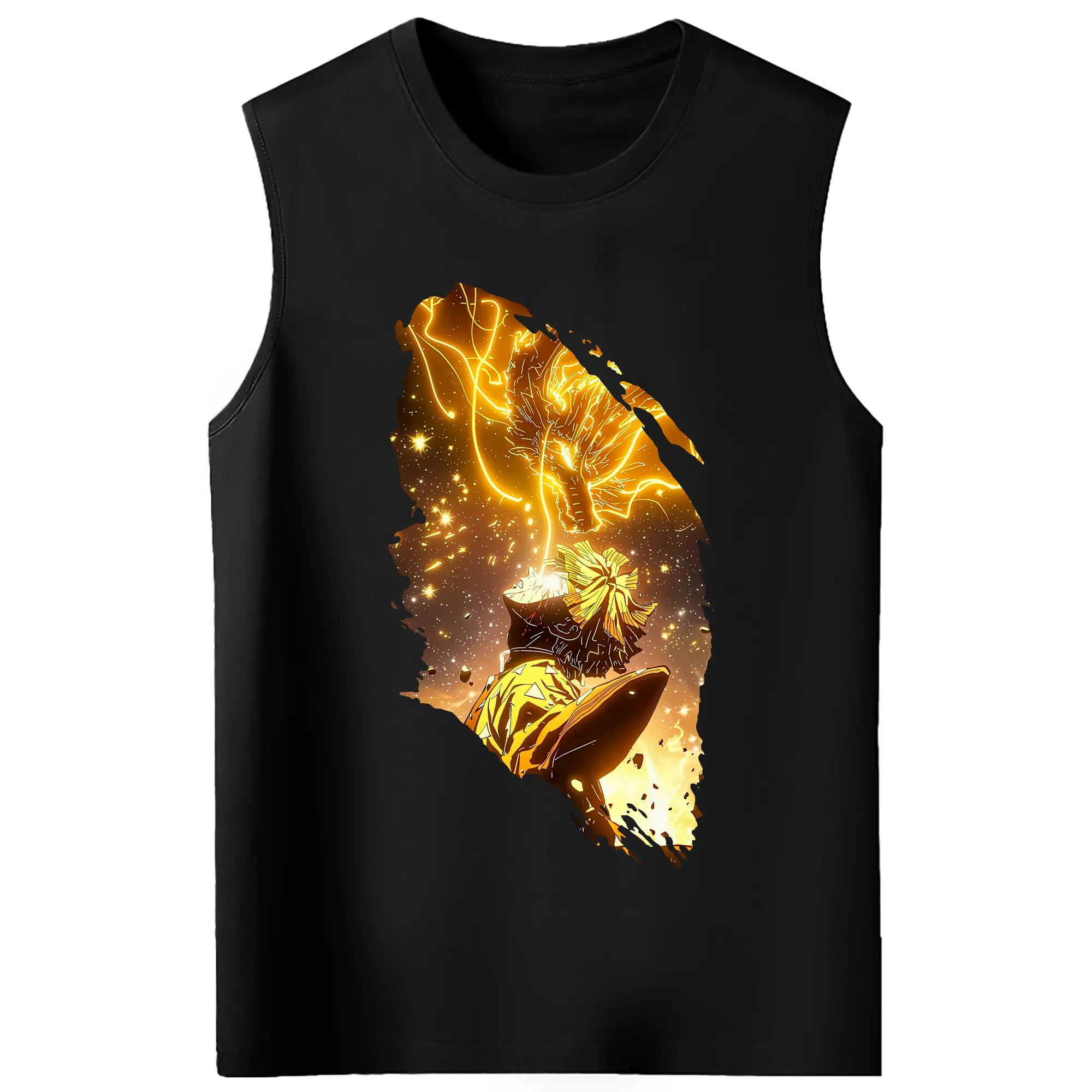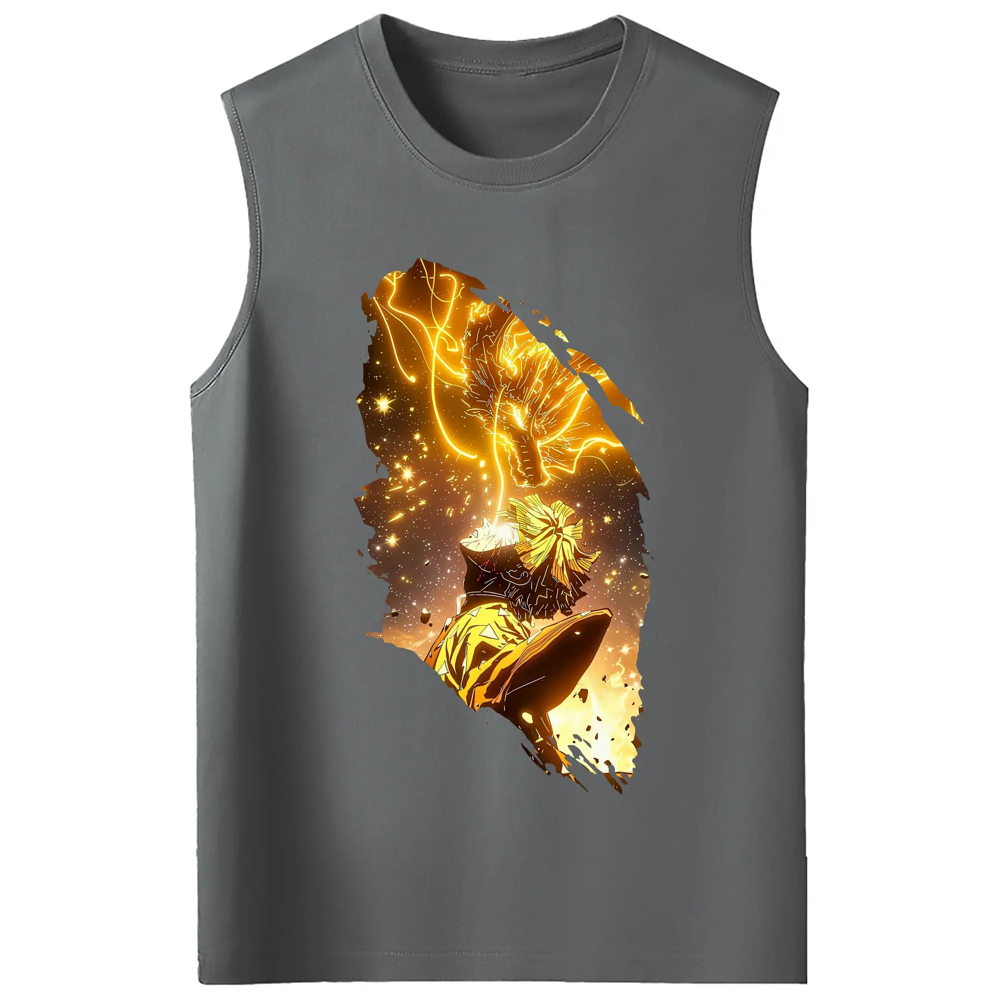 鬼滅の刃 グッズ,我妻 善逸 - コットン100% タンクトップ ・ フロントプリント ・ タイトフィット ・ 快適 通気性 ・ スポーツ カジュアル 散歩用