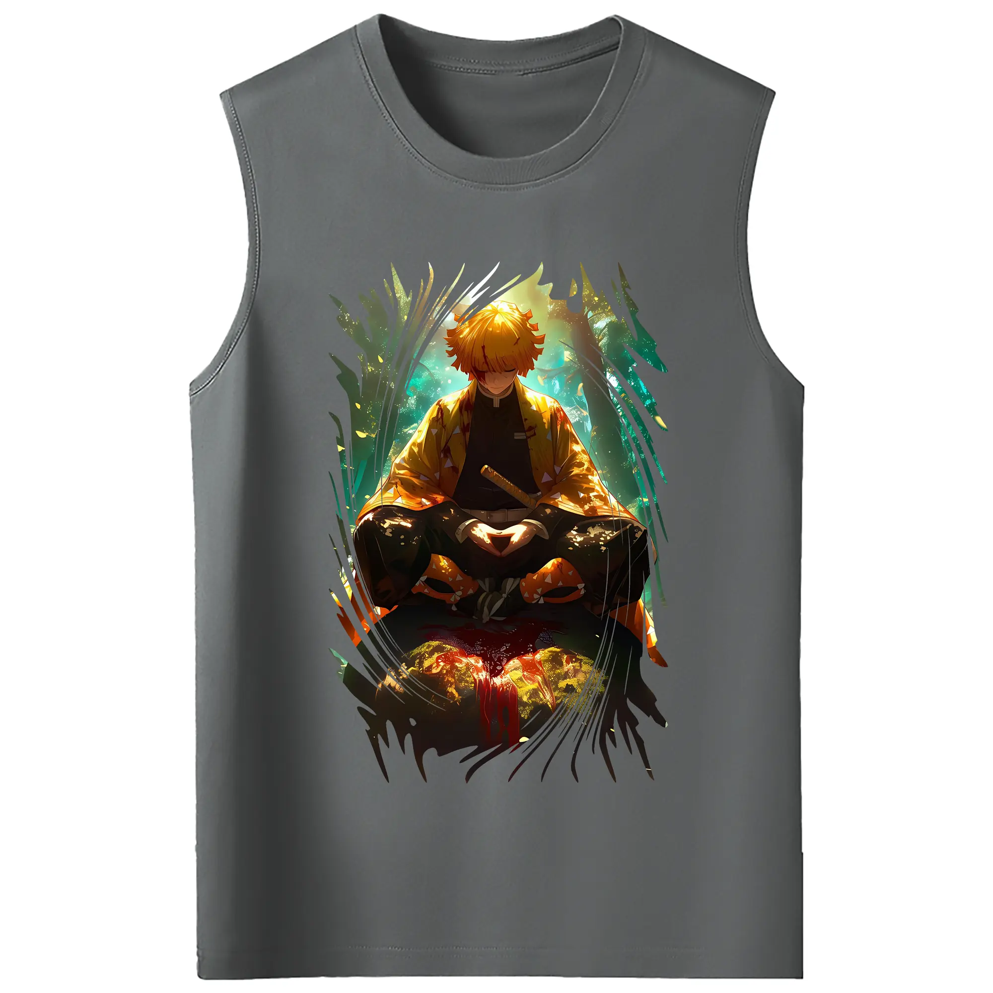 鬼滅の刃 グッズ,我妻 善逸 - 綿100% 半袖Tシャツ ・ フロントプリント ・ 快適 通気性 ・ 日常使い 散歩 スポーツ用