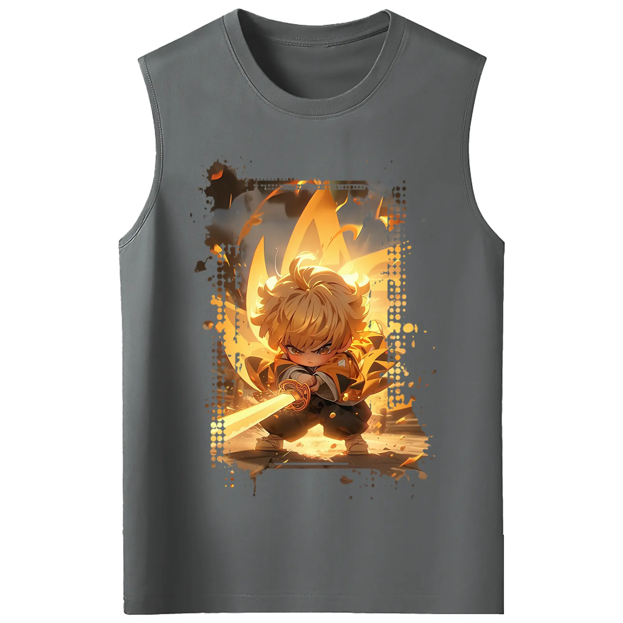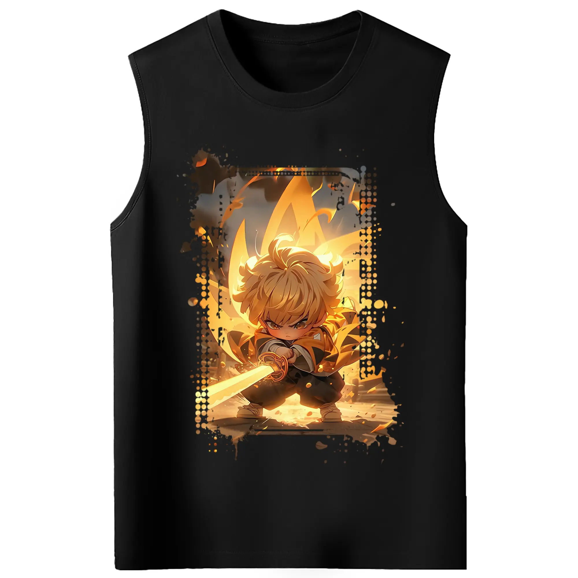鬼滅の刃 グッズ,我妻 善逸 - コットン100% タンクトップ ・ フロントプリント ・ タイトフィット ・ 快適 通気性 ・ スポーツ カジュアル 散歩用