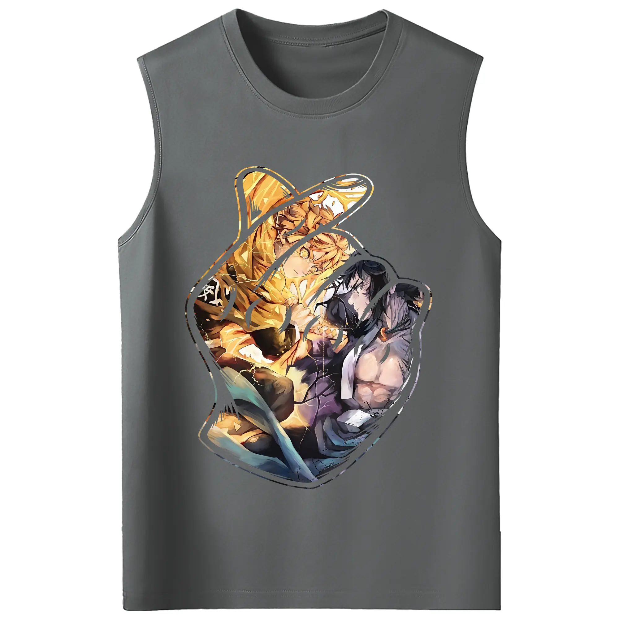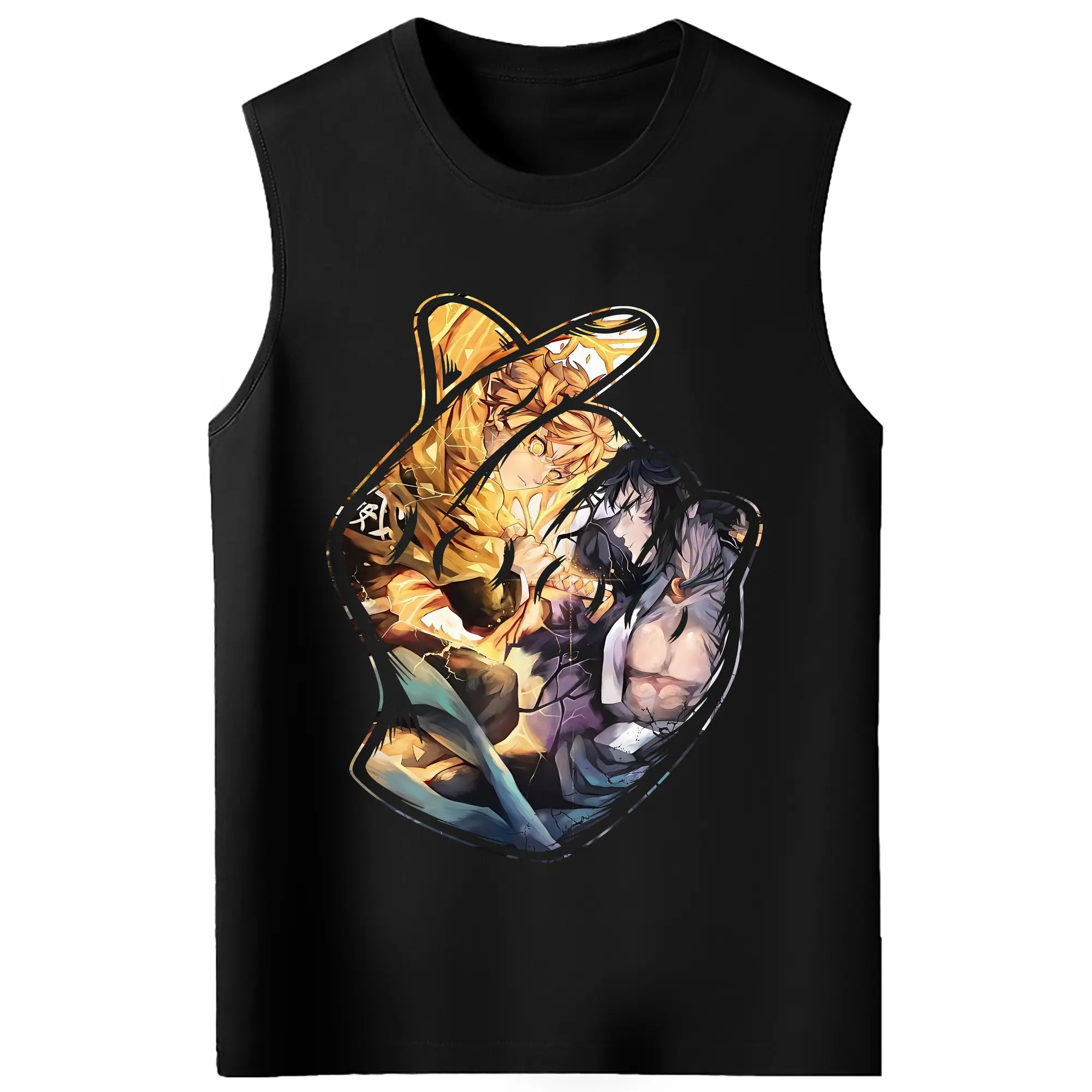 鬼滅の刃 グッズ,我妻 善逸 - コットン100% タンクトップ ・ フロントプリント ・ タイトフィット ・ 快適 通気性 ・ スポーツ カジュアル 散歩用