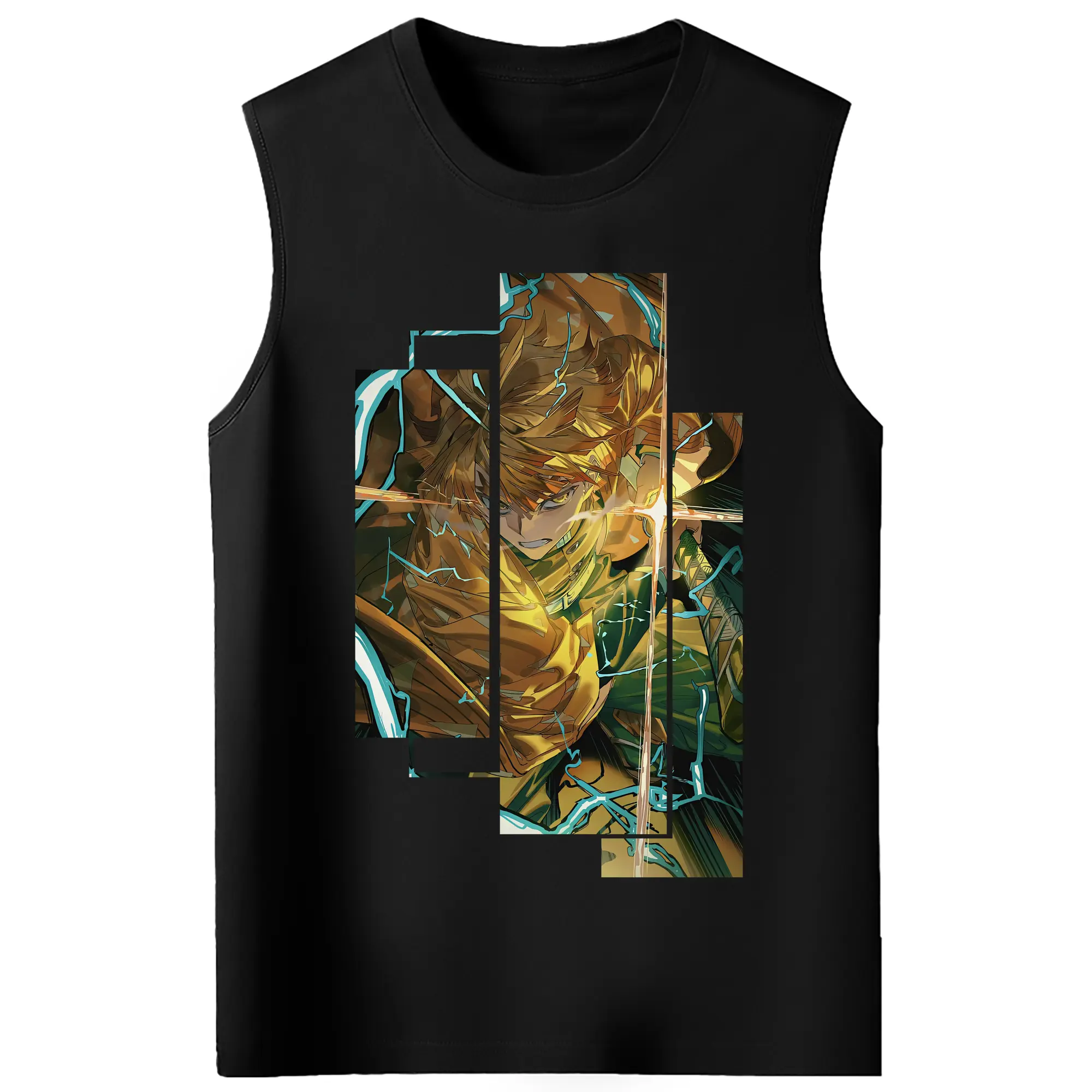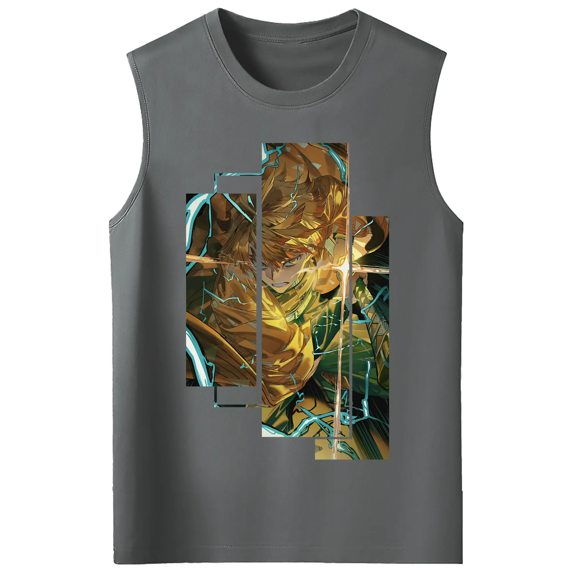 鬼滅の刃 グッズ,我妻 善逸 - コットン100% タンクトップ ・ フロントプリント ・ タイトフィット ・ 快適 通気性 ・ スポーツ カジュアル 散歩用