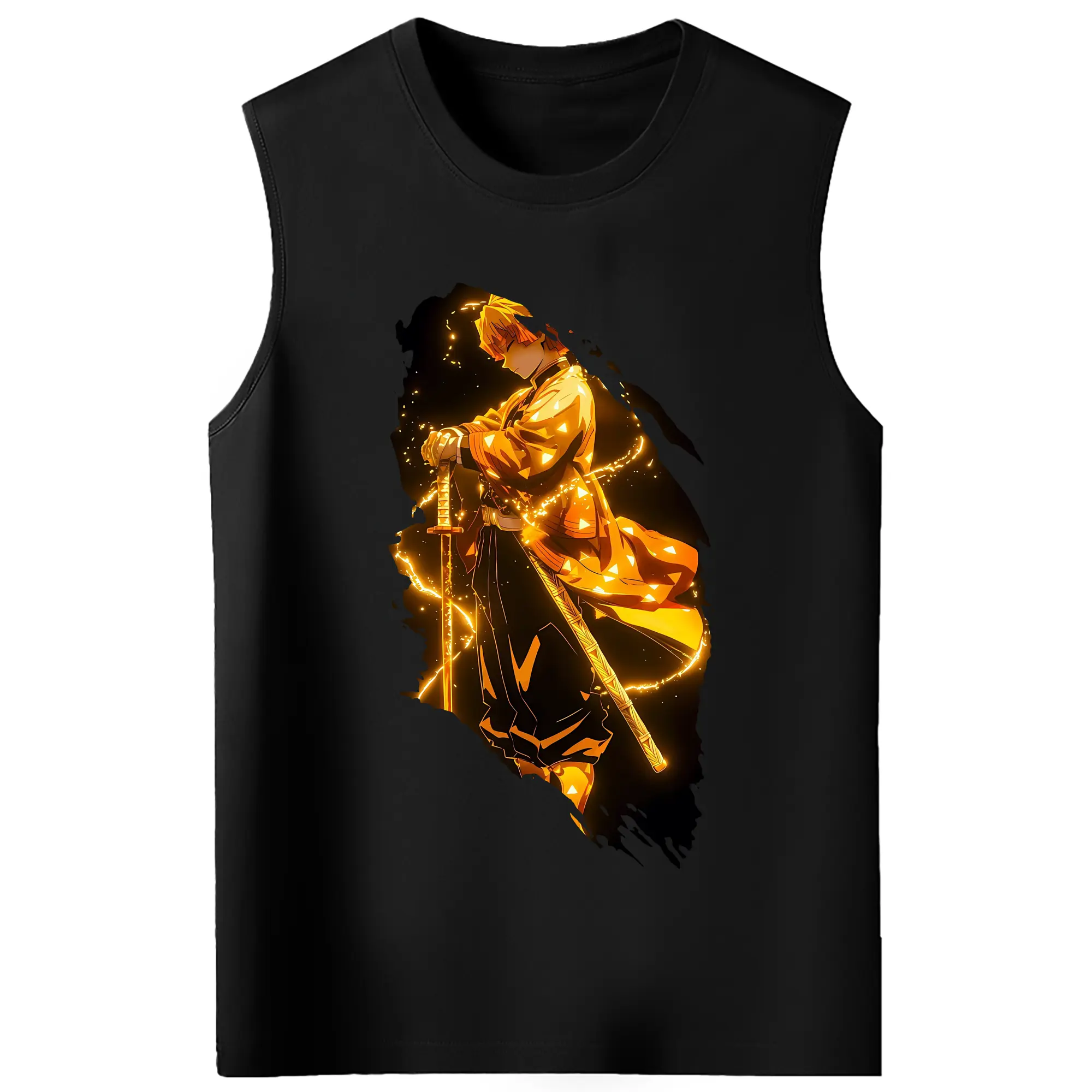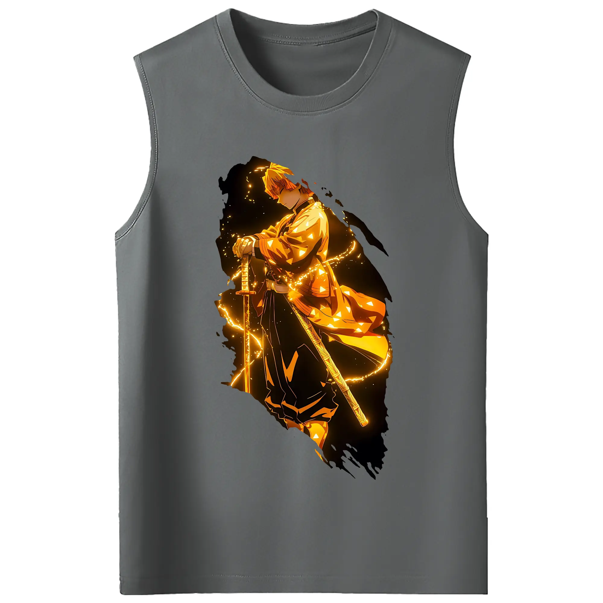 鬼滅の刃 グッズ,我妻 善逸 - コットン100% タンクトップ ・ フロントプリント ・ タイトフィット ・ 快適 通気性 ・ スポーツ カジュアル 散歩用