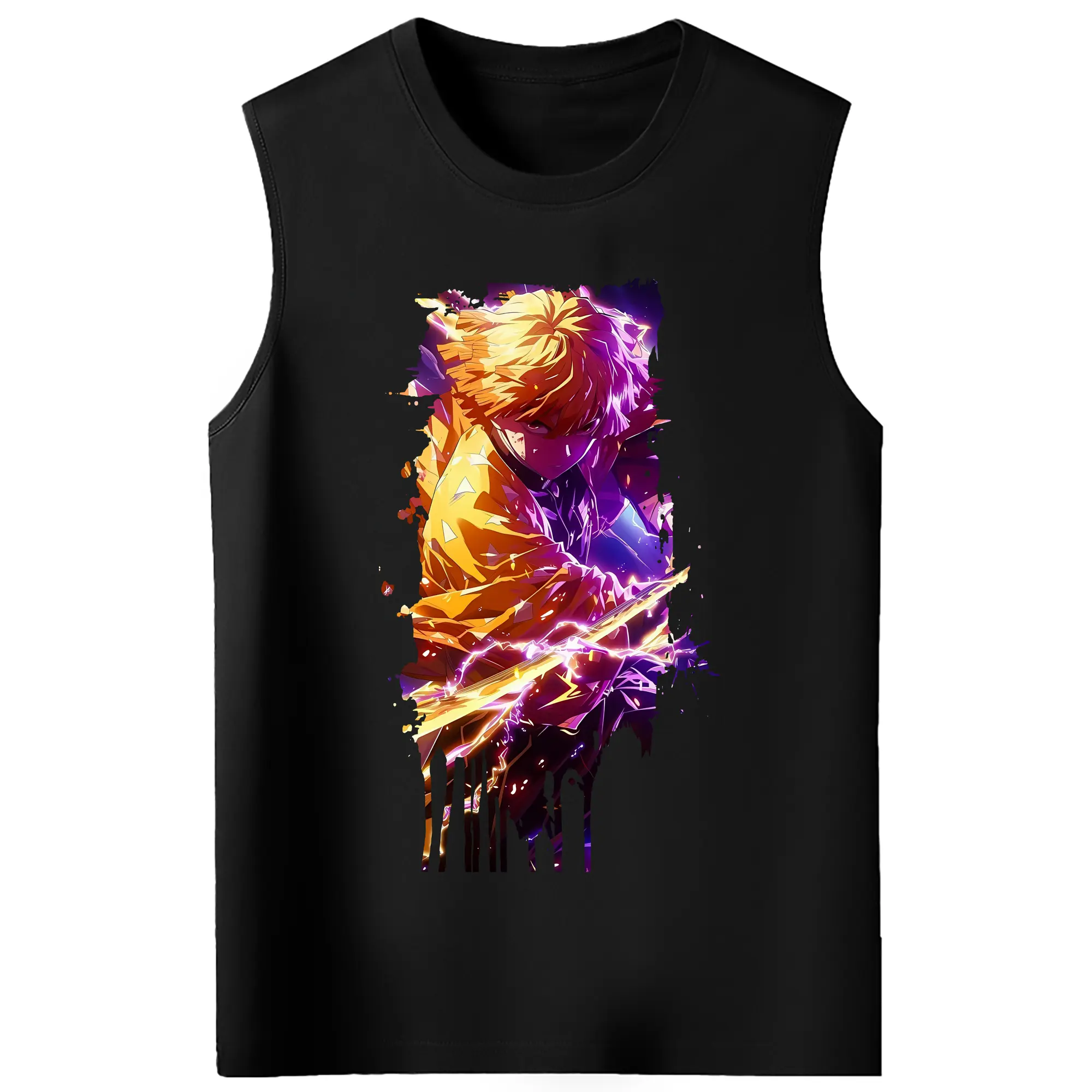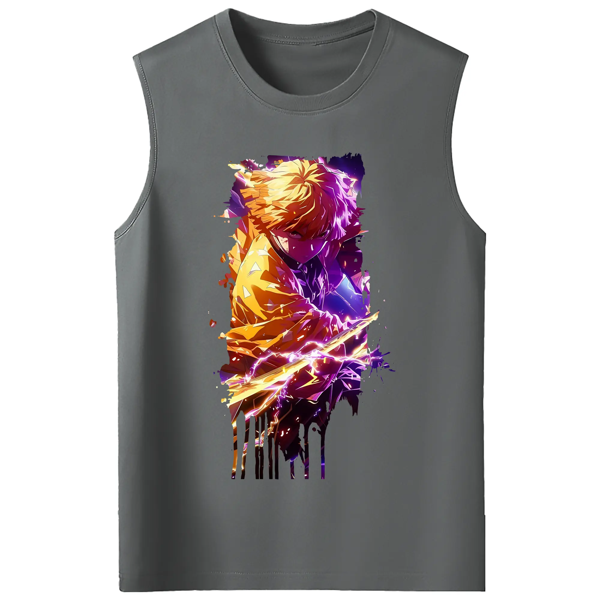鬼滅の刃 グッズ,我妻 善逸 - コットン100% タンクトップ ・ フロントプリント ・ タイトフィット ・ 快適 通気性 ・ スポーツ カジュアル 散歩用