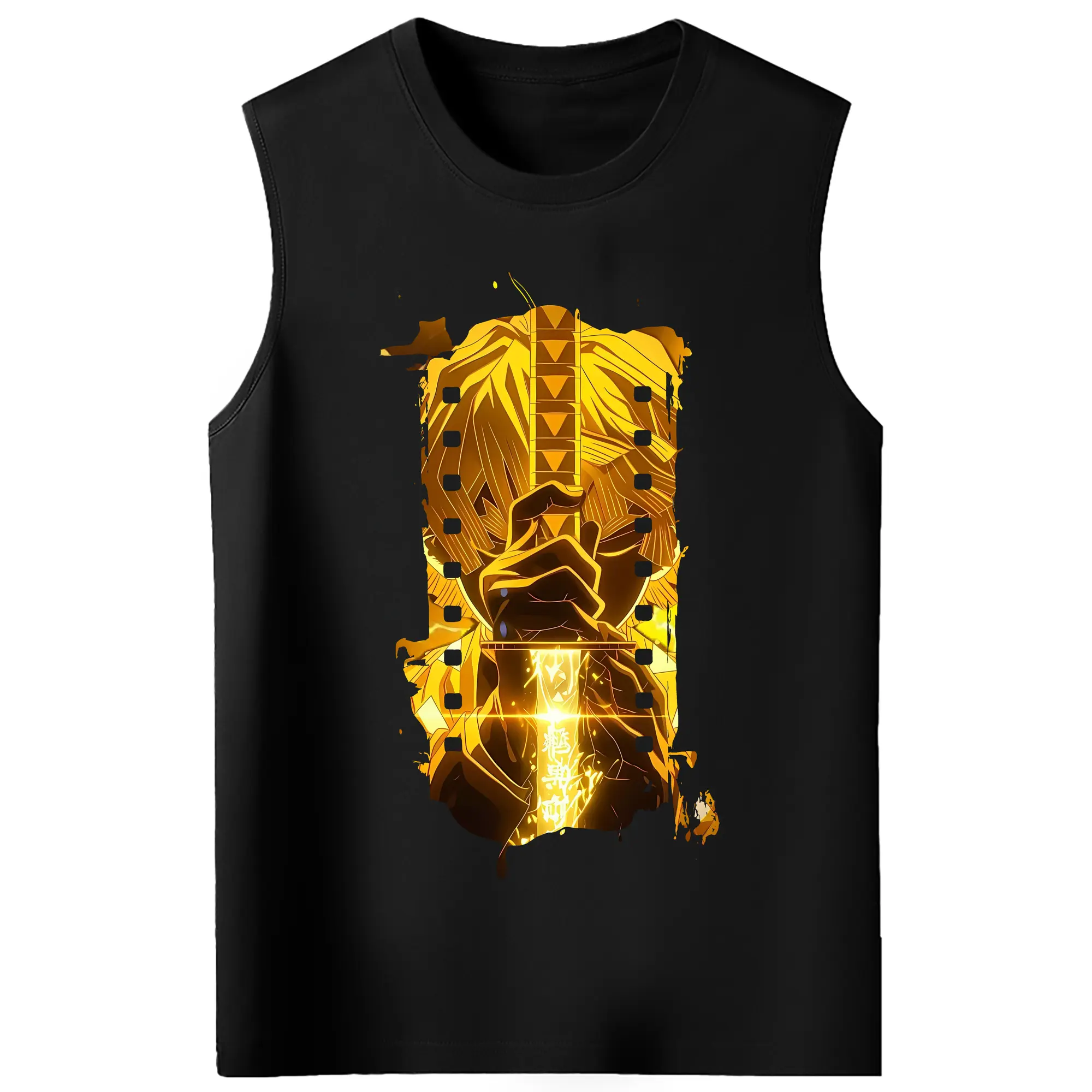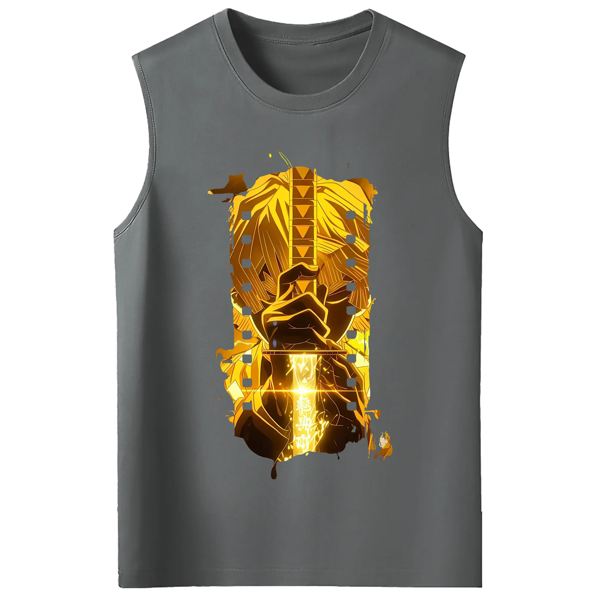 鬼滅の刃 グッズ,我妻 善逸 - コットン100% タンクトップ ・ フロントプリント ・ タイトフィット ・ 快適 通気性 ・ スポーツ カジュアル 散歩用