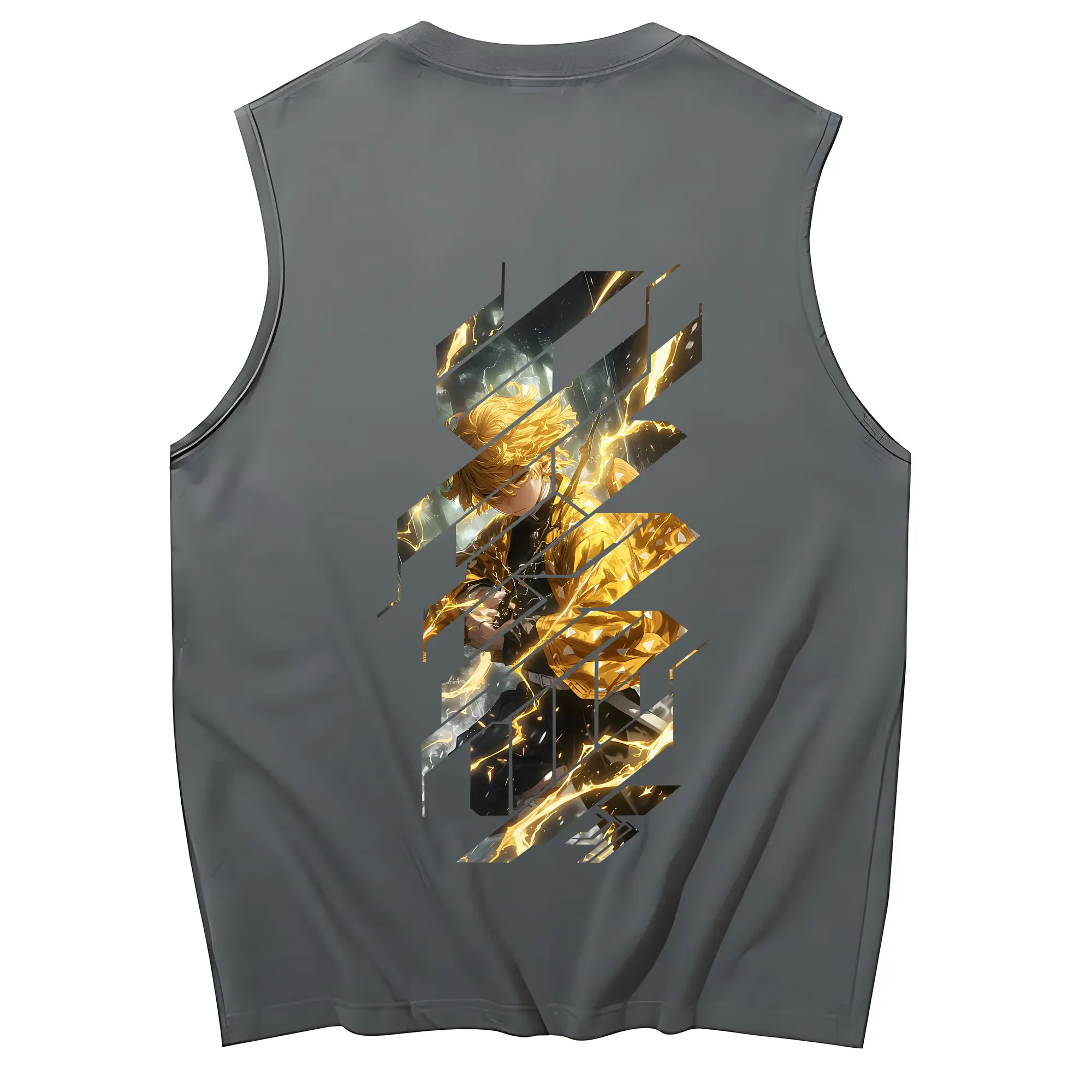 鬼滅の刃 グッズ,我妻 善逸 - コットン100% タンクトップ ・ 背面プリント ・ タイトシルエット ・ 快適 通気性 ・ スポーツ カジュアル 散歩用