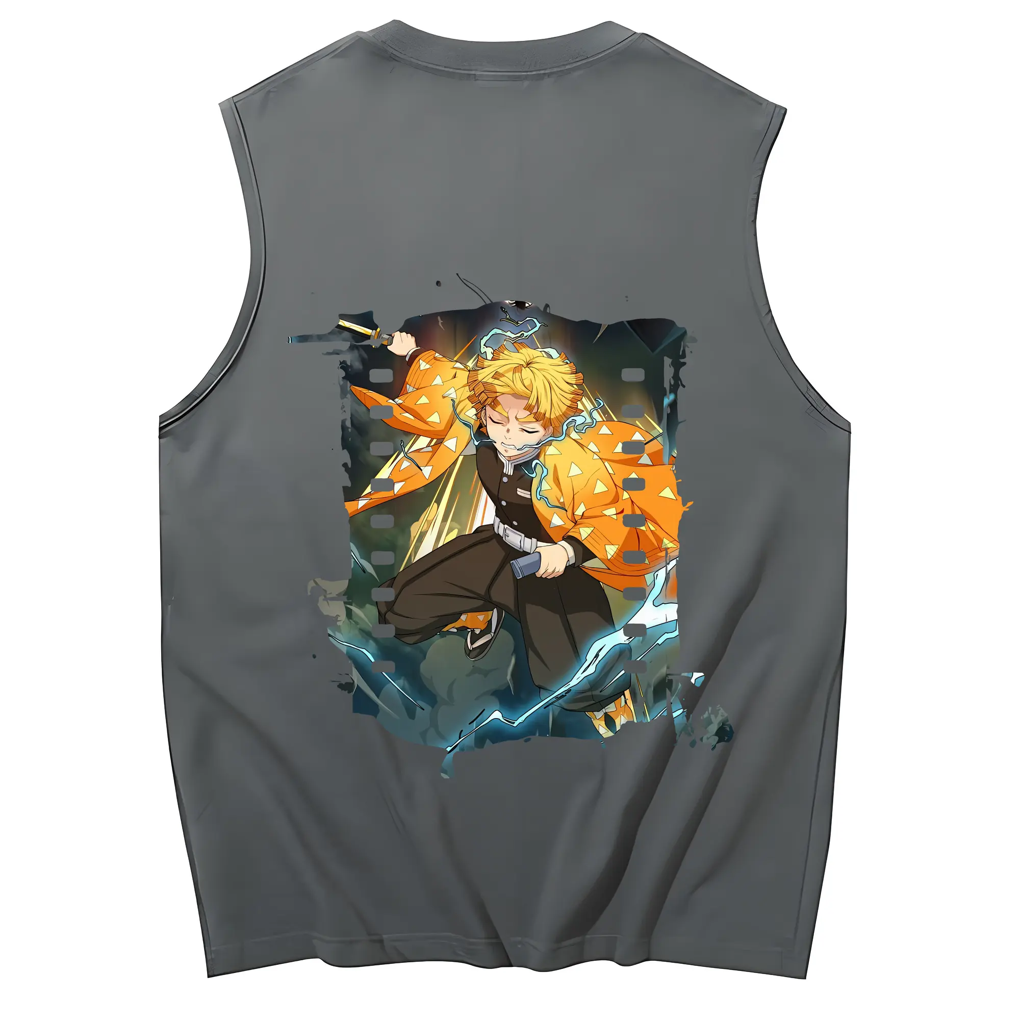 鬼滅の刃 グッズ,我妻 善逸 - コットン100% タンクトップ ・ 背面プリント ・ タイトシルエット ・ 快適 通気性 ・ スポーツ カジュアル 散歩用