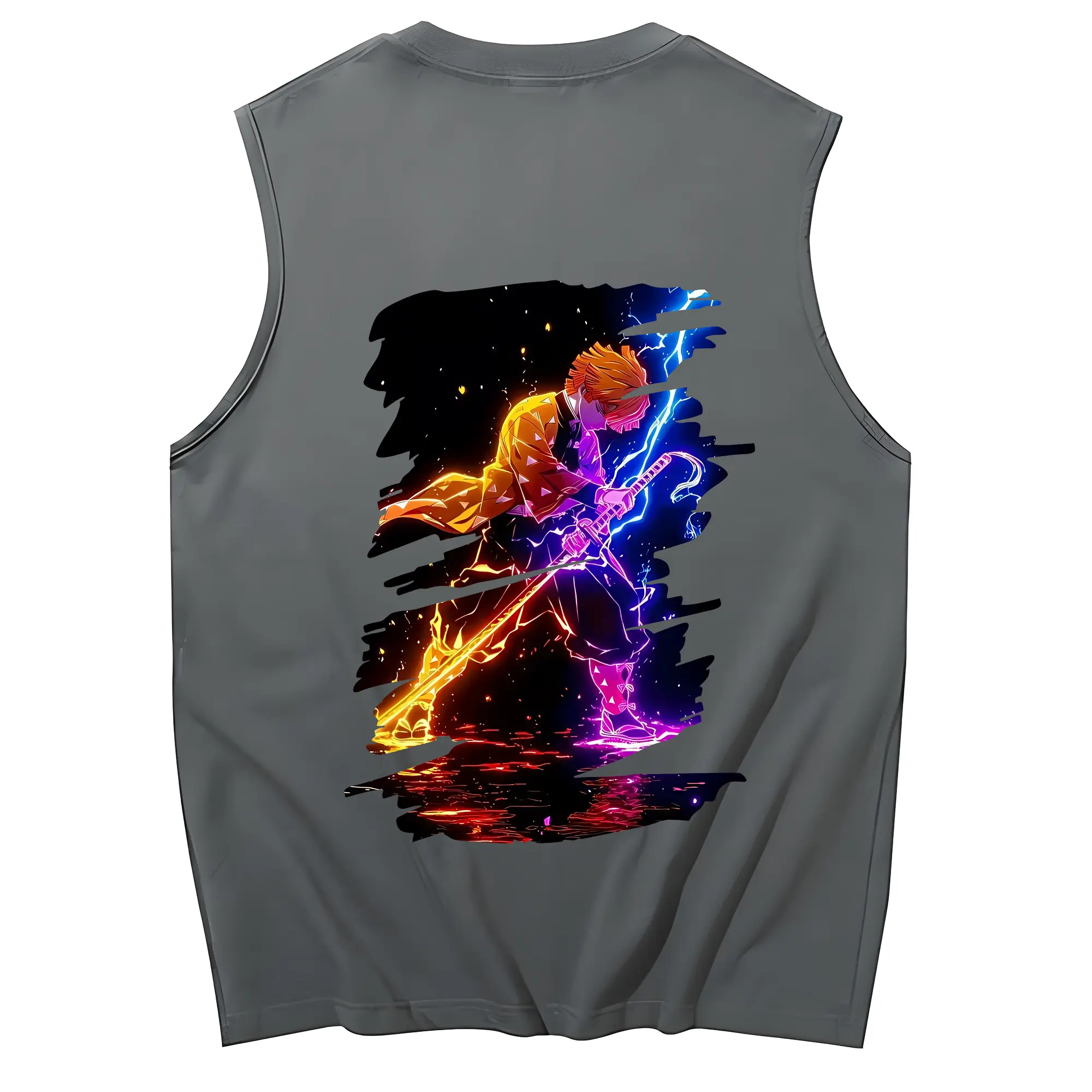 鬼滅の刃 グッズ,我妻 善逸 - コットン100% タンクトップ ・ 背面プリント ・ タイトシルエット ・ 快適 通気性 ・ スポーツ カジュアル 散歩用