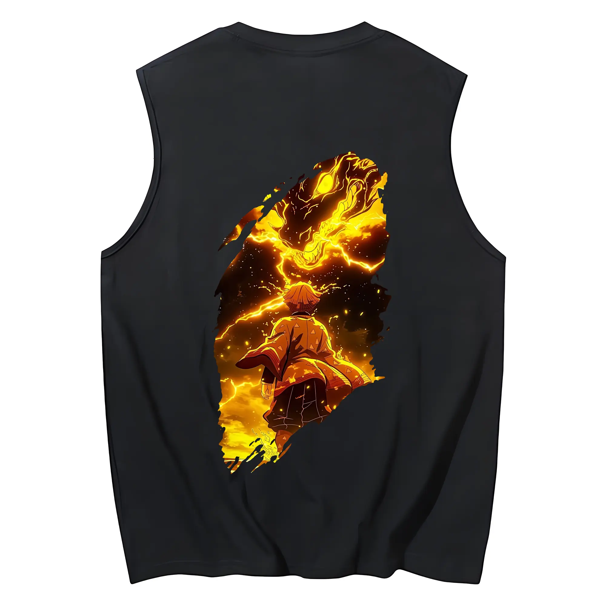 鬼滅の刃 グッズ,我妻 善逸 - コットン100% タンクトップ ・ 背面プリント ・ タイトシルエット ・ 快適 通気性 ・ スポーツ カジュアル 散歩用