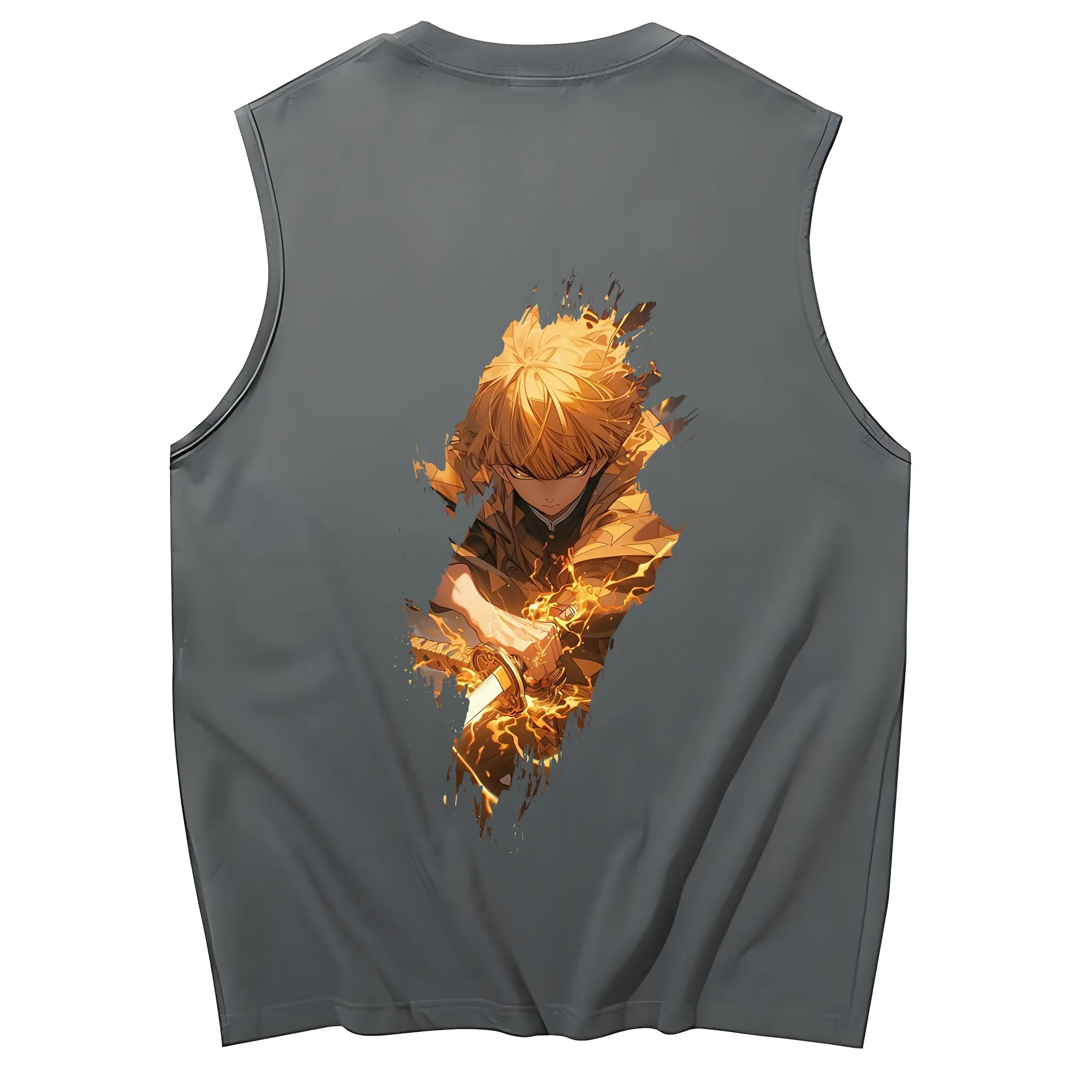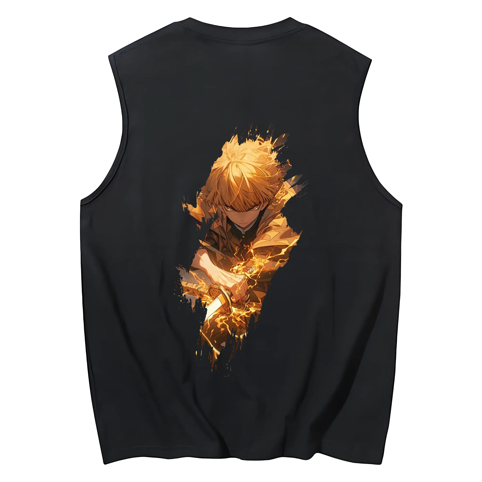 鬼滅の刃 グッズ,我妻 善逸 - コットン100% タンクトップ ・ 背面プリント ・ タイトシルエット ・ 快適 通気性 ・ スポーツ カジュアル 散歩用