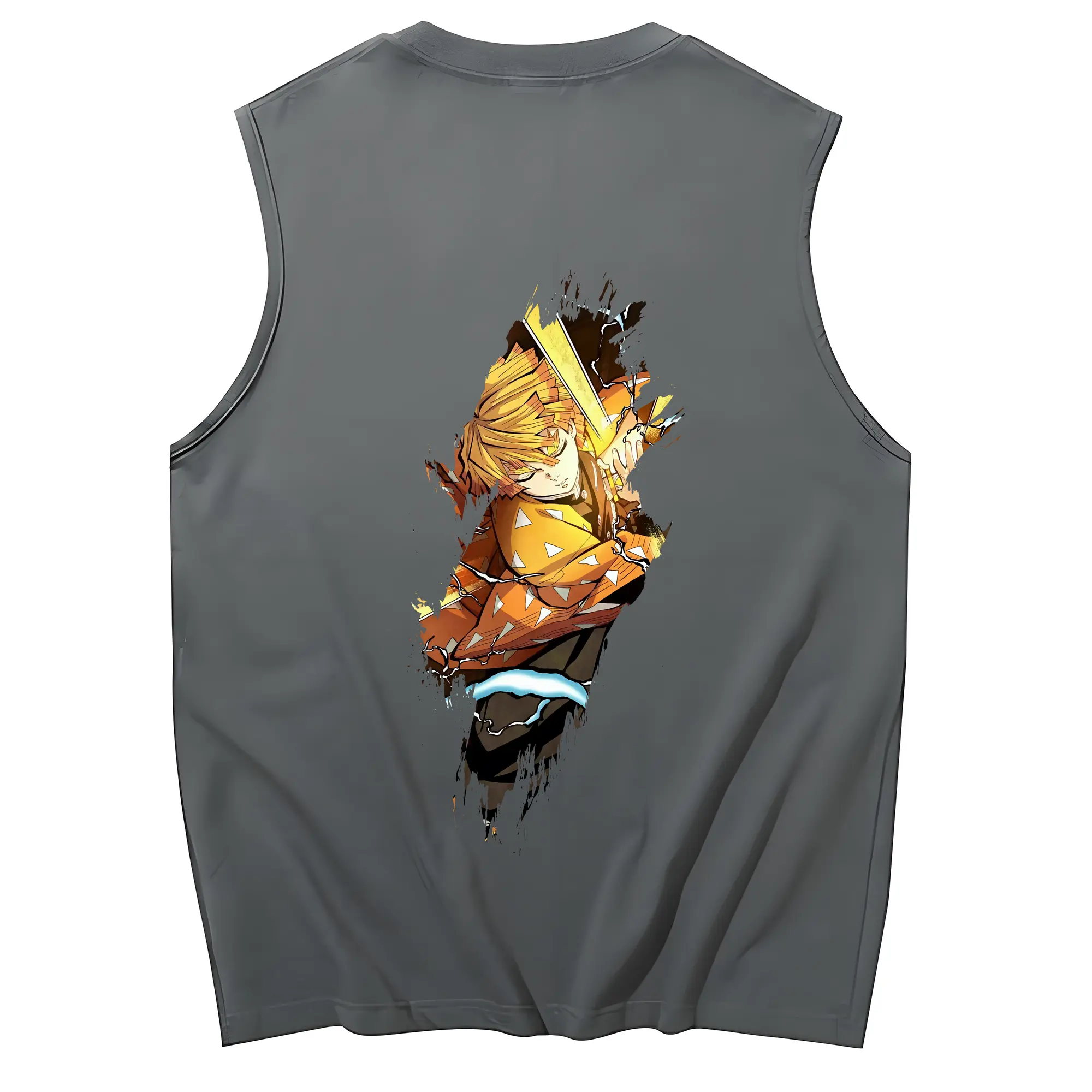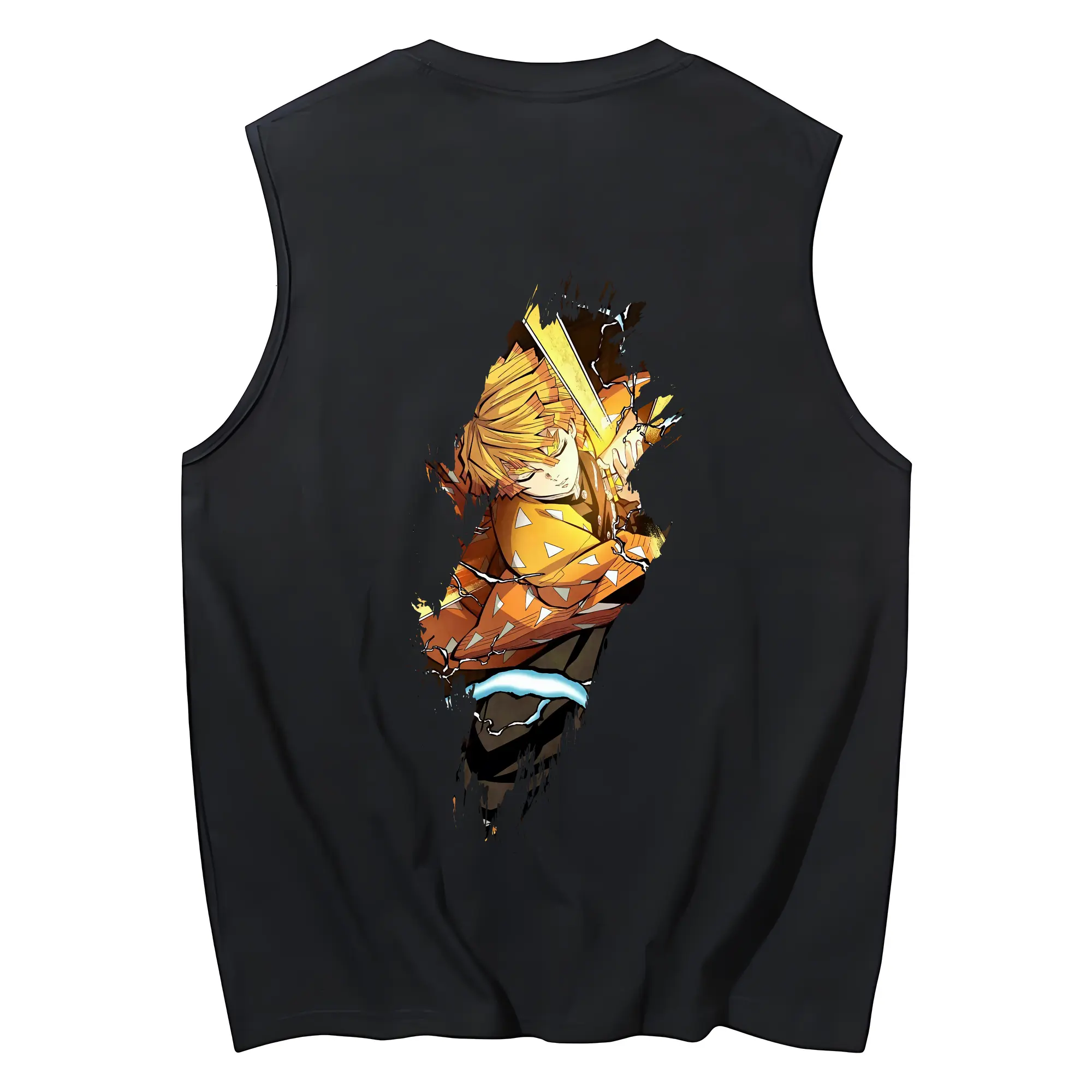 鬼滅の刃 グッズ,我妻 善逸 - コットン100% タンクトップ ・ 背面プリント ・ タイトシルエット ・ 快適 通気性 ・ スポーツ カジュアル 散歩用