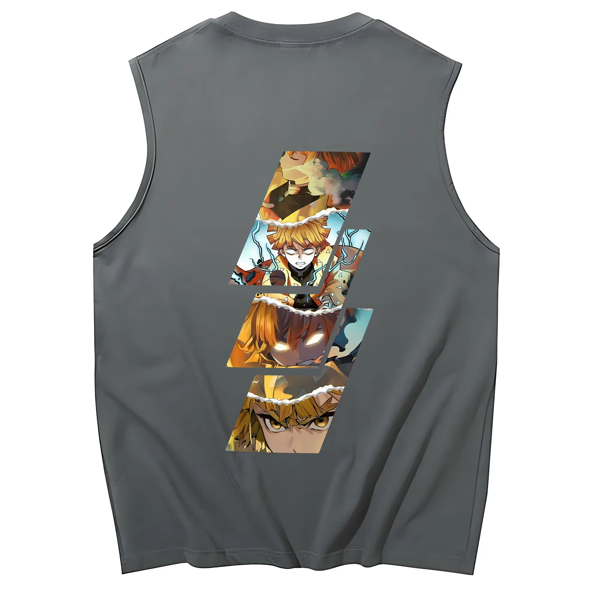 鬼滅の刃 グッズ,我妻 善逸 - コットン100% タンクトップ ・ 背面プリント ・ タイトシルエット ・ 快適 通気性 ・ スポーツ カジュアル 散歩用