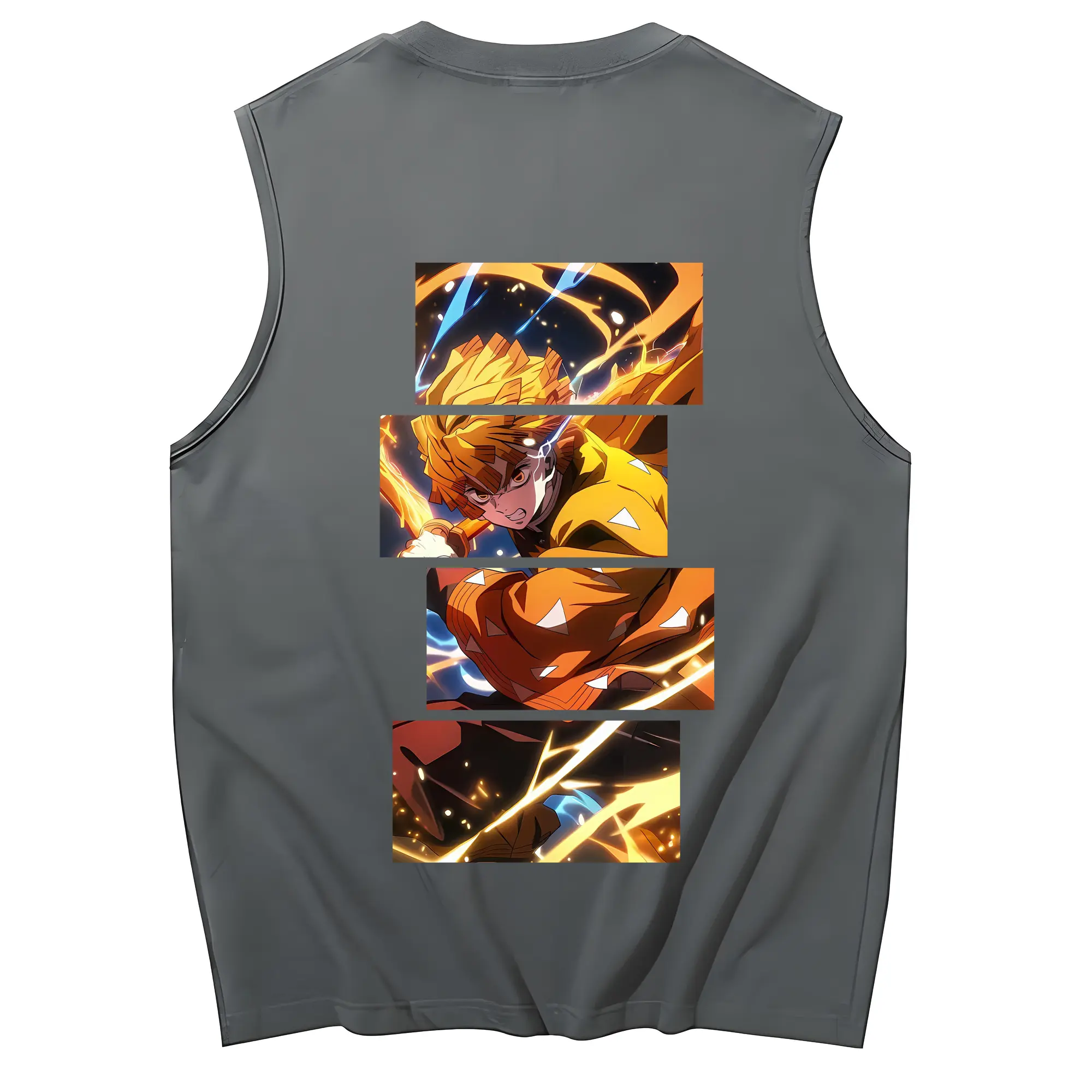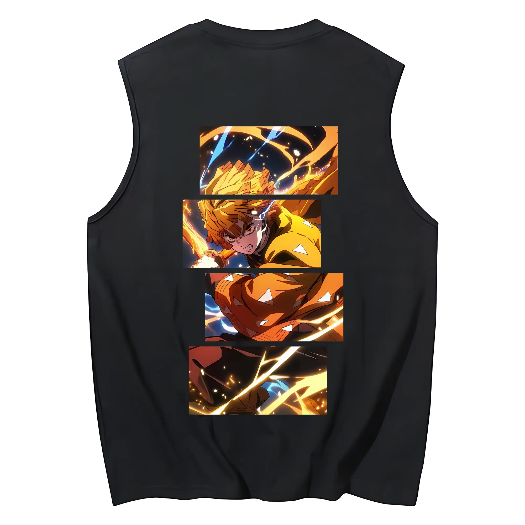 鬼滅の刃 グッズ,我妻 善逸 - コットン100% タンクトップ ・ 背面プリント ・ タイトシルエット ・ 快適 通気性 ・ スポーツ カジュアル 散歩用