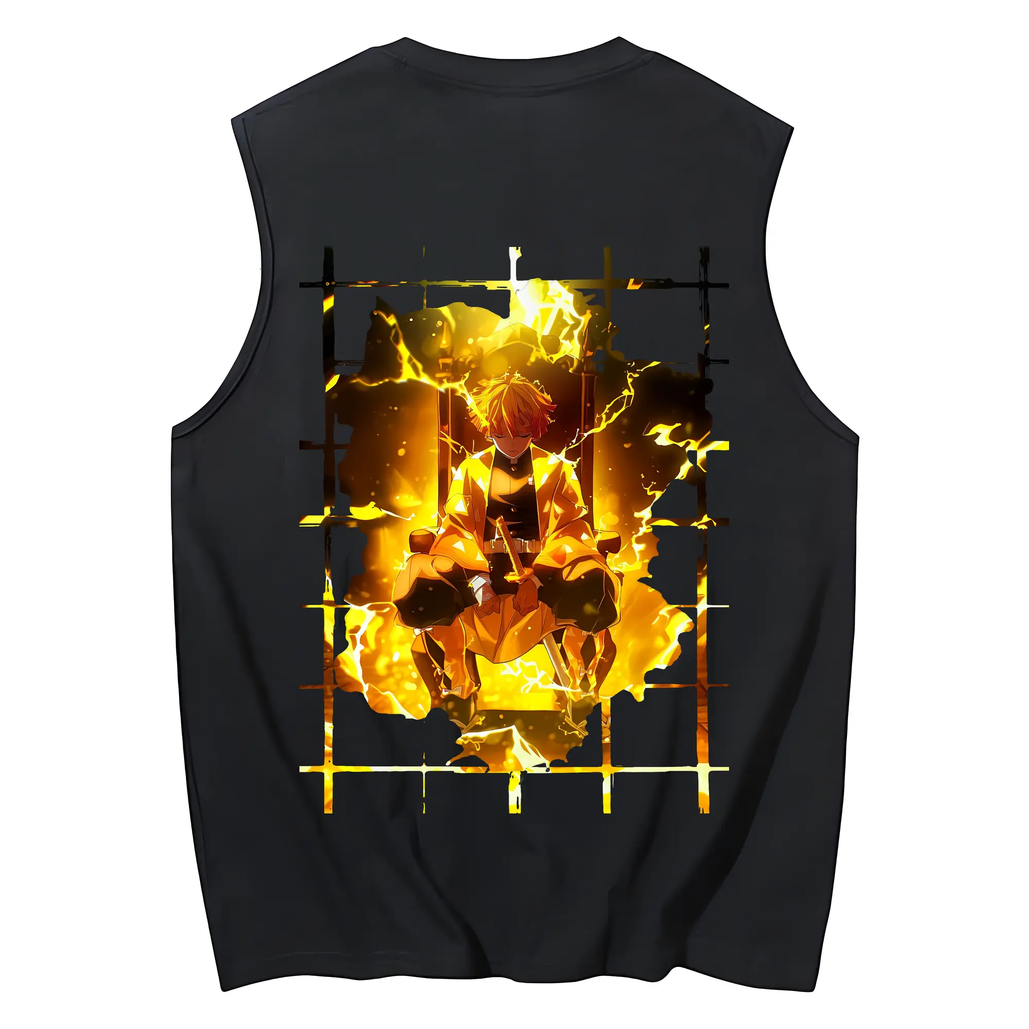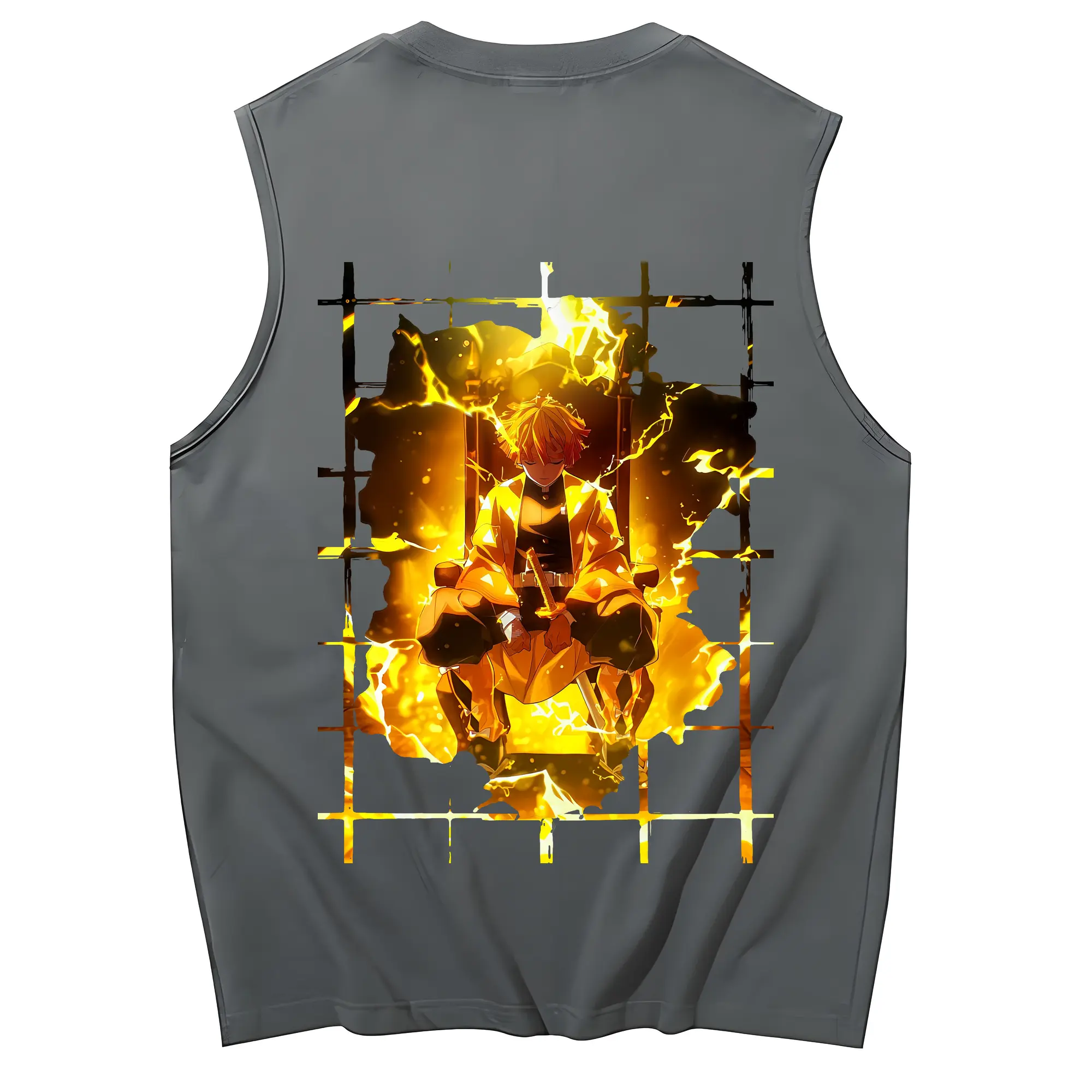 鬼滅の刃 グッズ,我妻 善逸 - コットン100% タンクトップ ・ 背面プリント ・ タイトシルエット ・ 快適 通気性 ・ スポーツ カジュアル 散歩用
