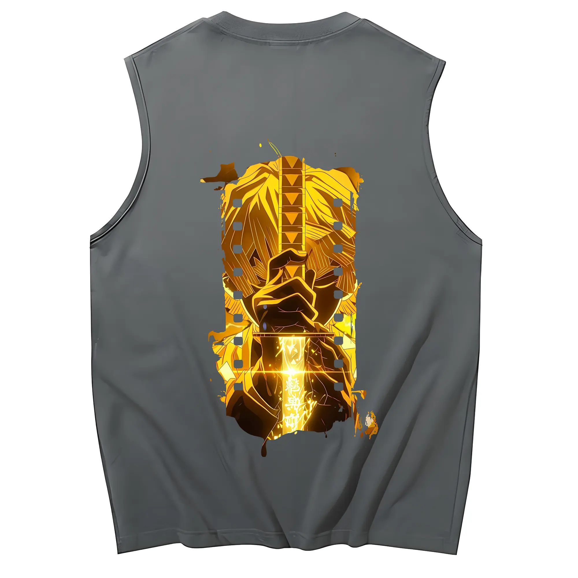 鬼滅の刃 グッズ,我妻 善逸 - コットン100% タンクトップ ・ 背面プリント ・ タイトシルエット ・ 快適 通気性 ・ スポーツ カジュアル 散歩用
