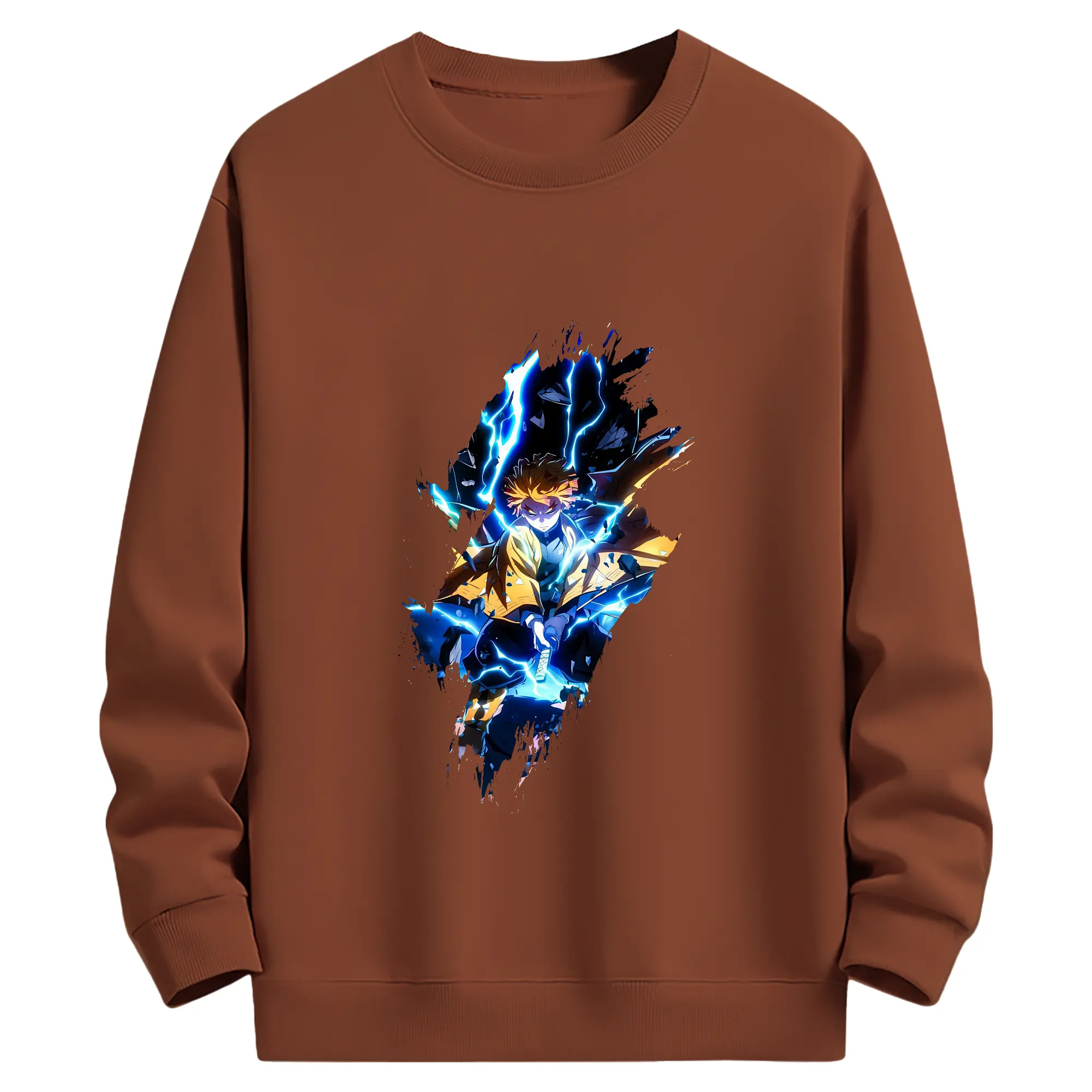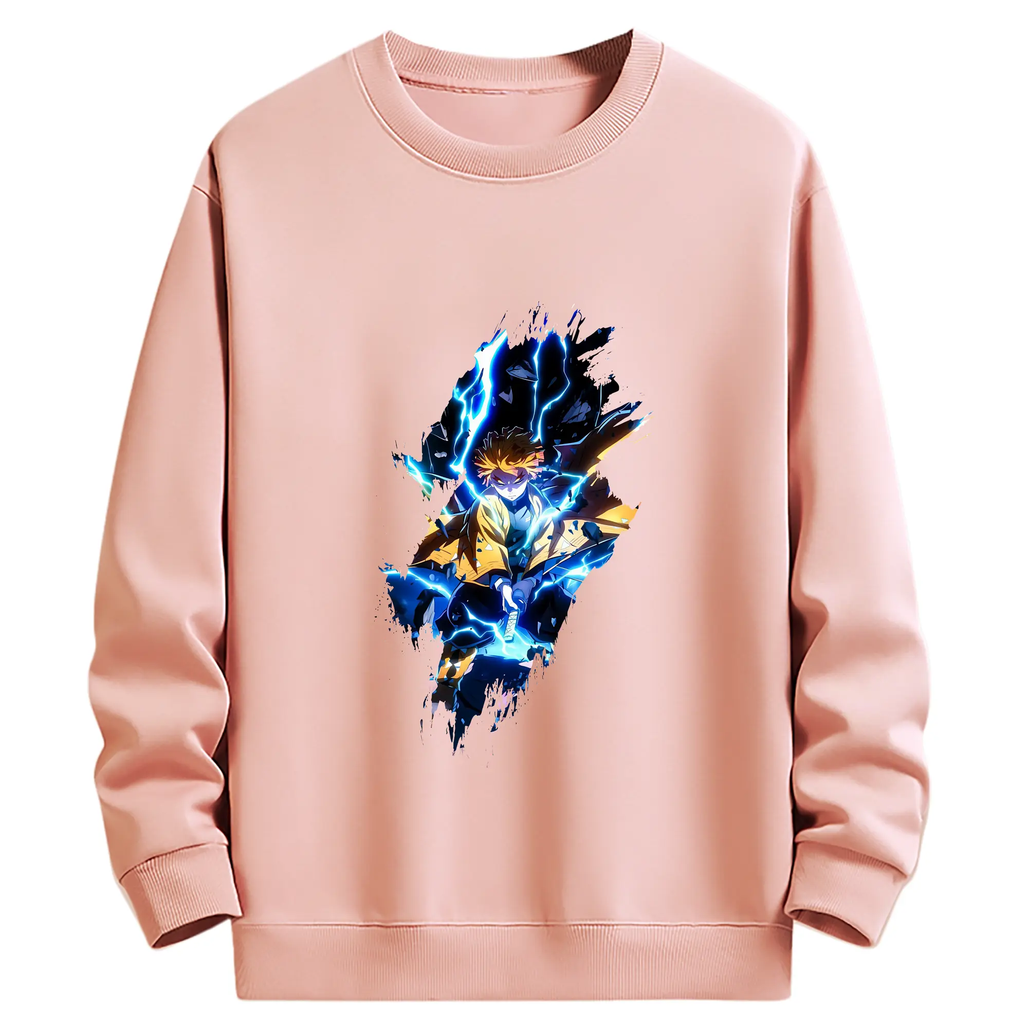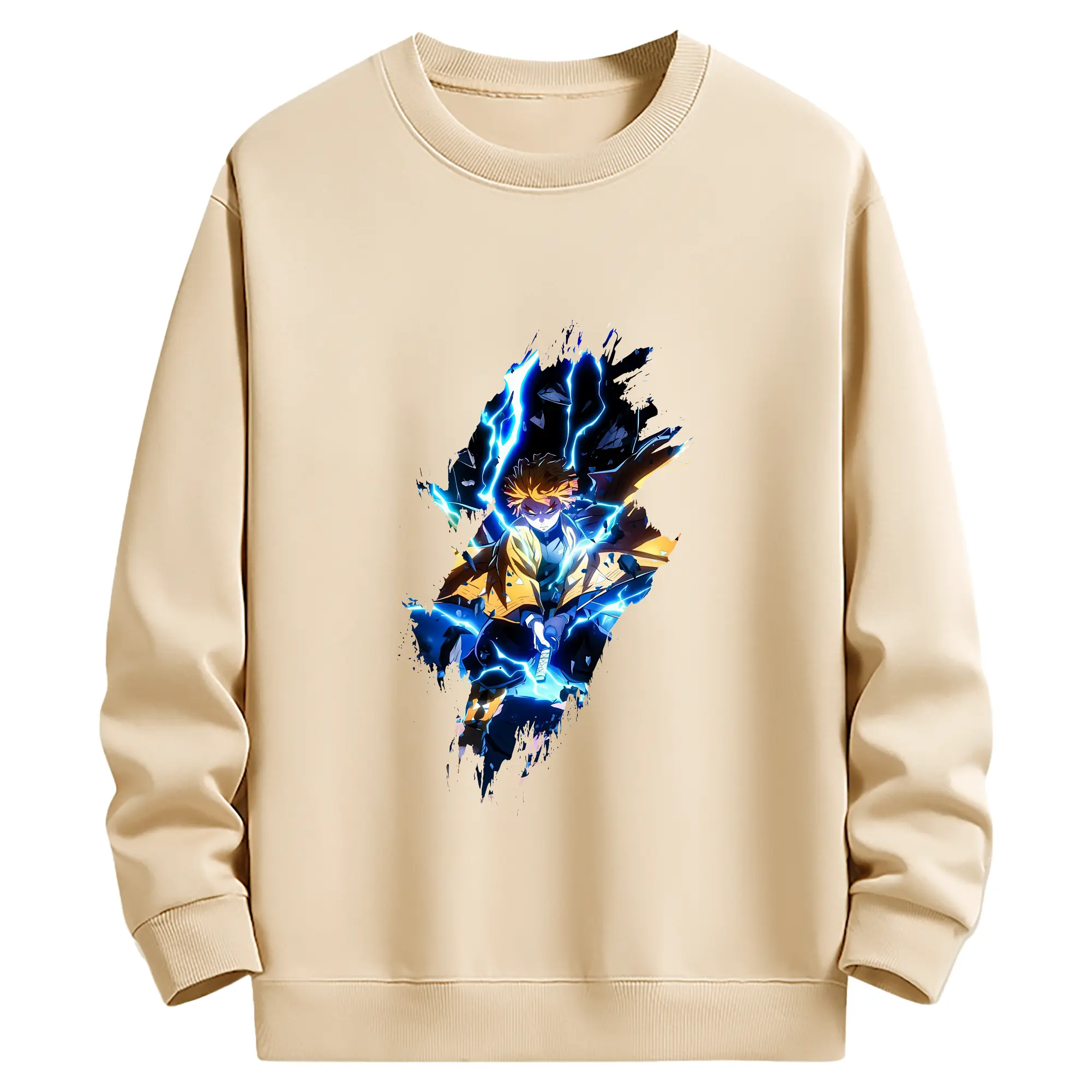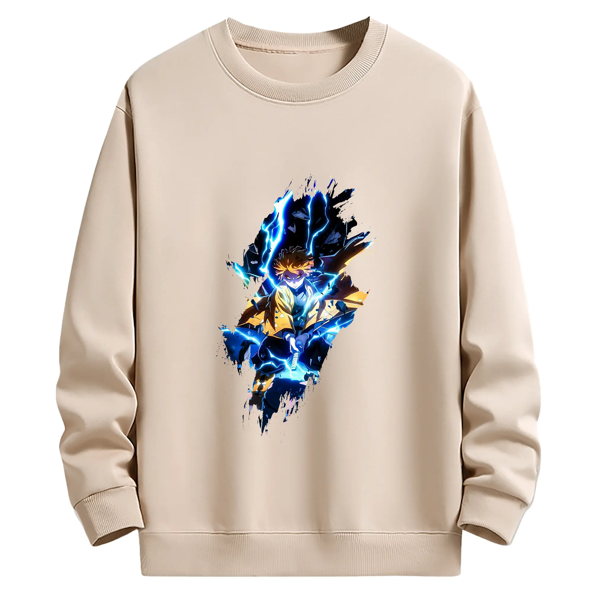 鬼滅の刃 グッズ,我妻 善逸 - 薄手 クルーネック スウェット 裏毛260g · ポリエステル 春秋向け カジュアル 男女兼用 · トレーナー デイリー スポーツ 散歩に最適