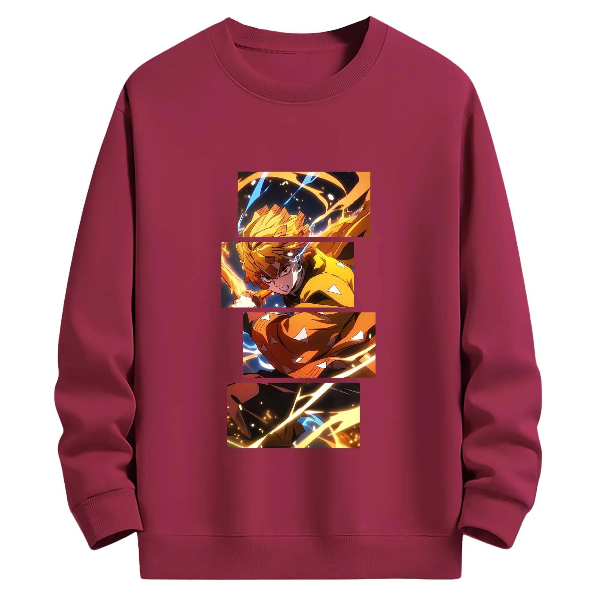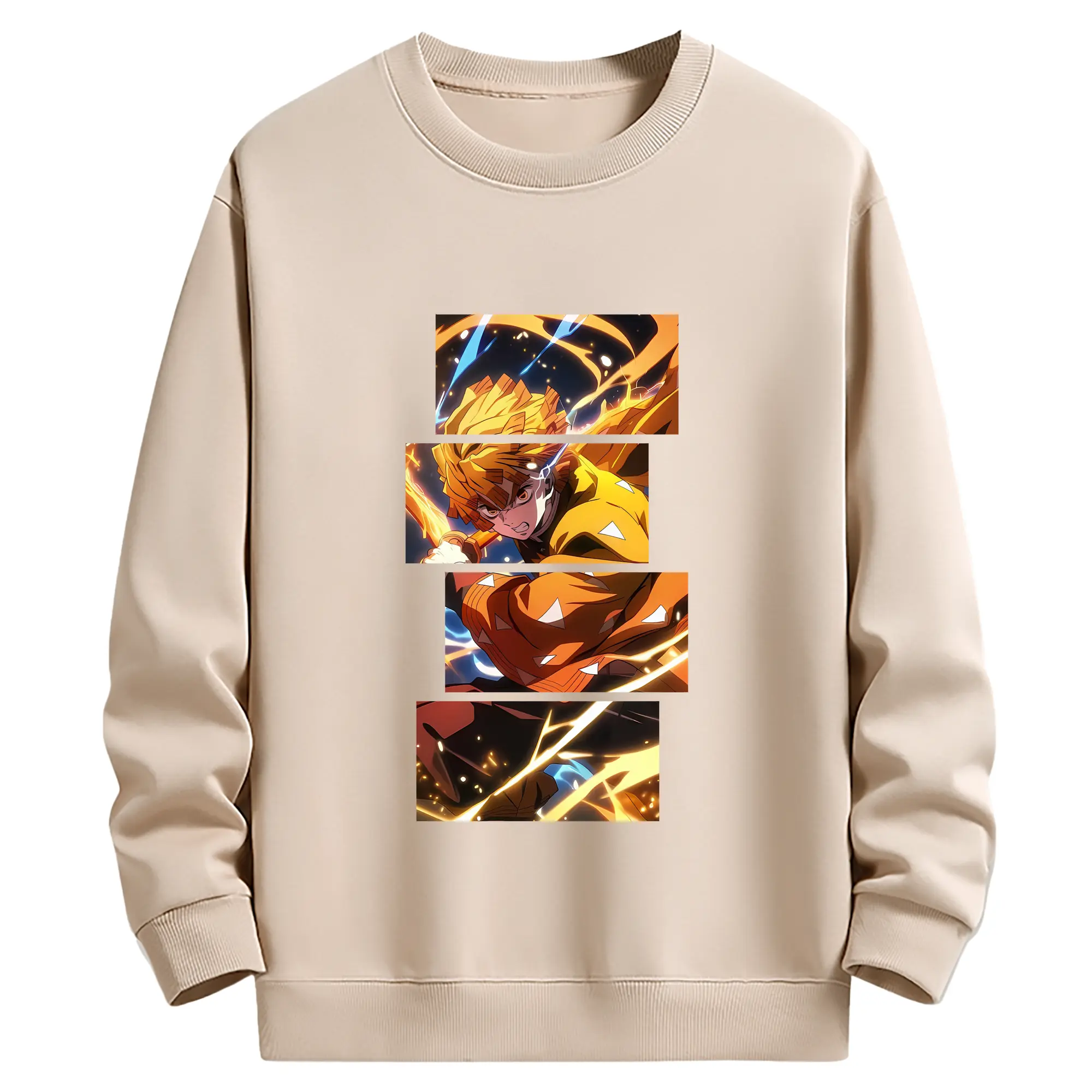 鬼滅の刃 グッズ,我妻 善逸 - 薄手 クルーネック スウェット 裏毛260g · ポリエステル 春秋向け カジュアル 男女兼用 · トレーナー デイリー スポーツ 散歩に最適