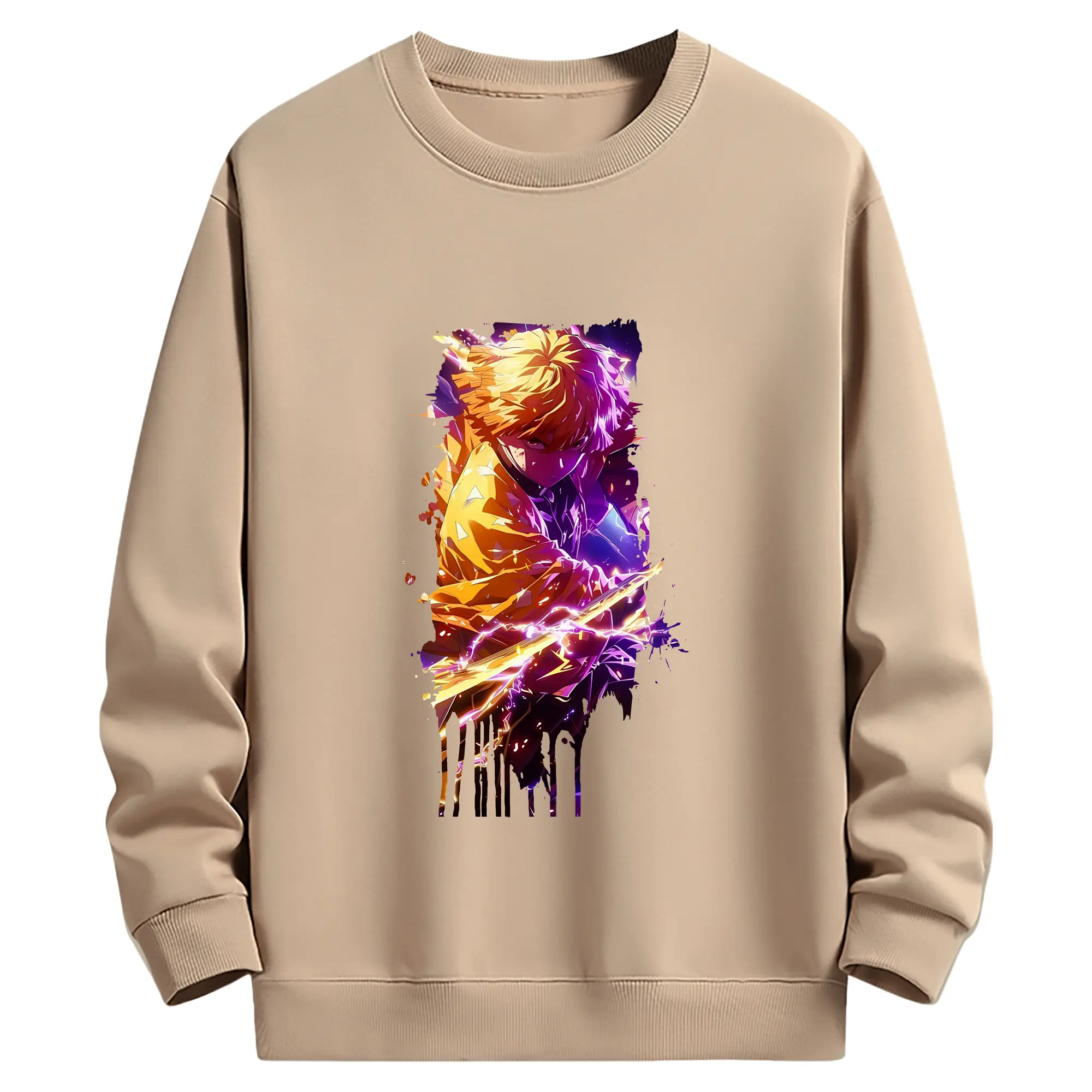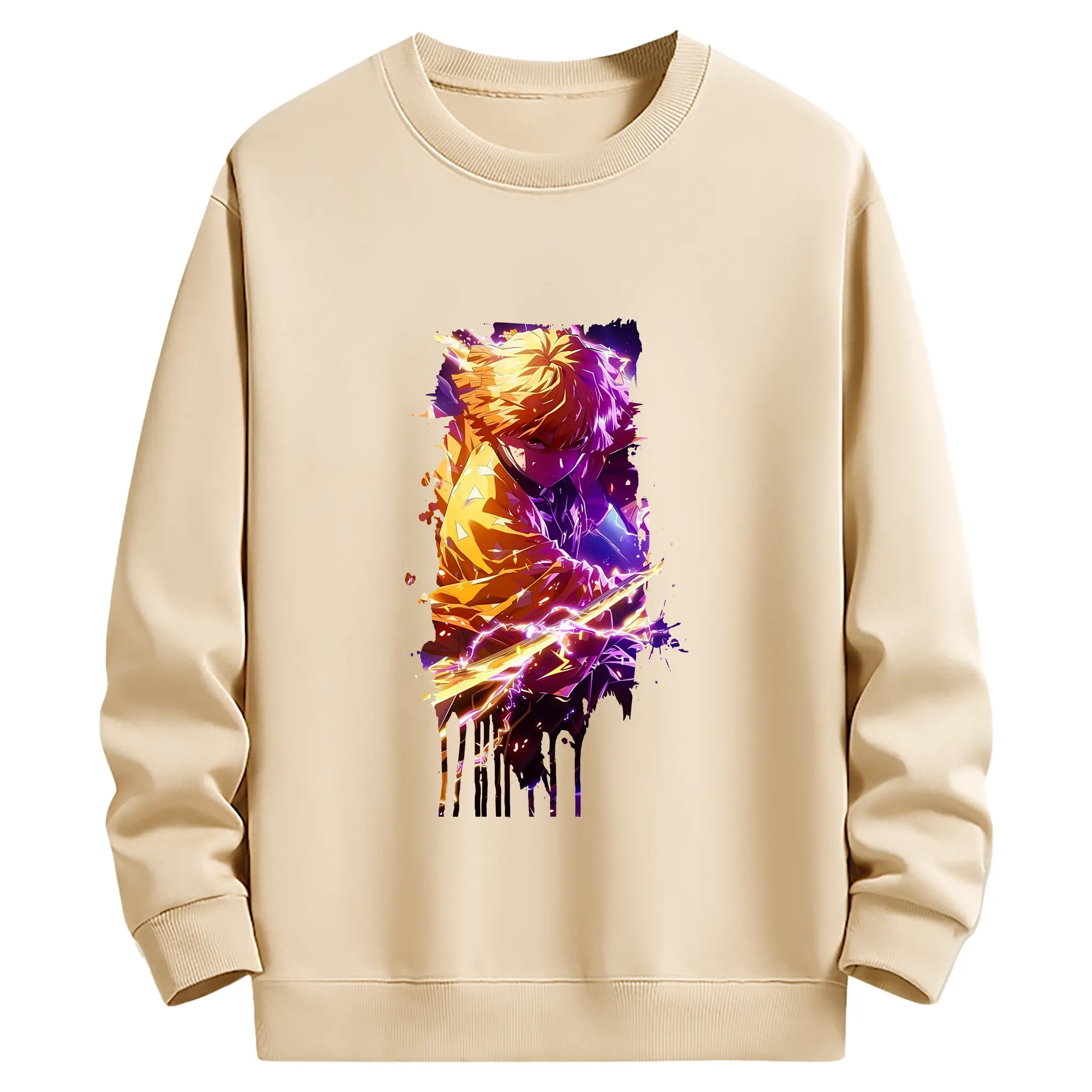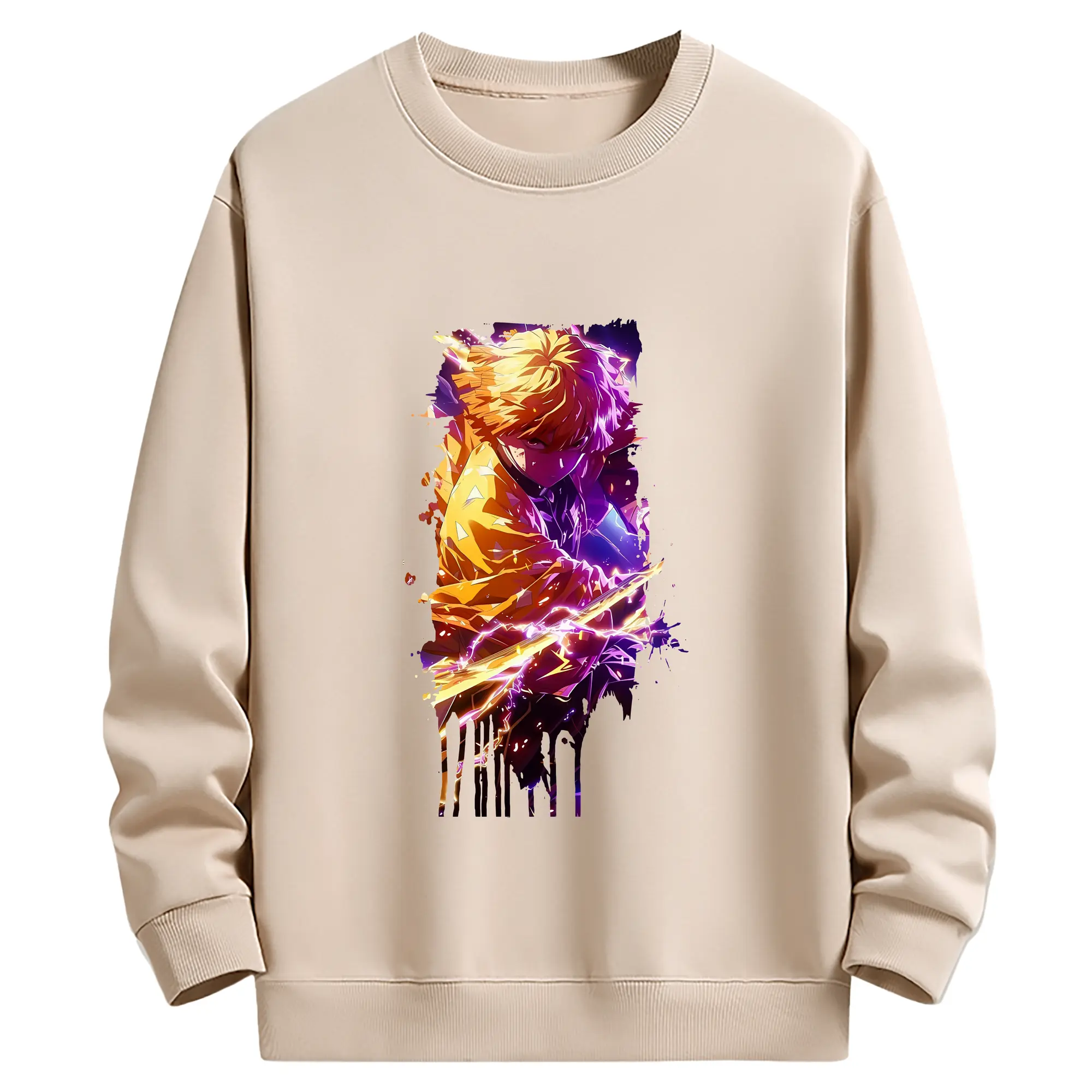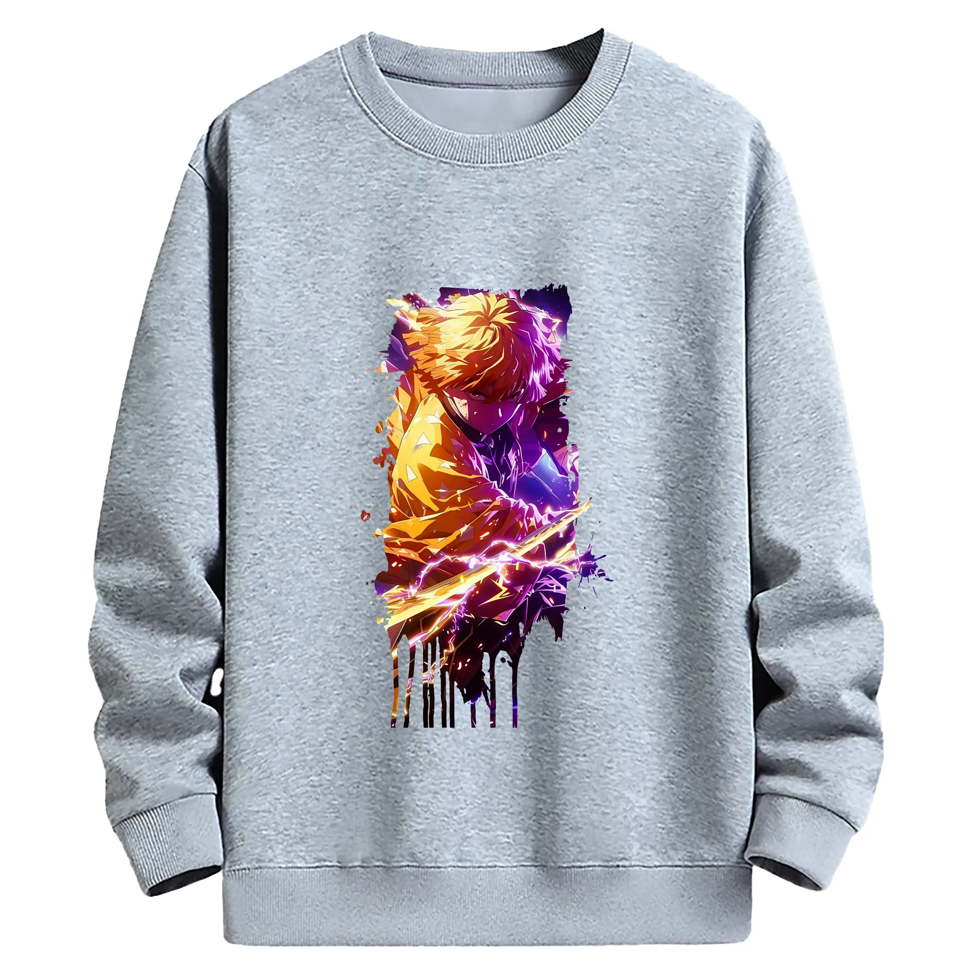 鬼滅の刃 グッズ,我妻 善逸 - 薄手 クルーネック スウェット 裏毛260g · ポリエステル 春秋向け カジュアル 男女兼用 · トレーナー デイリー スポーツ 散歩に最適