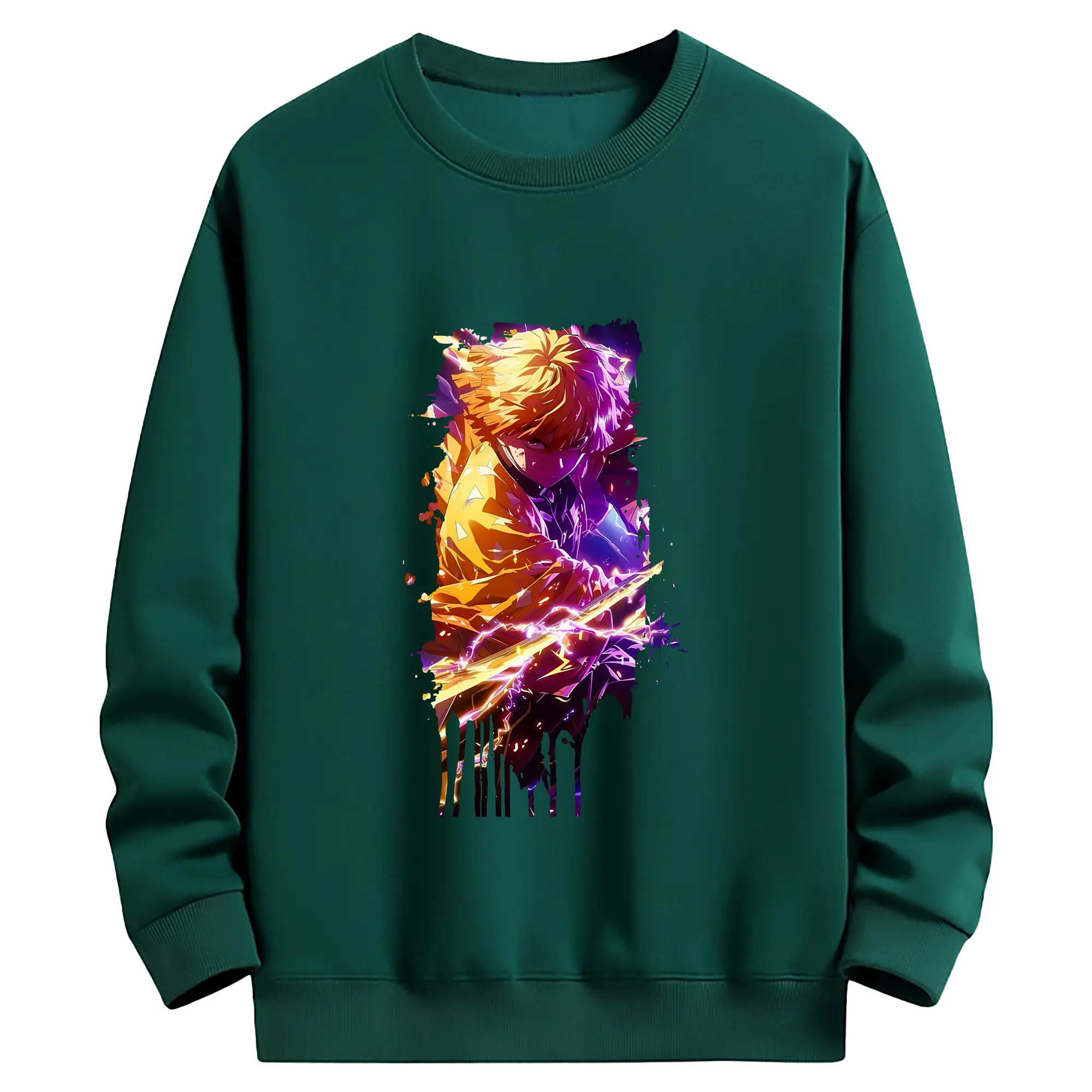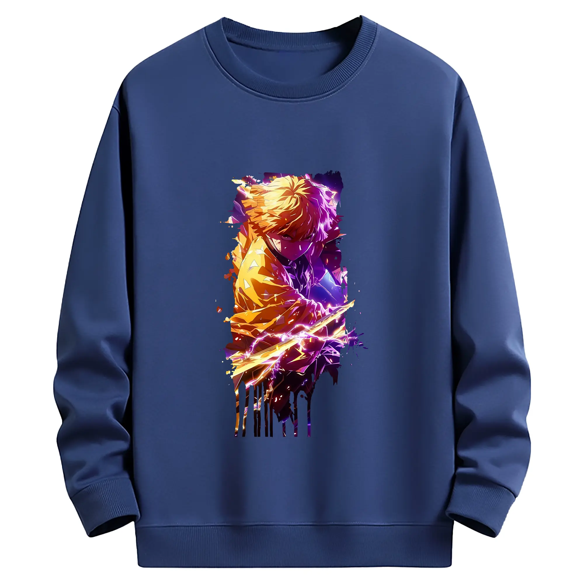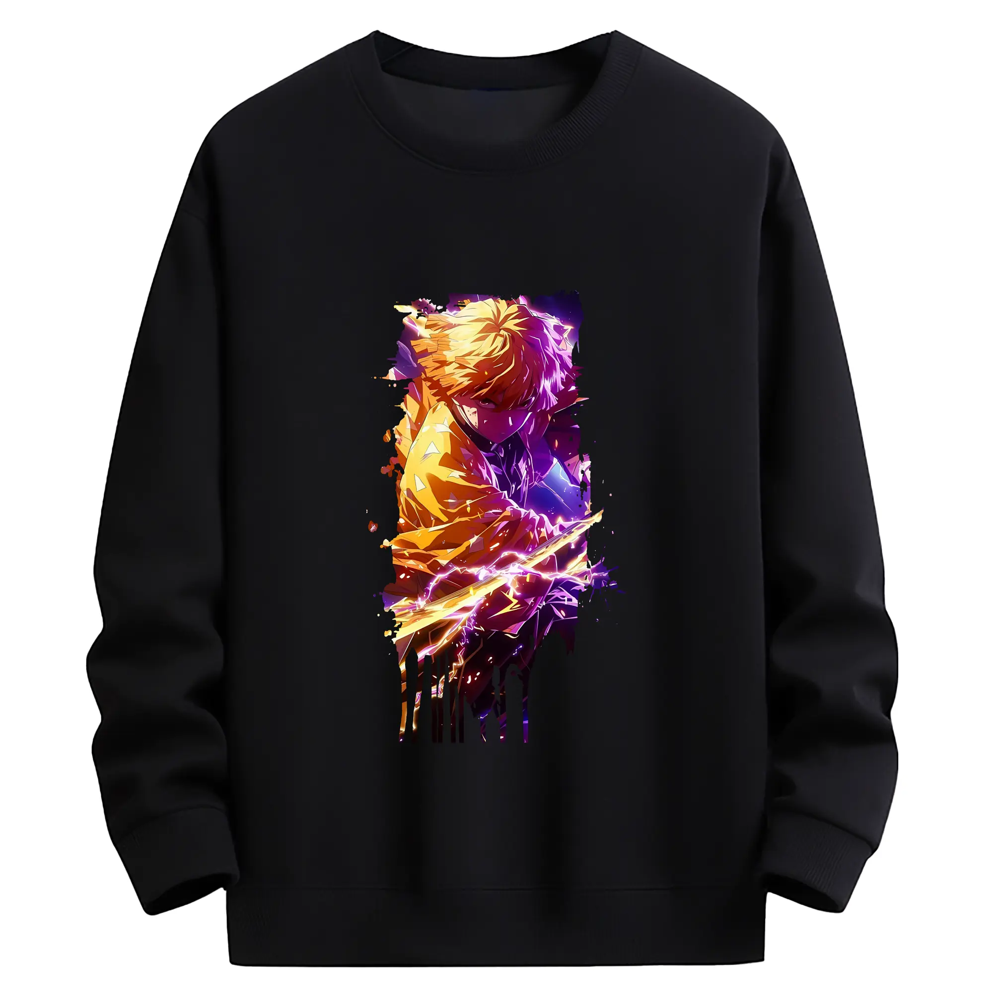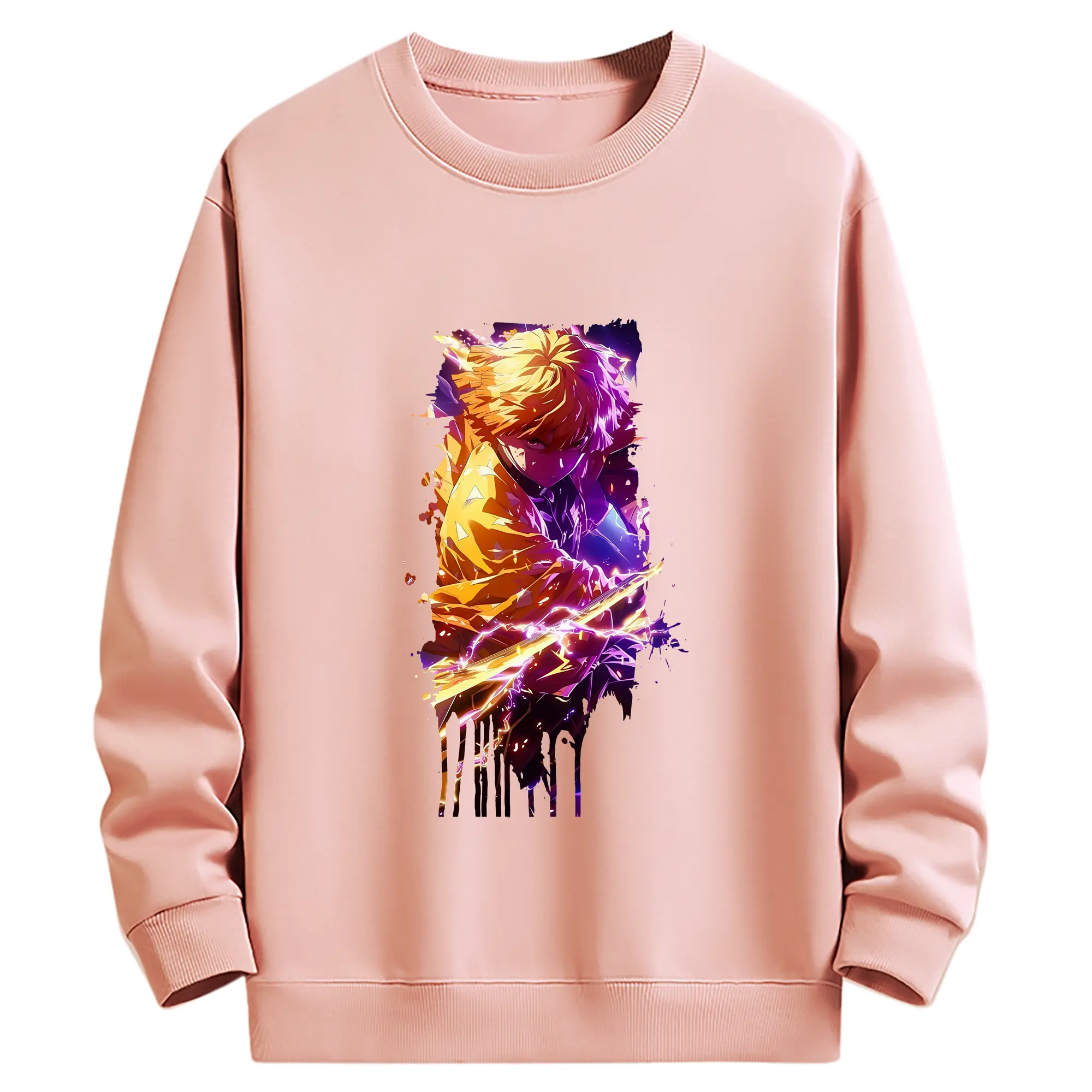 鬼滅の刃 グッズ,我妻 善逸 - 薄手 クルーネック スウェット 裏毛260g · ポリエステル 春秋向け カジュアル 男女兼用 · トレーナー デイリー スポーツ 散歩に最適