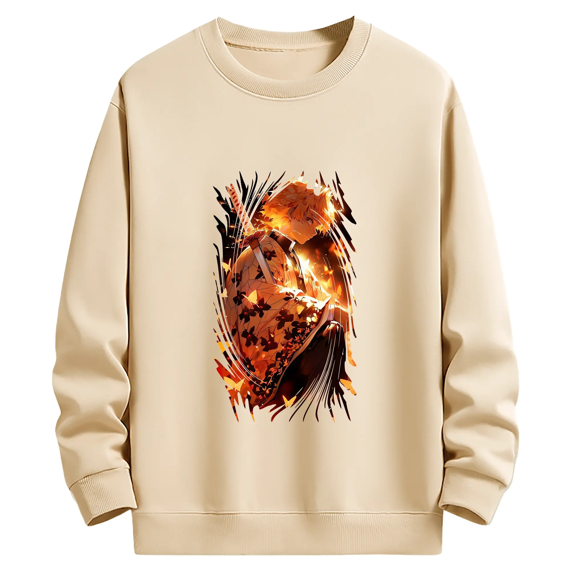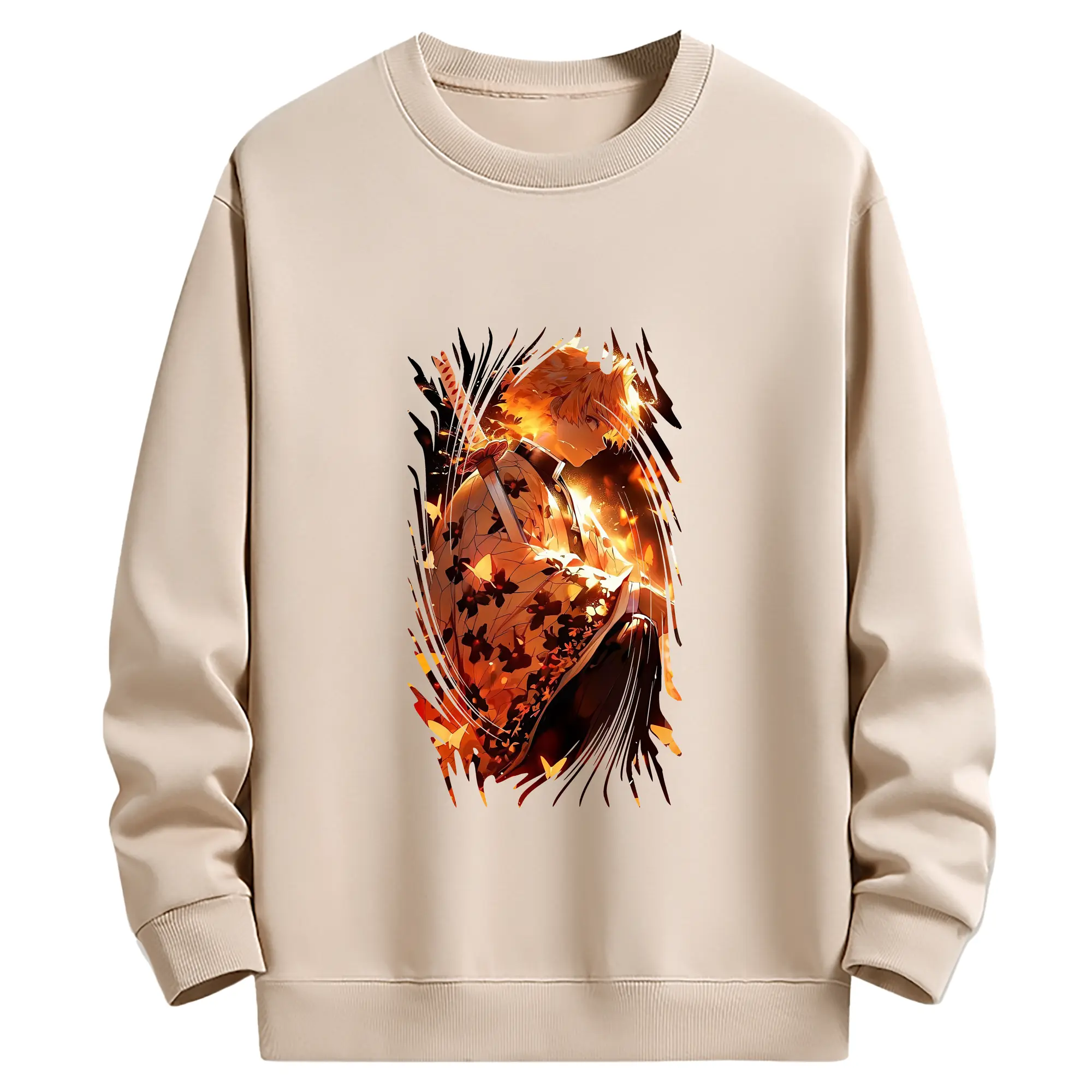 鬼滅の刃 グッズ,我妻 善逸 - 薄手 クルーネック スウェット 裏毛260g · ポリエステル 春秋向け カジュアル 男女兼用 · トレーナー デイリー スポーツ 散歩に最適