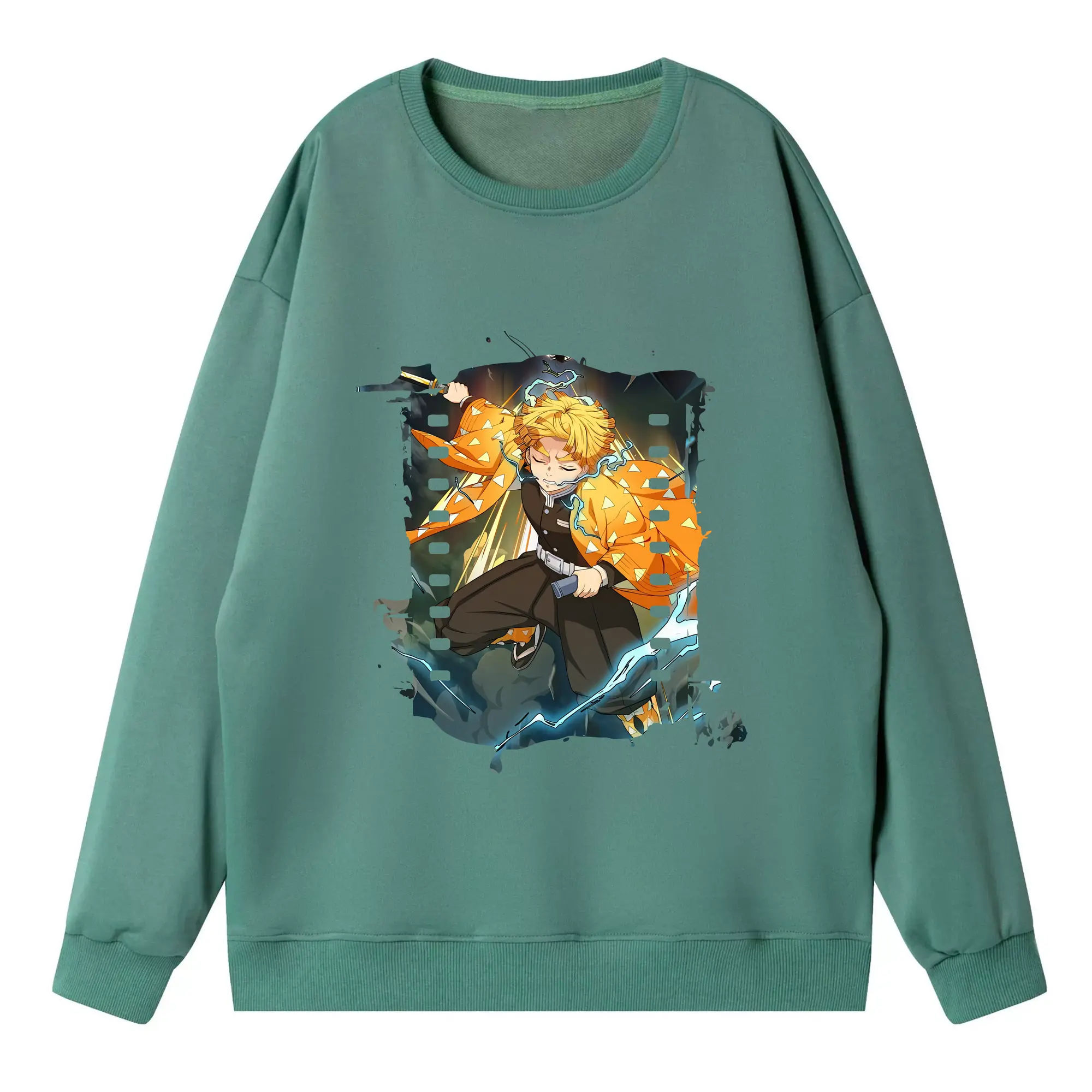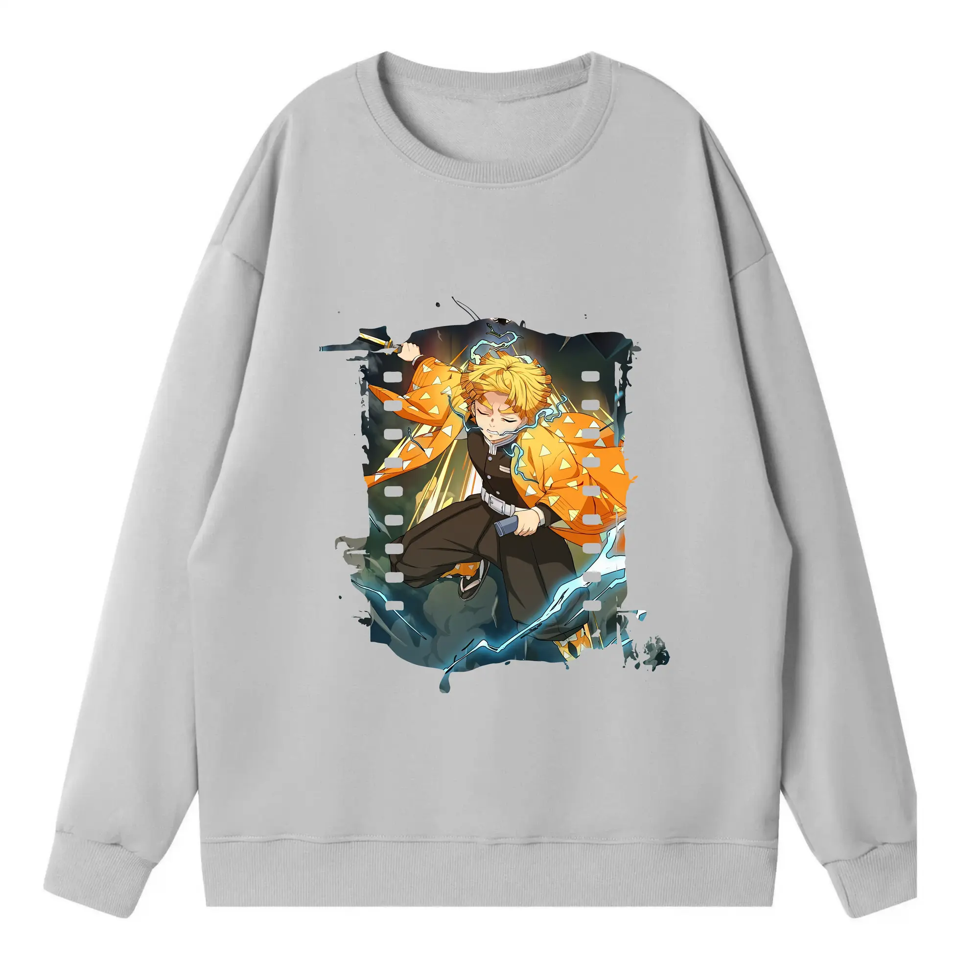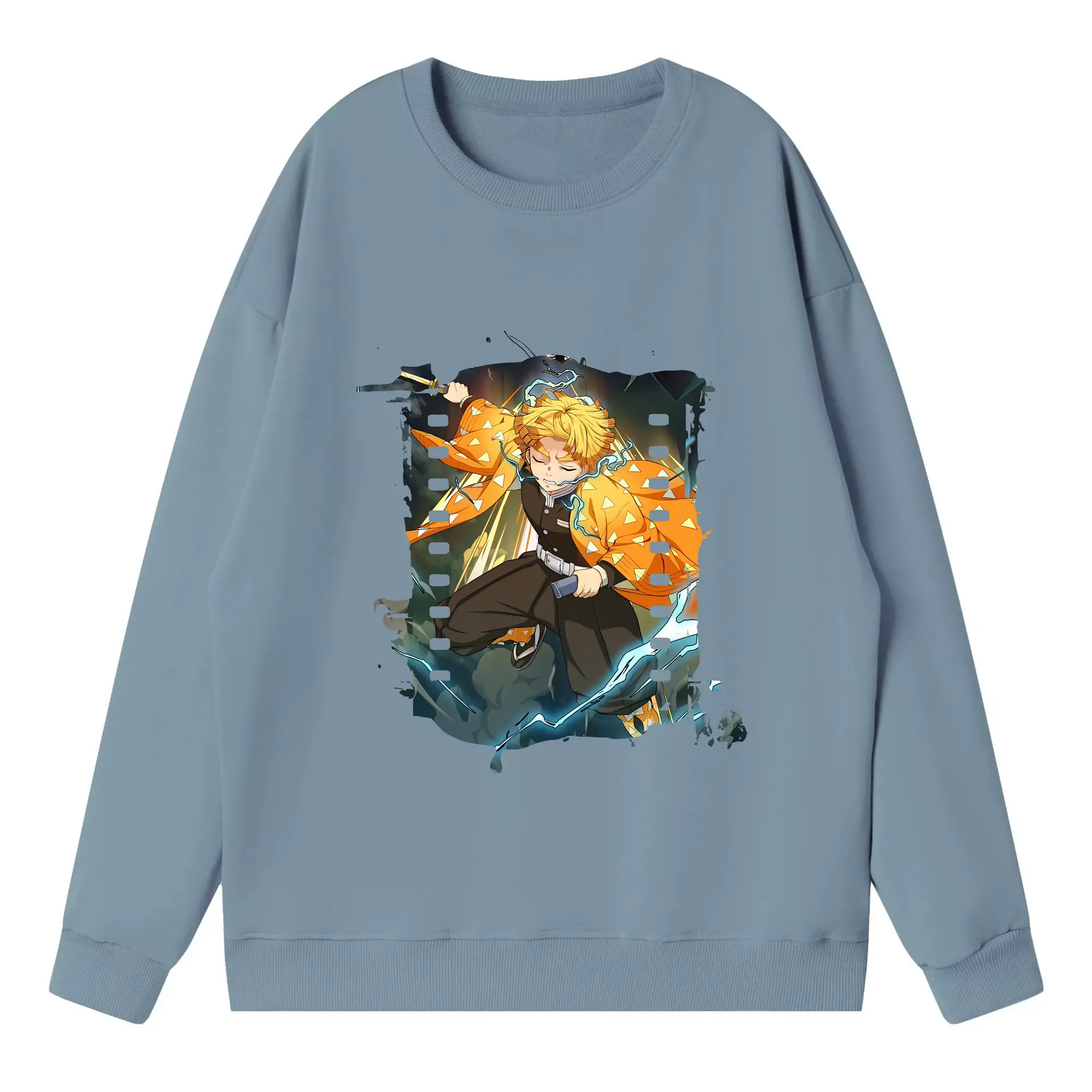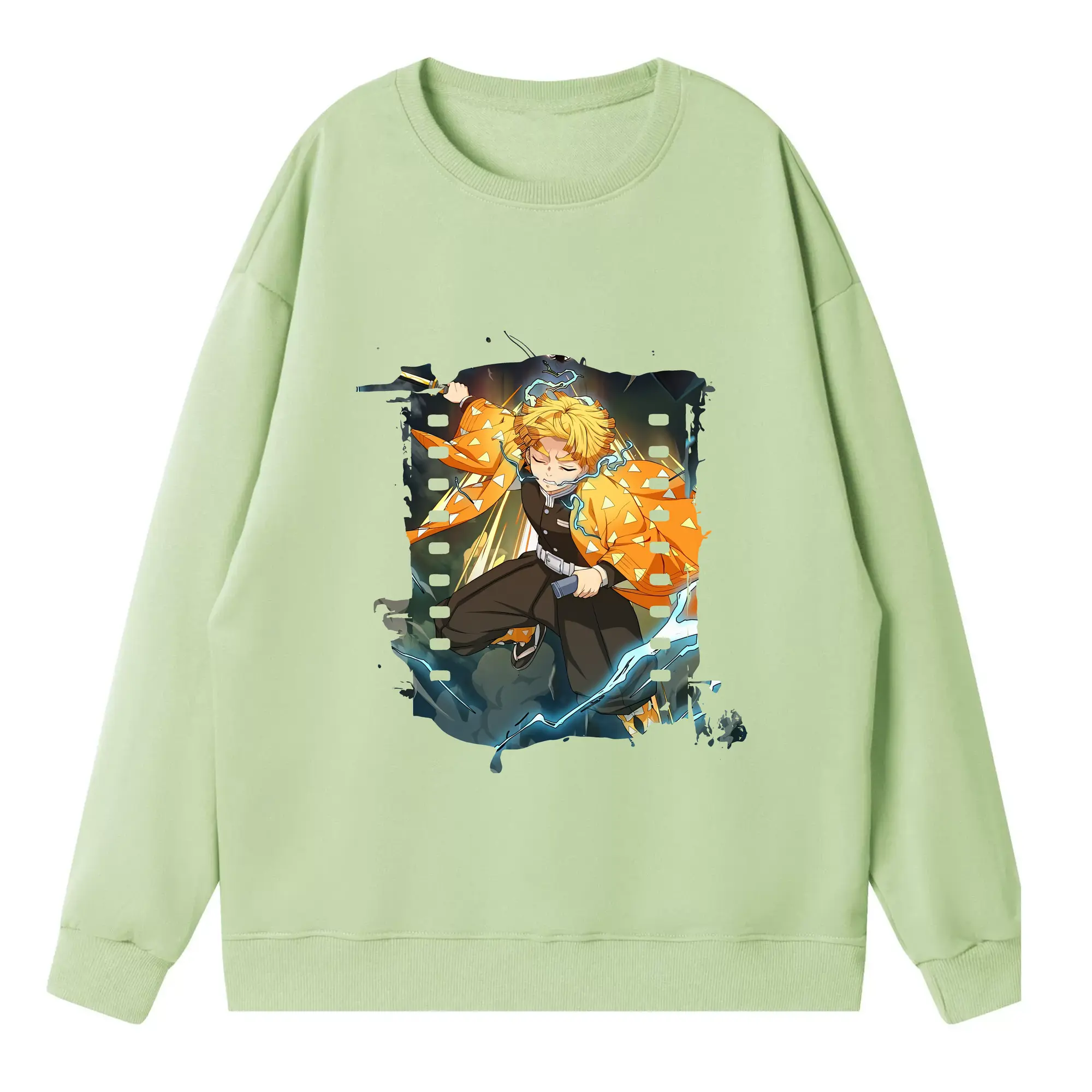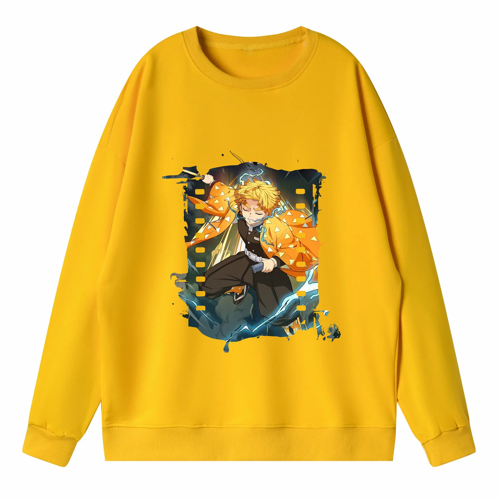 鬼滅の刃 グッズ,我妻 善逸 - 高品質 クルーネック スウェット ・ コットン59% ポリエステル41% ・ ユニセックス 長袖 トレーナー ・ カジュアル デイリー スポーツ 散歩用