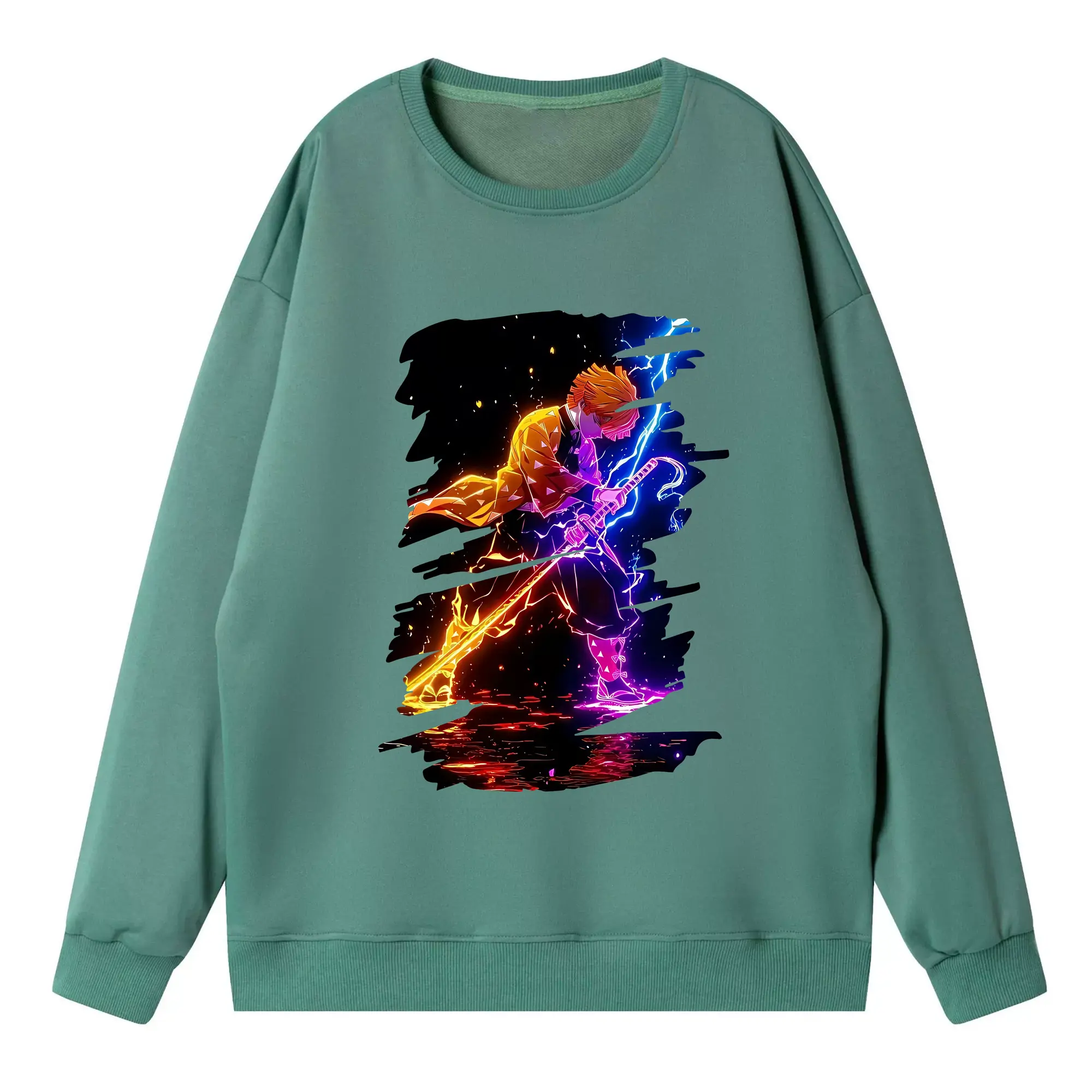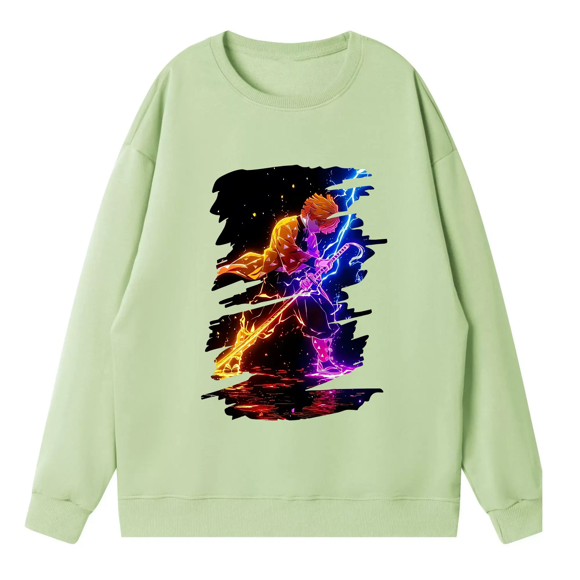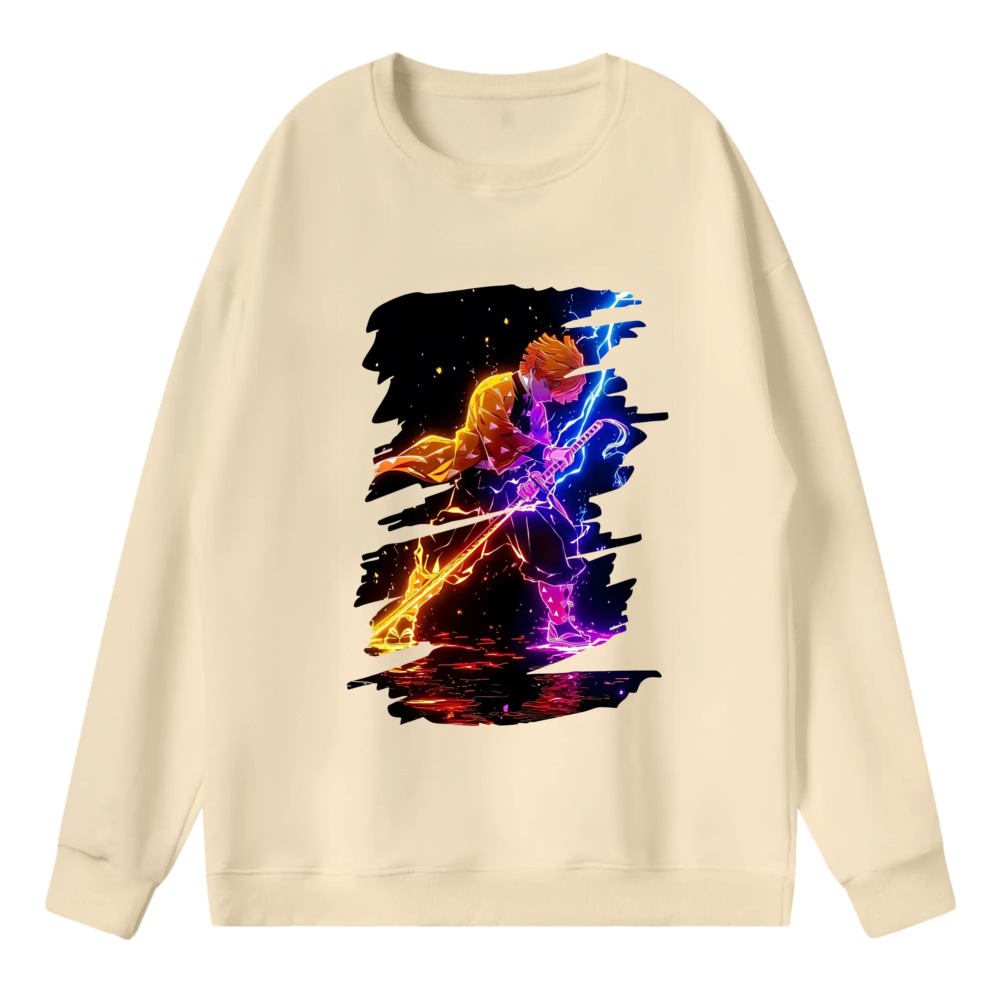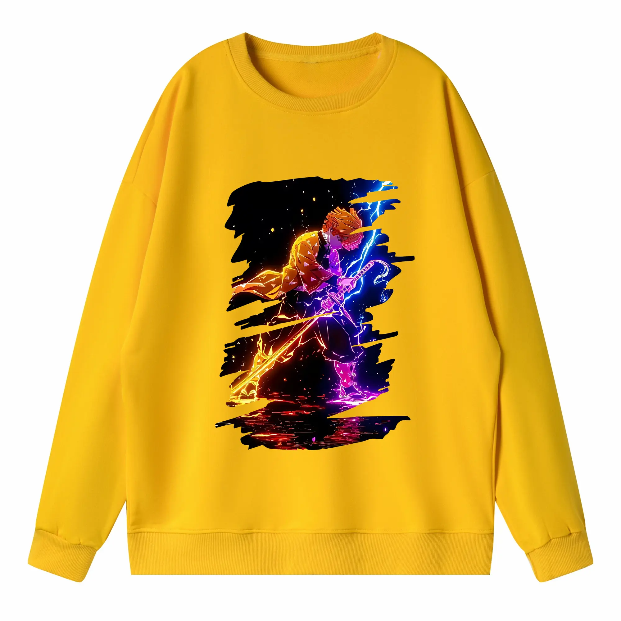 鬼滅の刃 グッズ,我妻 善逸 - 高品質 クルーネック スウェット ・ コットン59% ポリエステル41% ・ ユニセックス 長袖 トレーナー ・ カジュアル デイリー スポーツ 散歩用