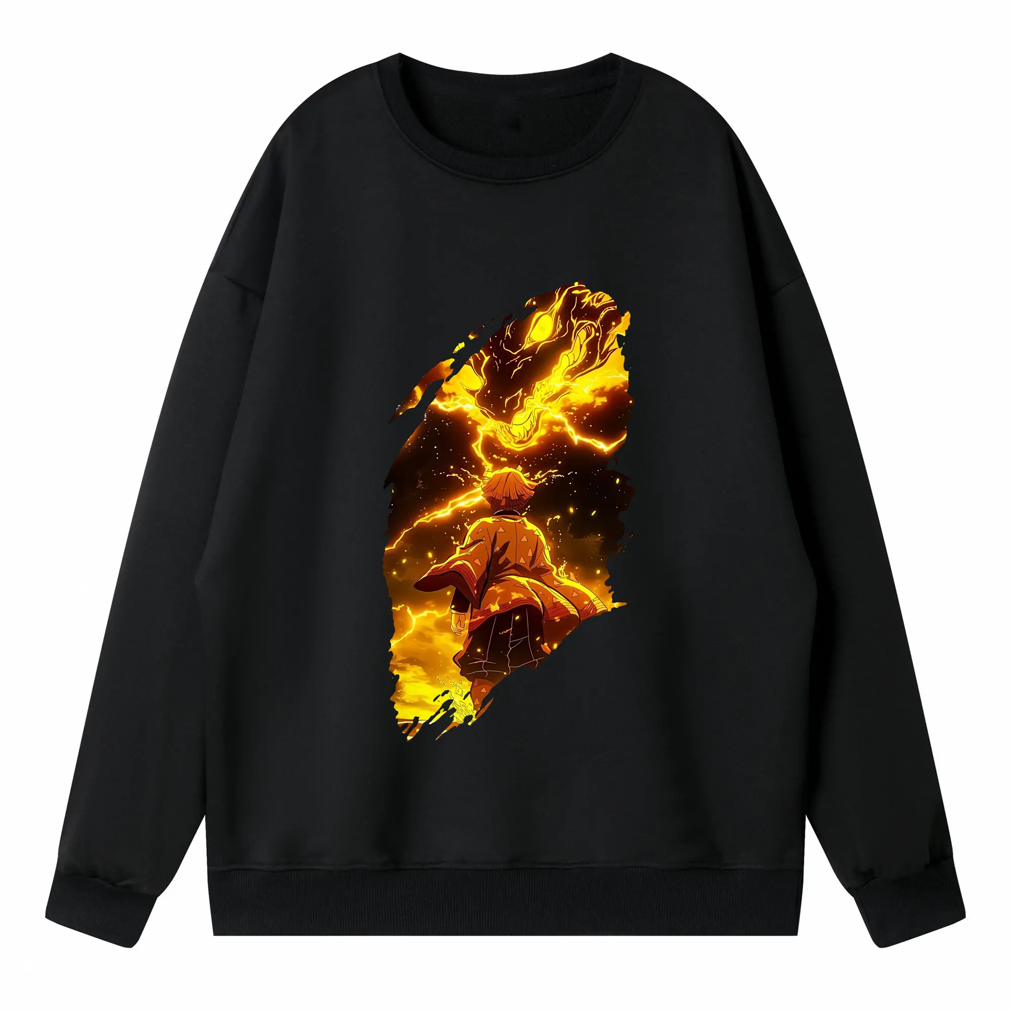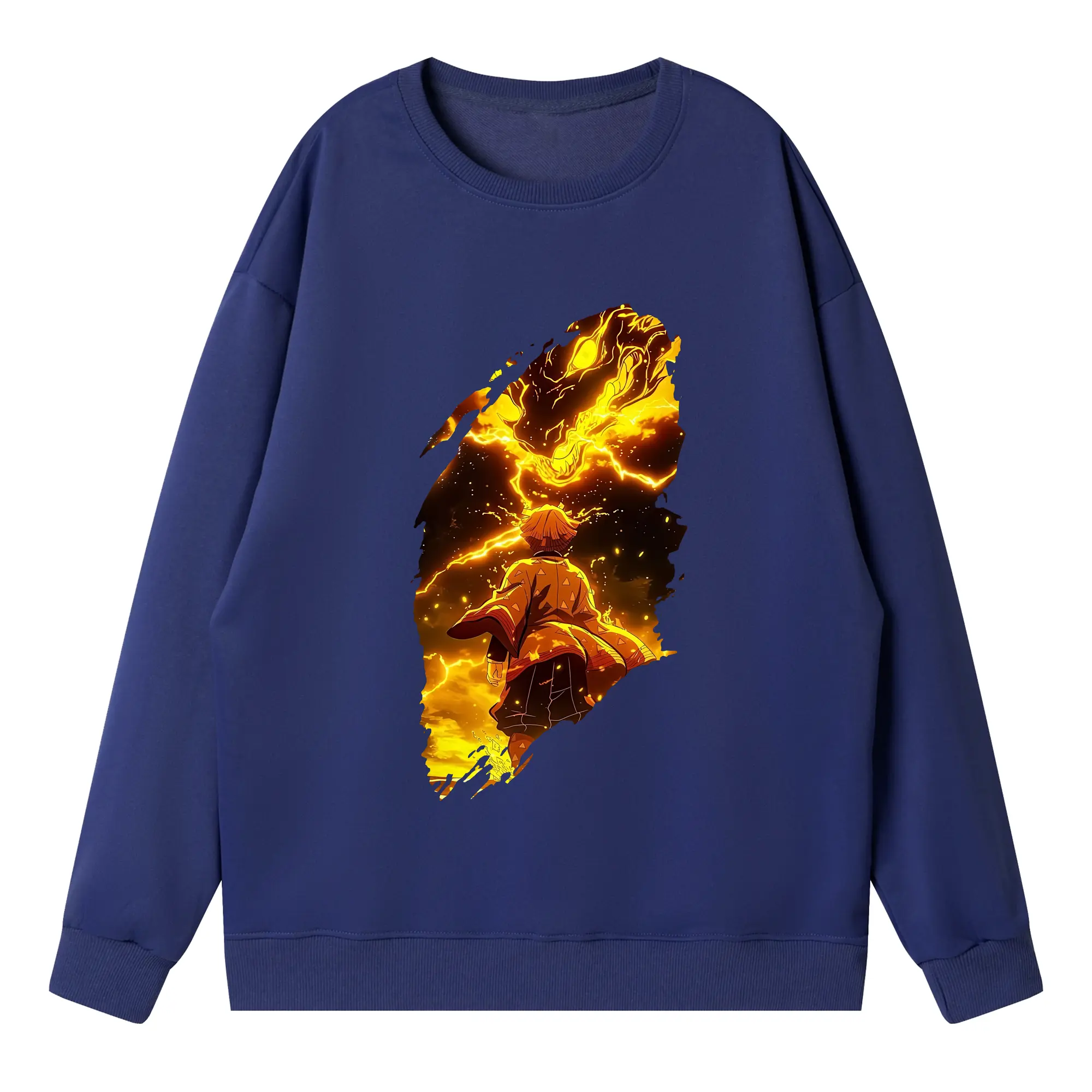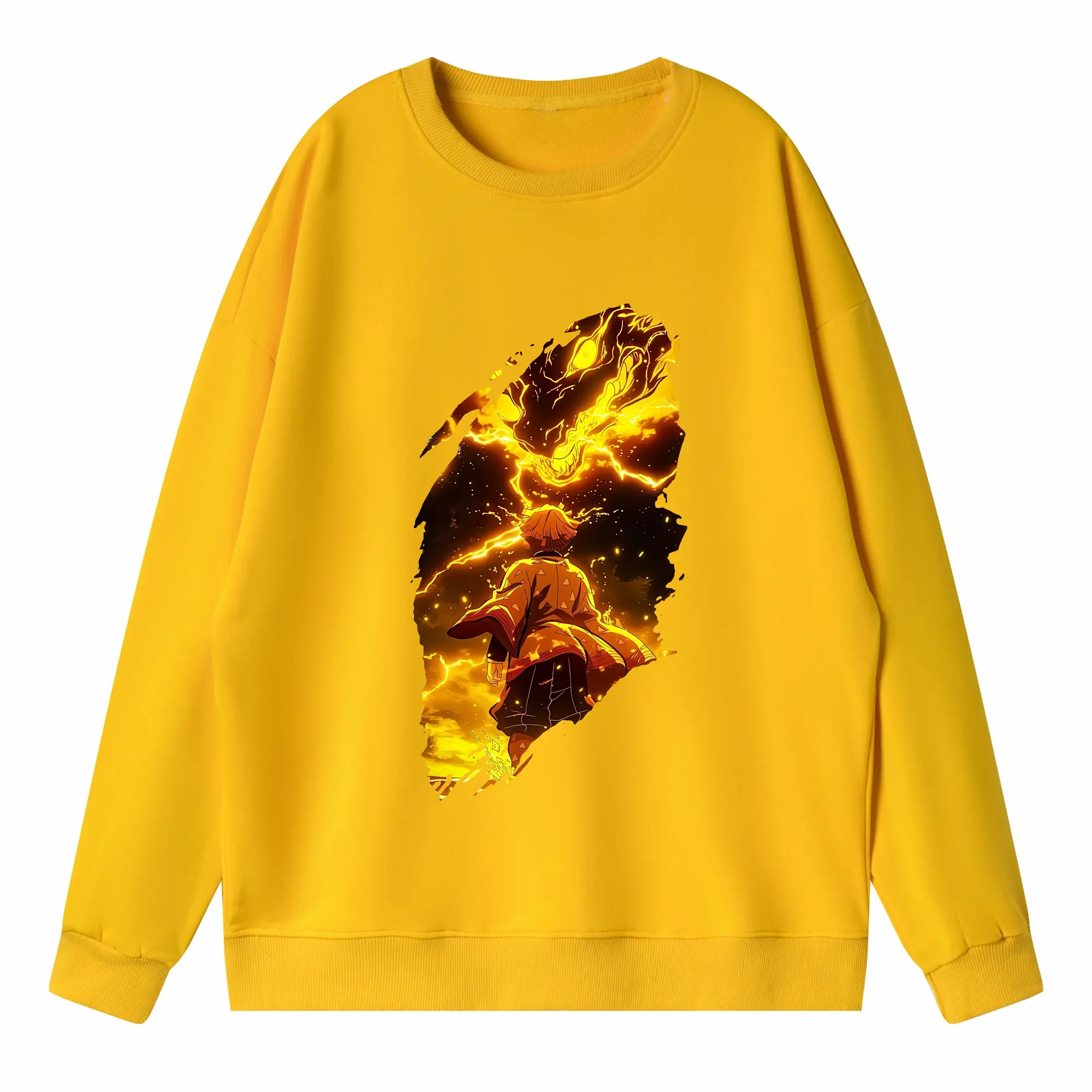 鬼滅の刃 グッズ,我妻 善逸 - 高品質 クルーネック スウェット ・ コットン59% ポリエステル41% ・ ユニセックス 長袖 トレーナー ・ カジュアル デイリー スポーツ 散歩用