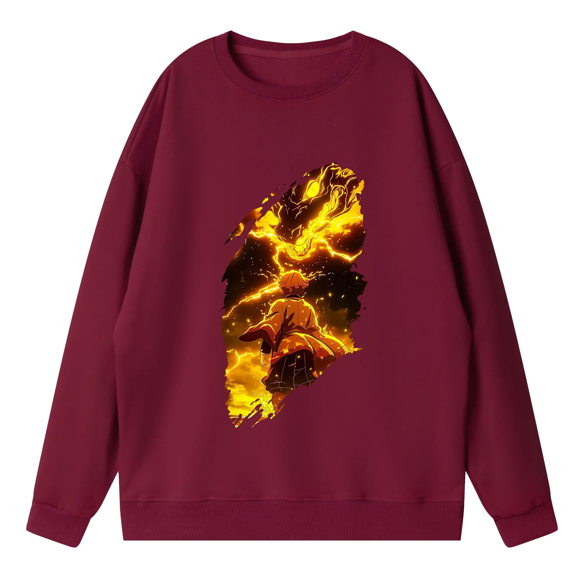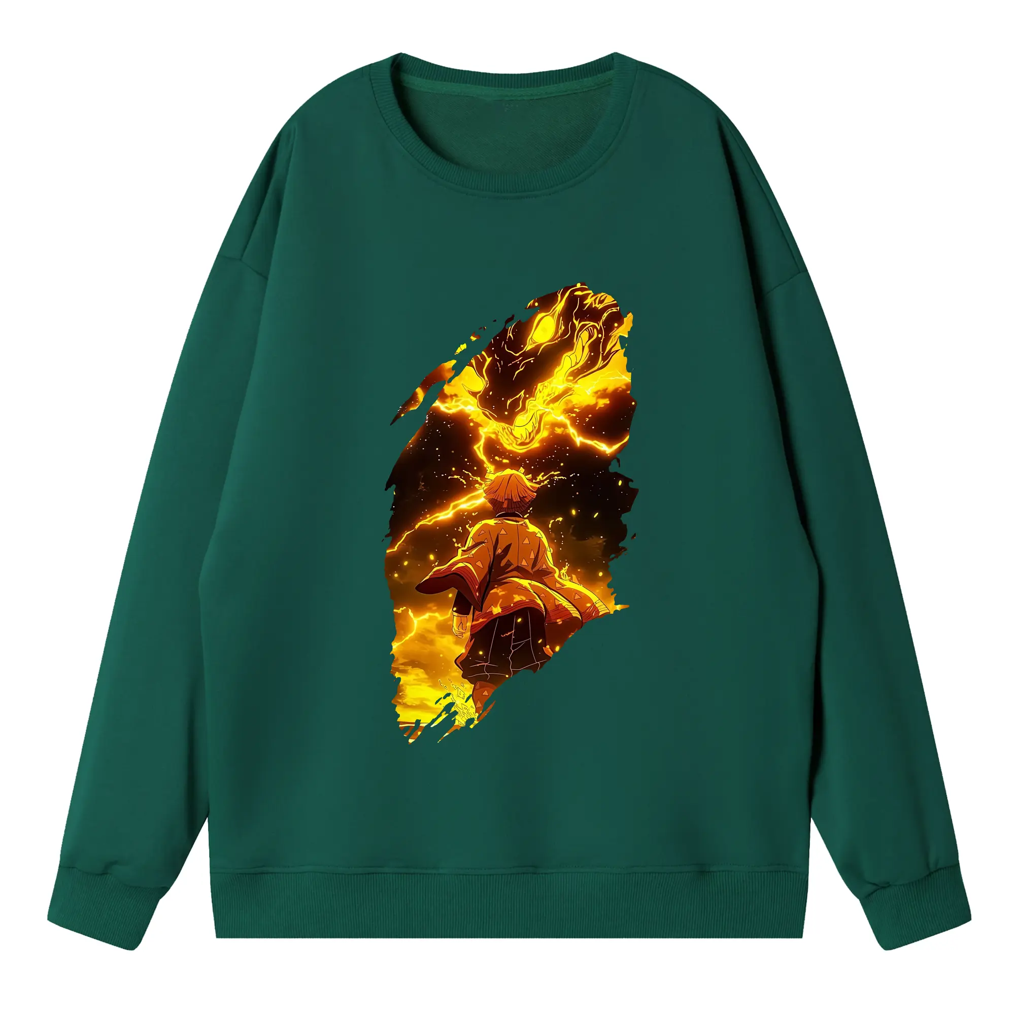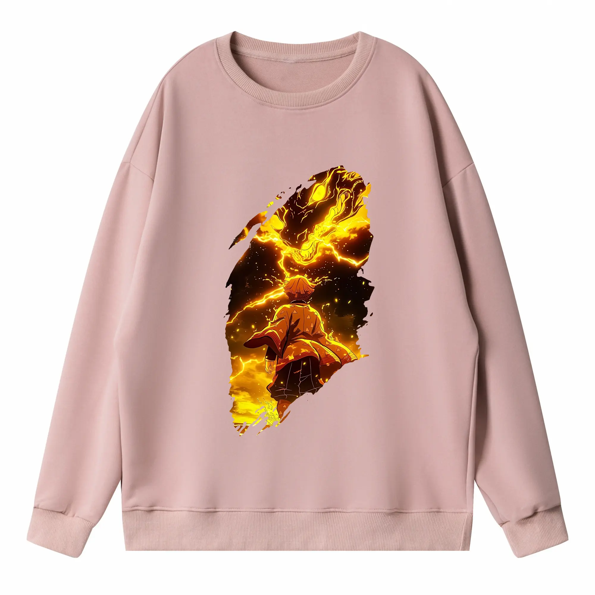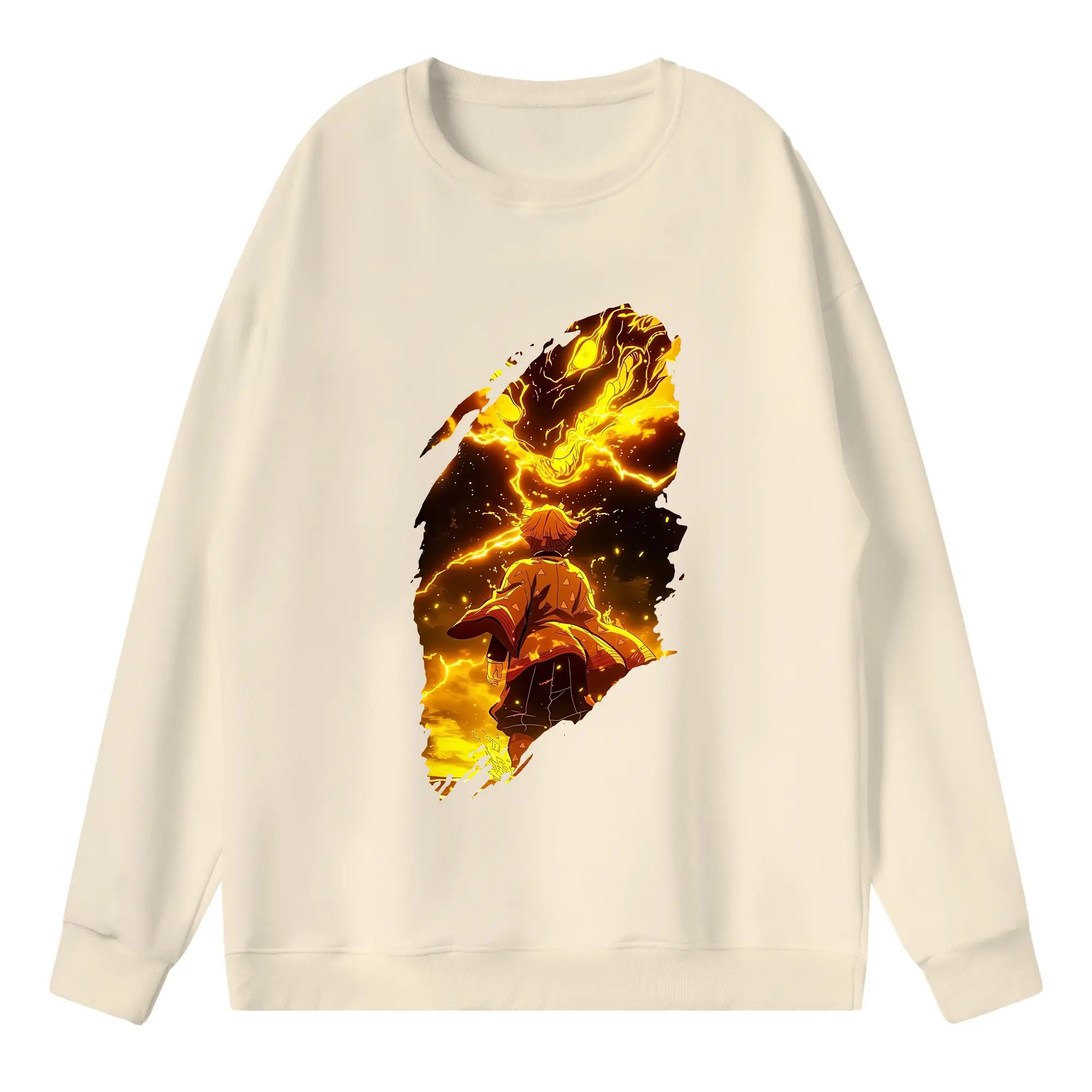 鬼滅の刃 グッズ,我妻 善逸 - 高品質 クルーネック スウェット ・ コットン59% ポリエステル41% ・ ユニセックス 長袖 トレーナー ・ カジュアル デイリー スポーツ 散歩用
