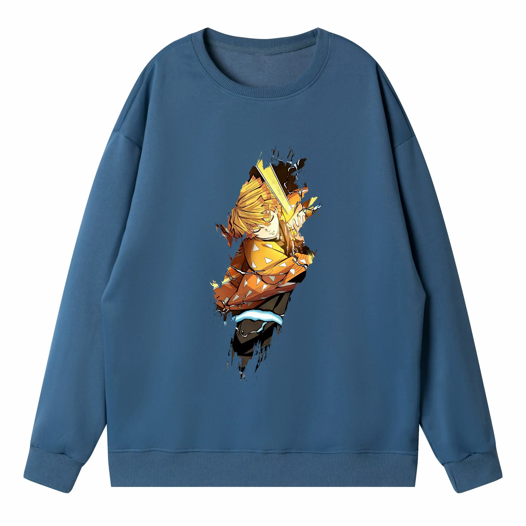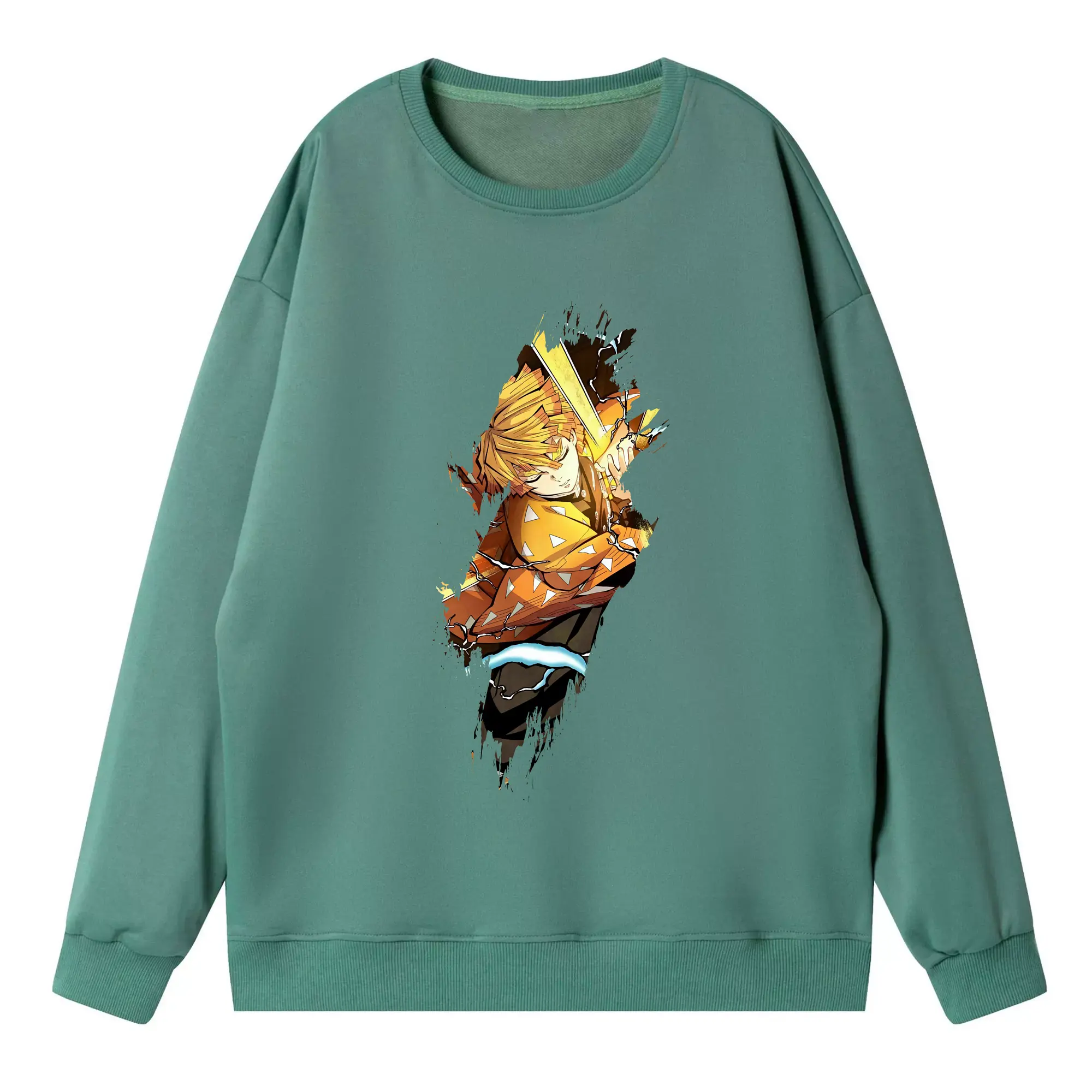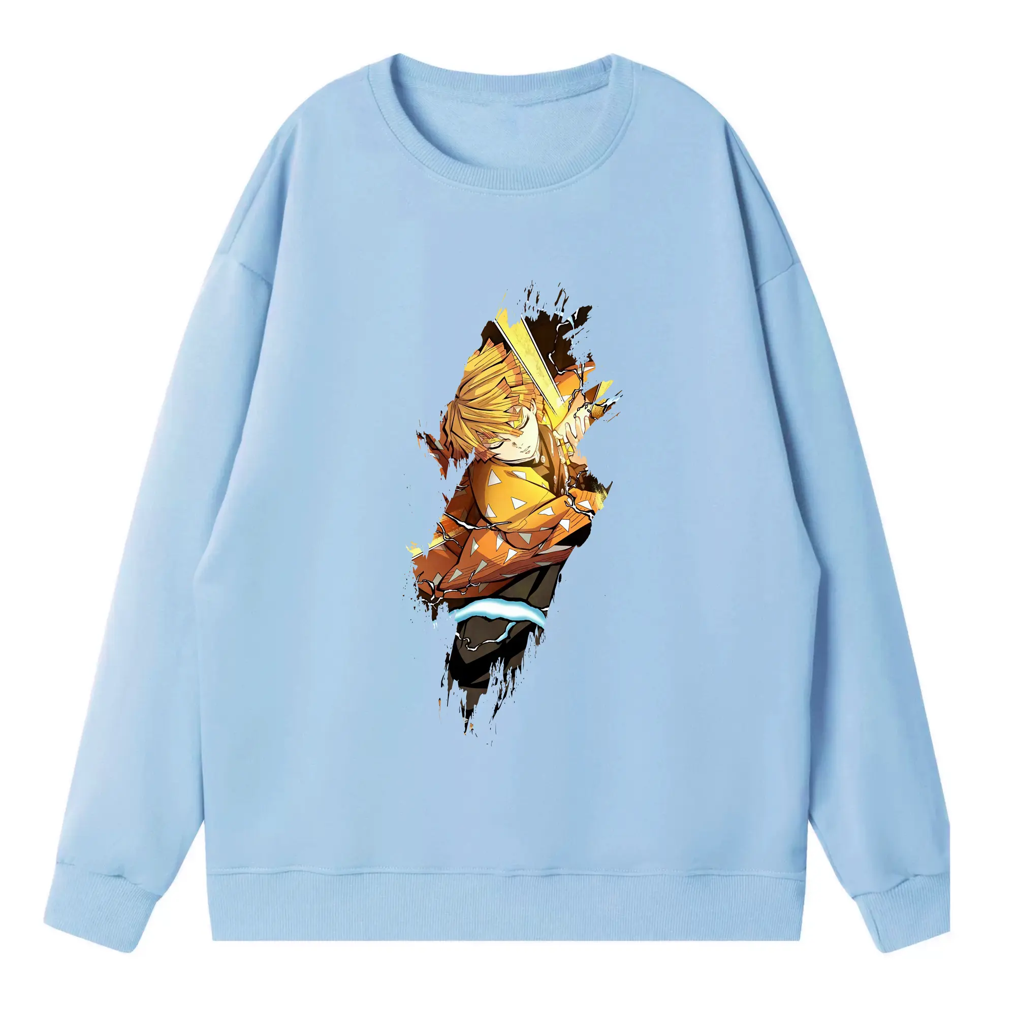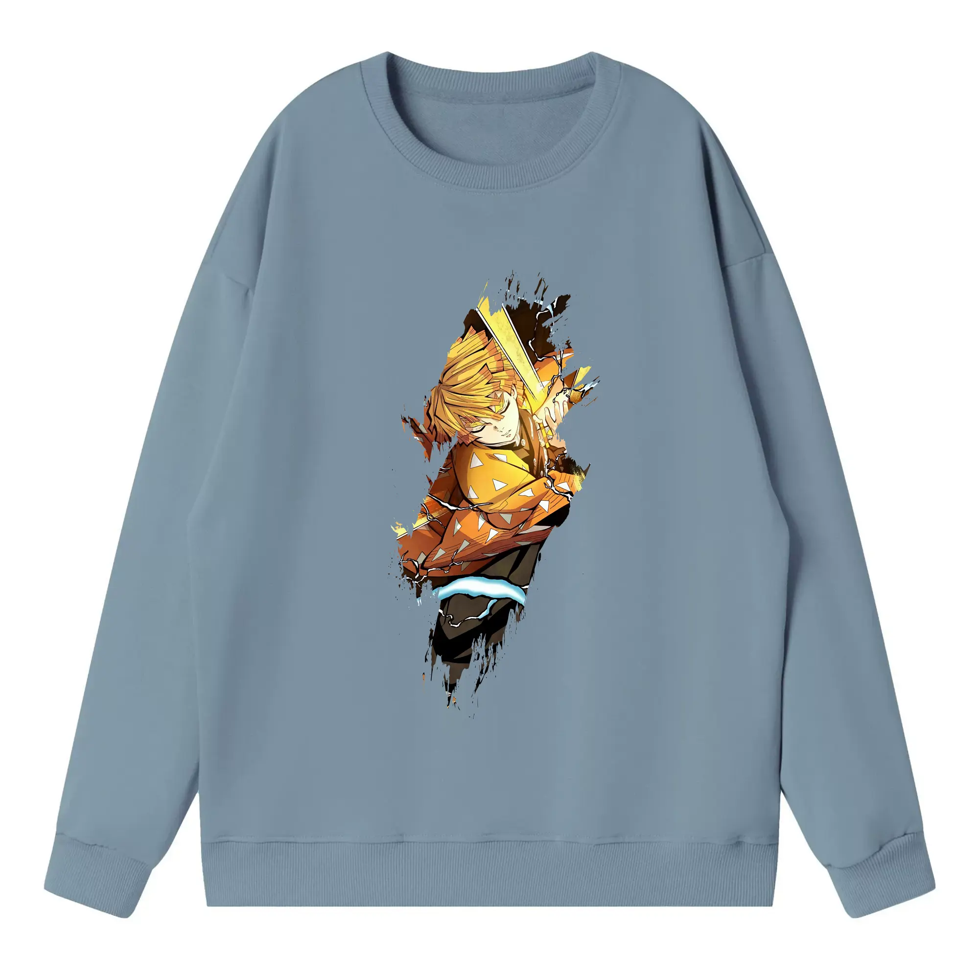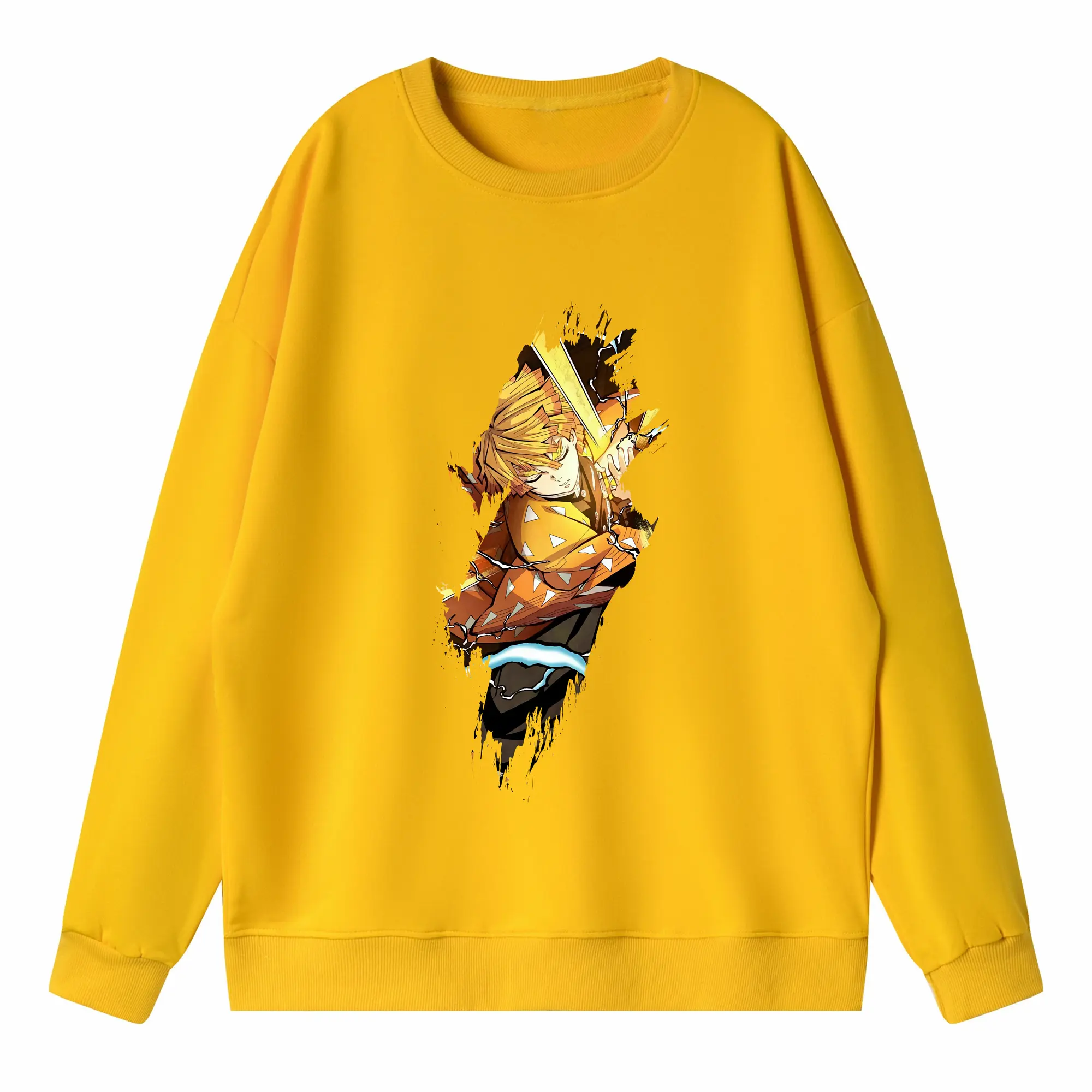 鬼滅の刃 グッズ,我妻 善逸 - 高品質 クルーネック スウェット ・ コットン59% ポリエステル41% ・ ユニセックス 長袖 トレーナー ・ カジュアル デイリー スポーツ 散歩用