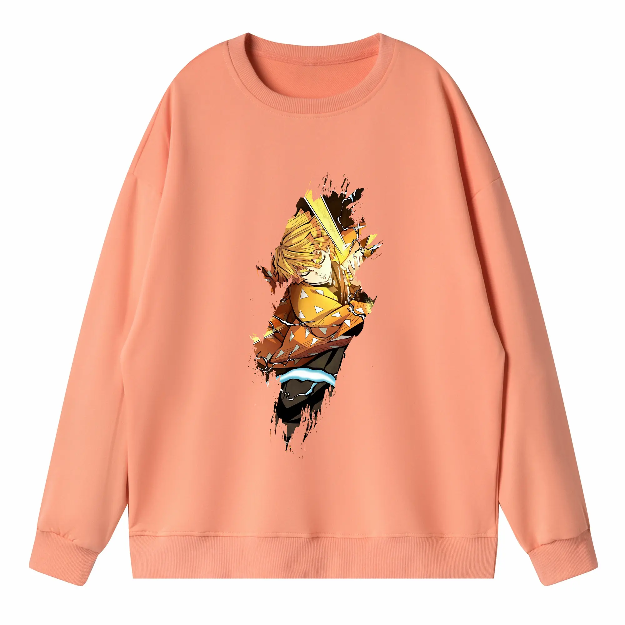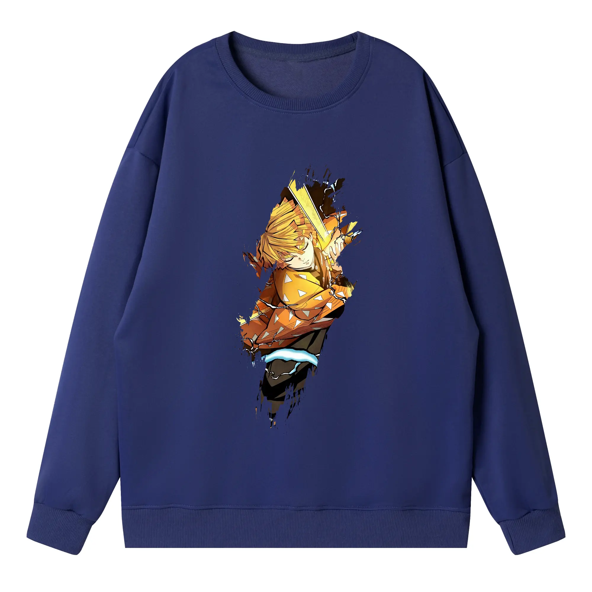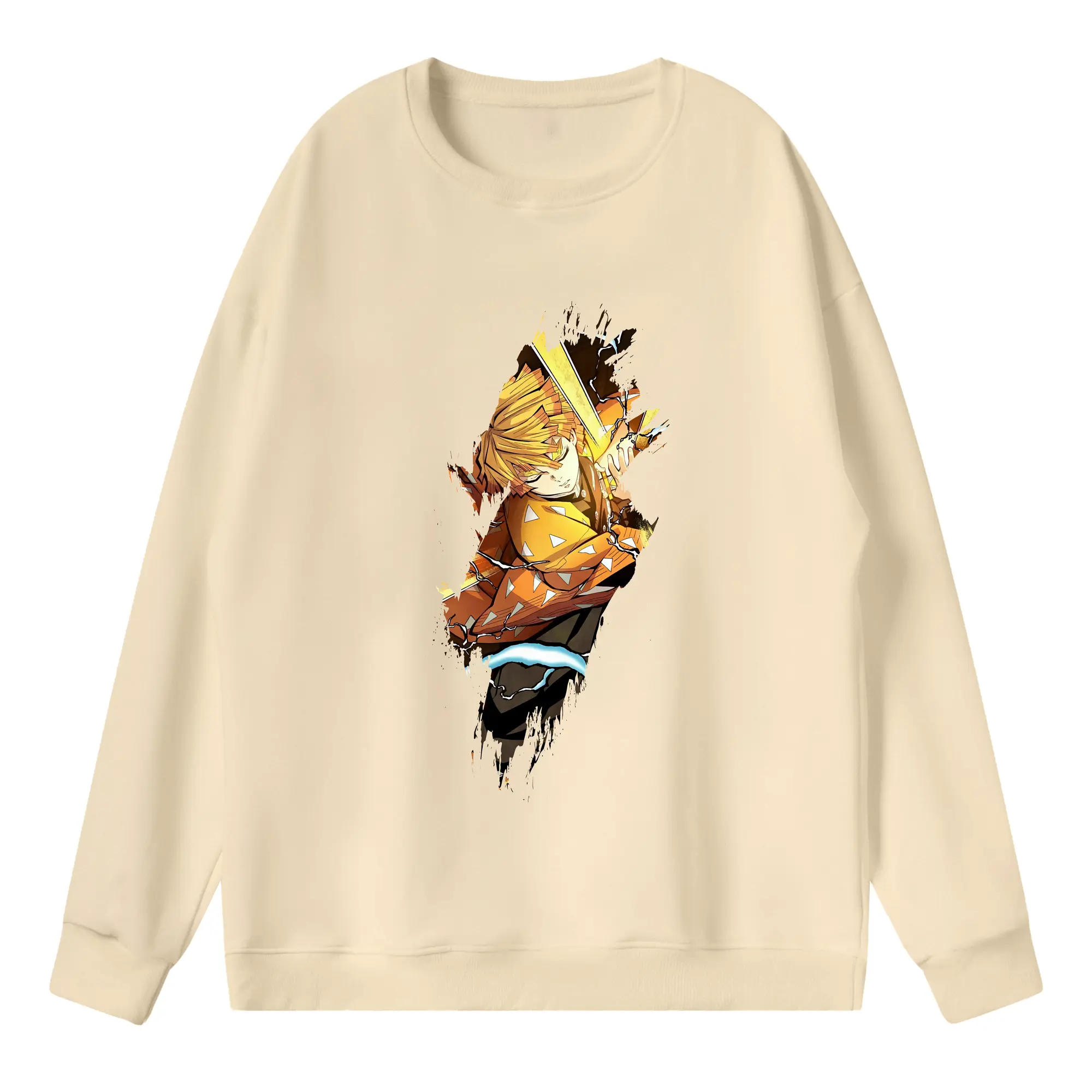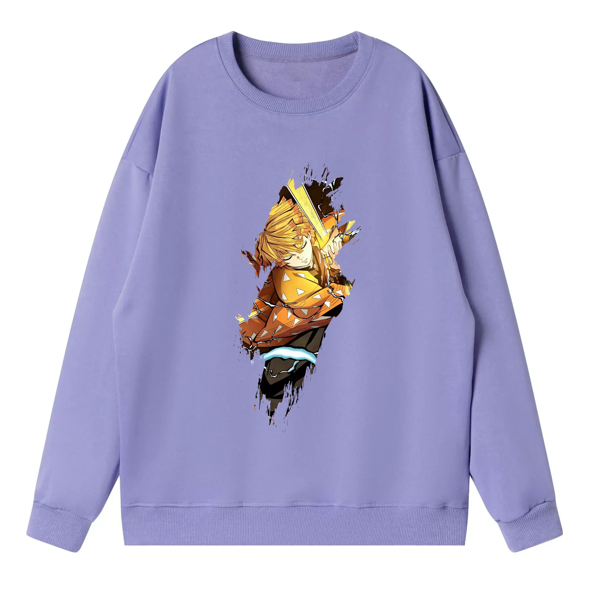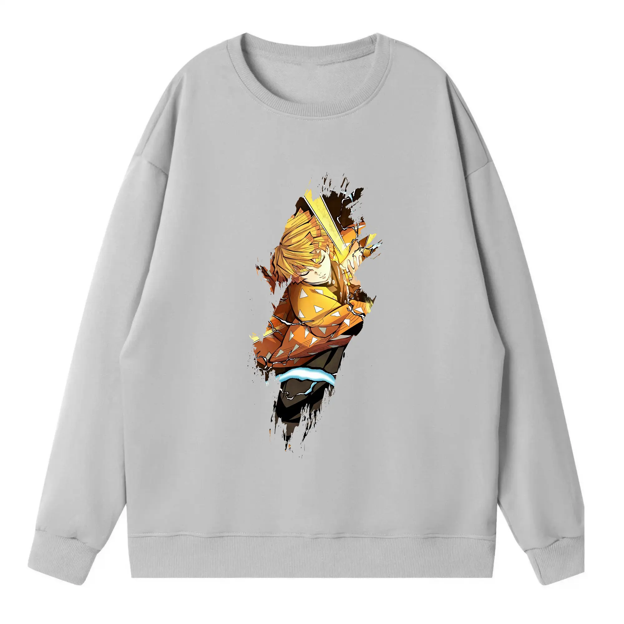 鬼滅の刃 グッズ,我妻 善逸 - 高品質 クルーネック スウェット ・ コットン59% ポリエステル41% ・ ユニセックス 長袖 トレーナー ・ カジュアル デイリー スポーツ 散歩用