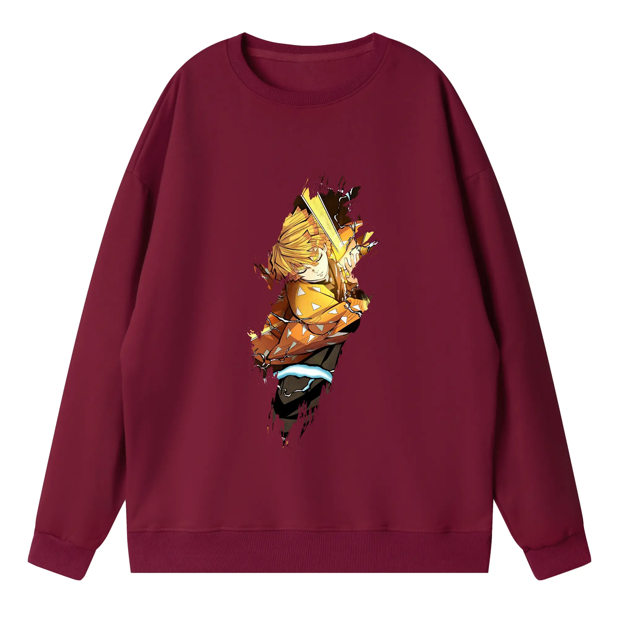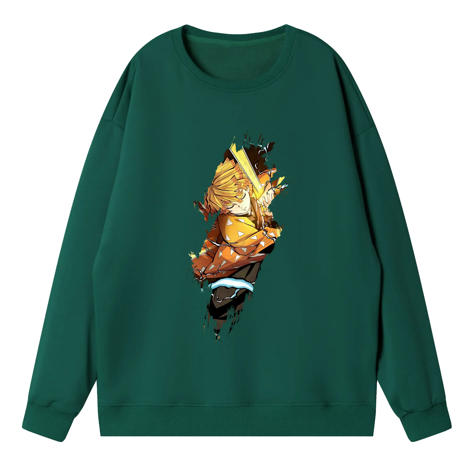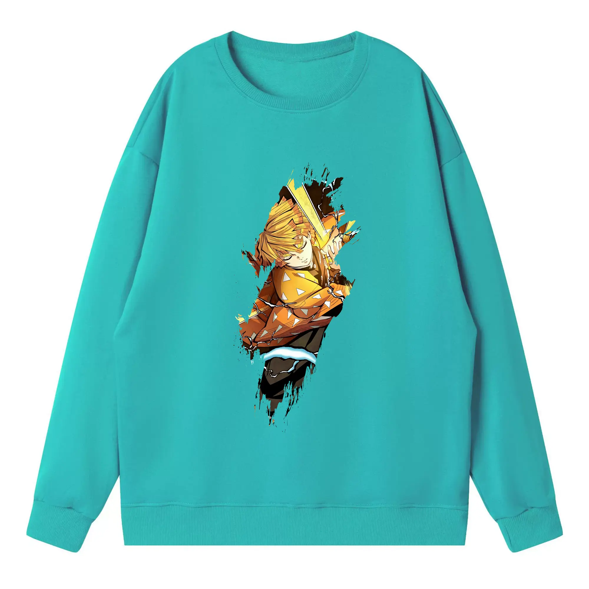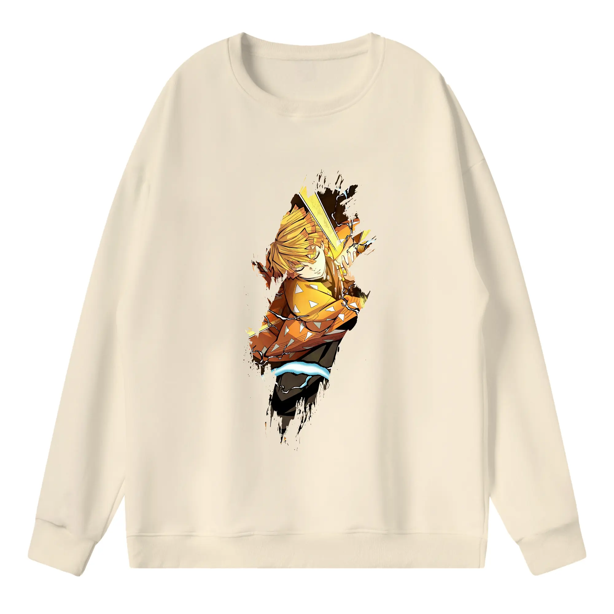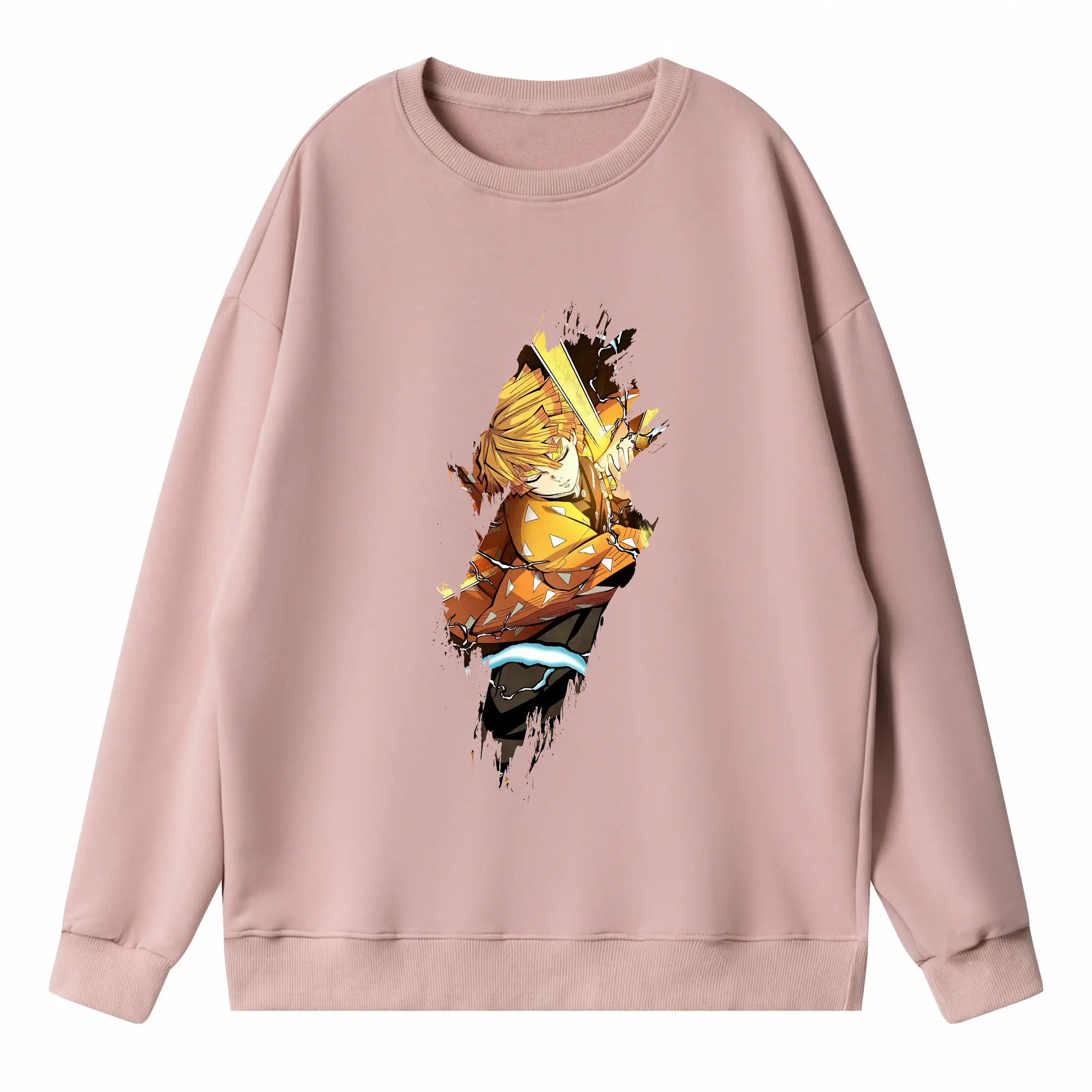 鬼滅の刃 グッズ,我妻 善逸 - 高品質 クルーネック スウェット ・ コットン59% ポリエステル41% ・ ユニセックス 長袖 トレーナー ・ カジュアル デイリー スポーツ 散歩用