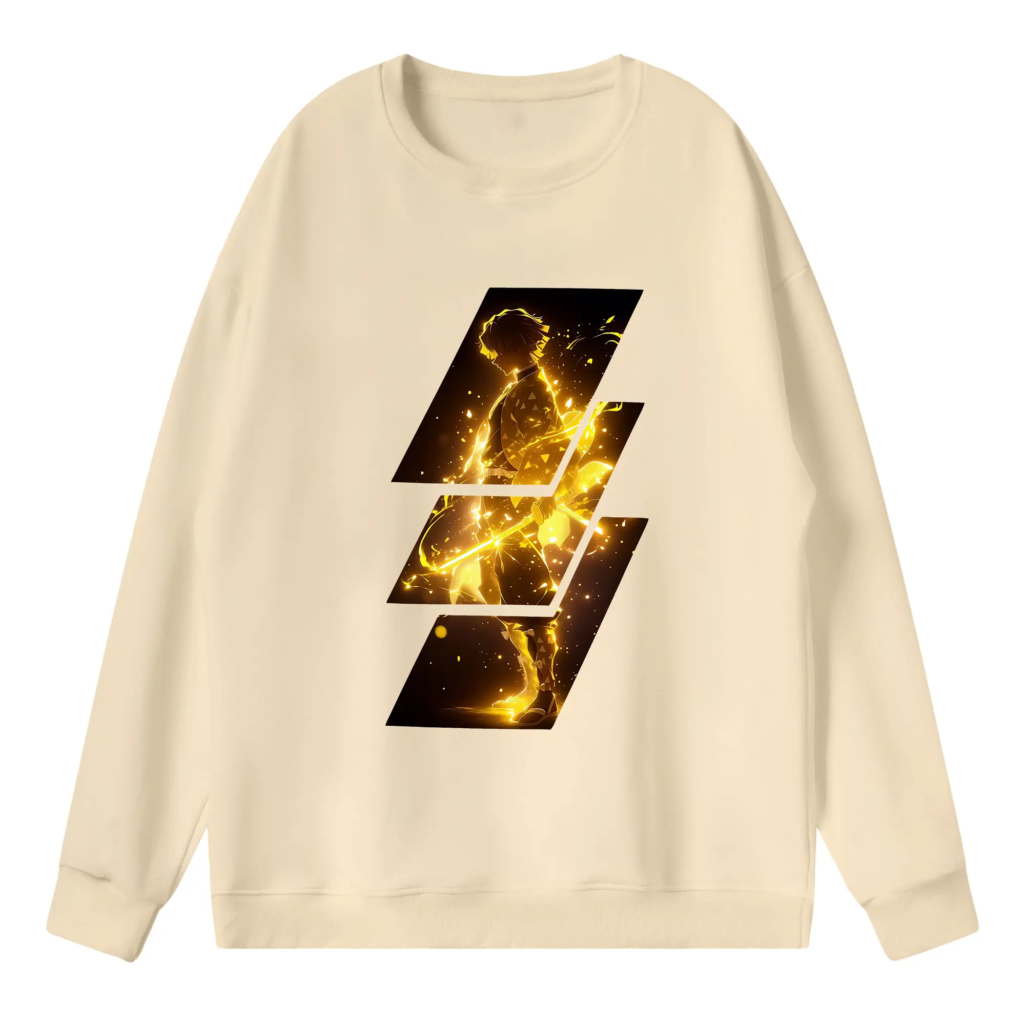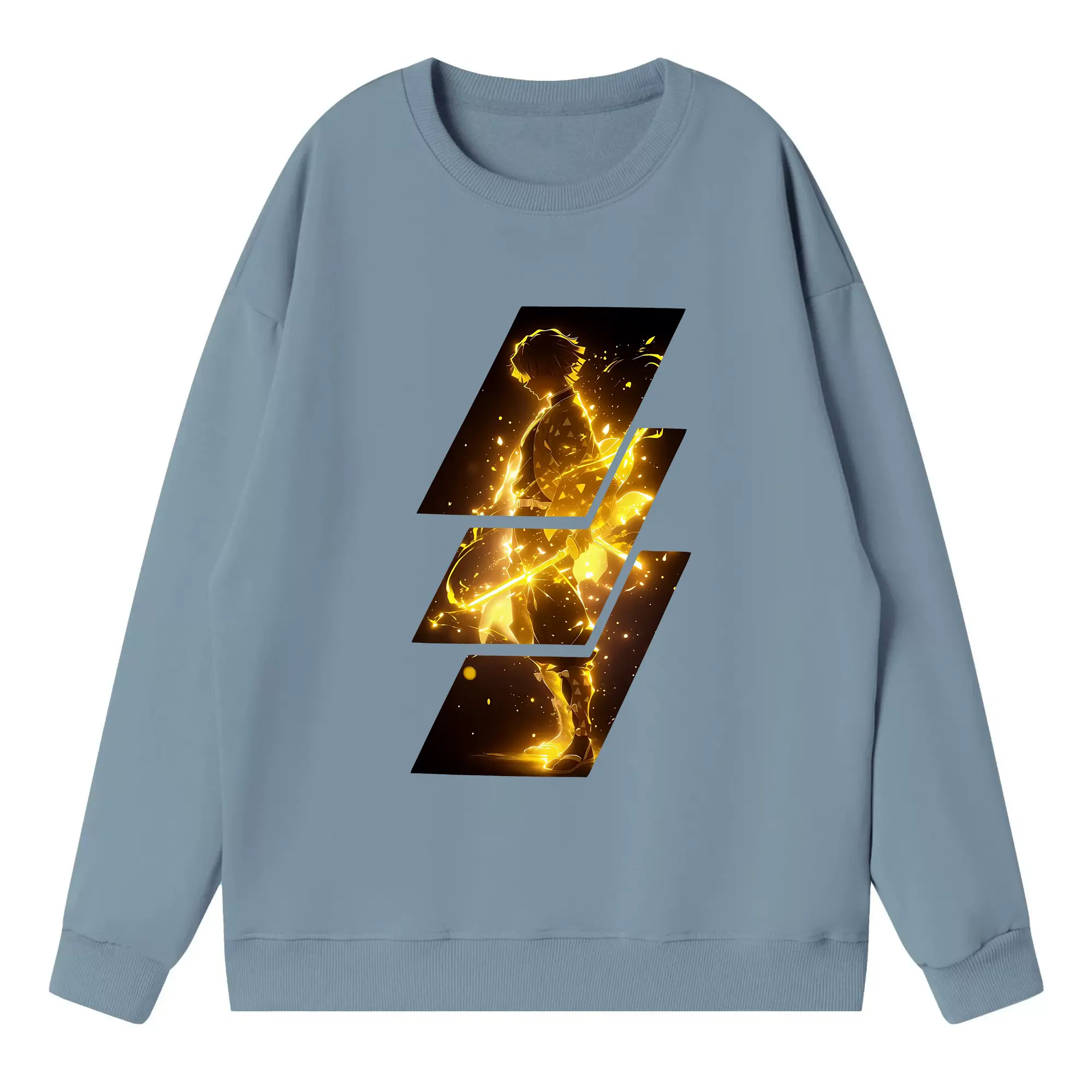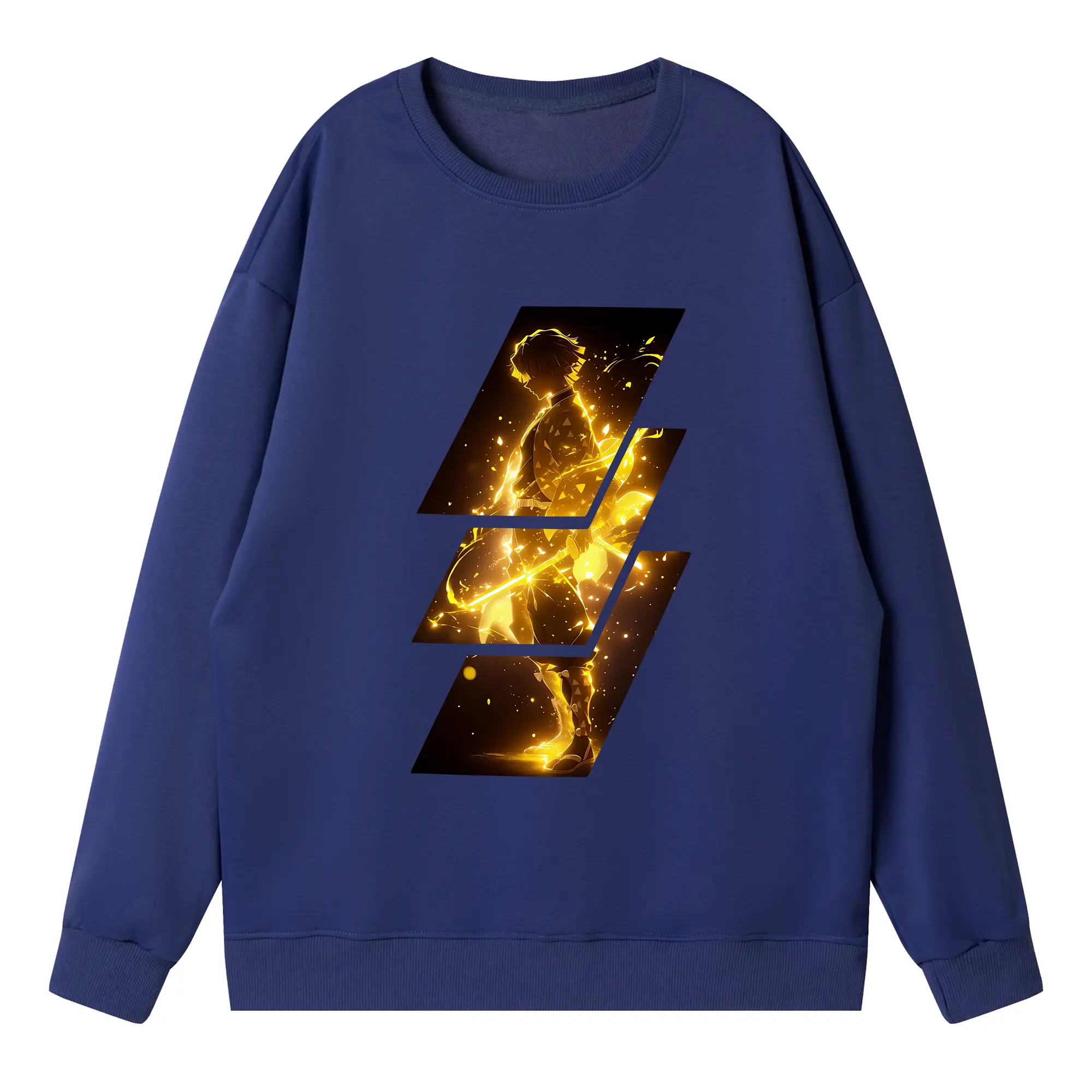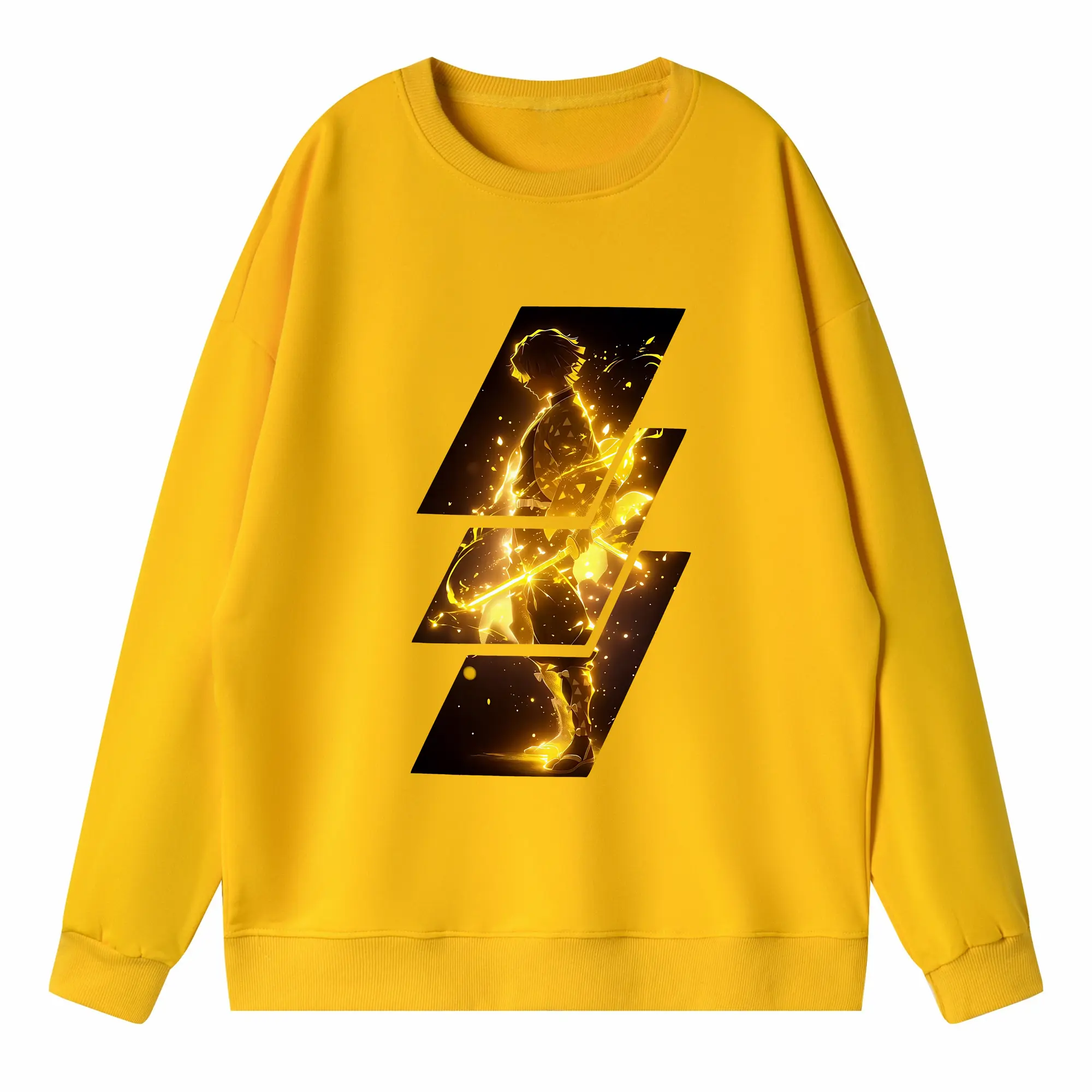 鬼滅の刃 グッズ,我妻 善逸 - 高品質 クルーネック スウェット ・ コットン59% ポリエステル41% ・ ユニセックス 長袖 トレーナー ・ カジュアル デイリー スポーツ 散歩用