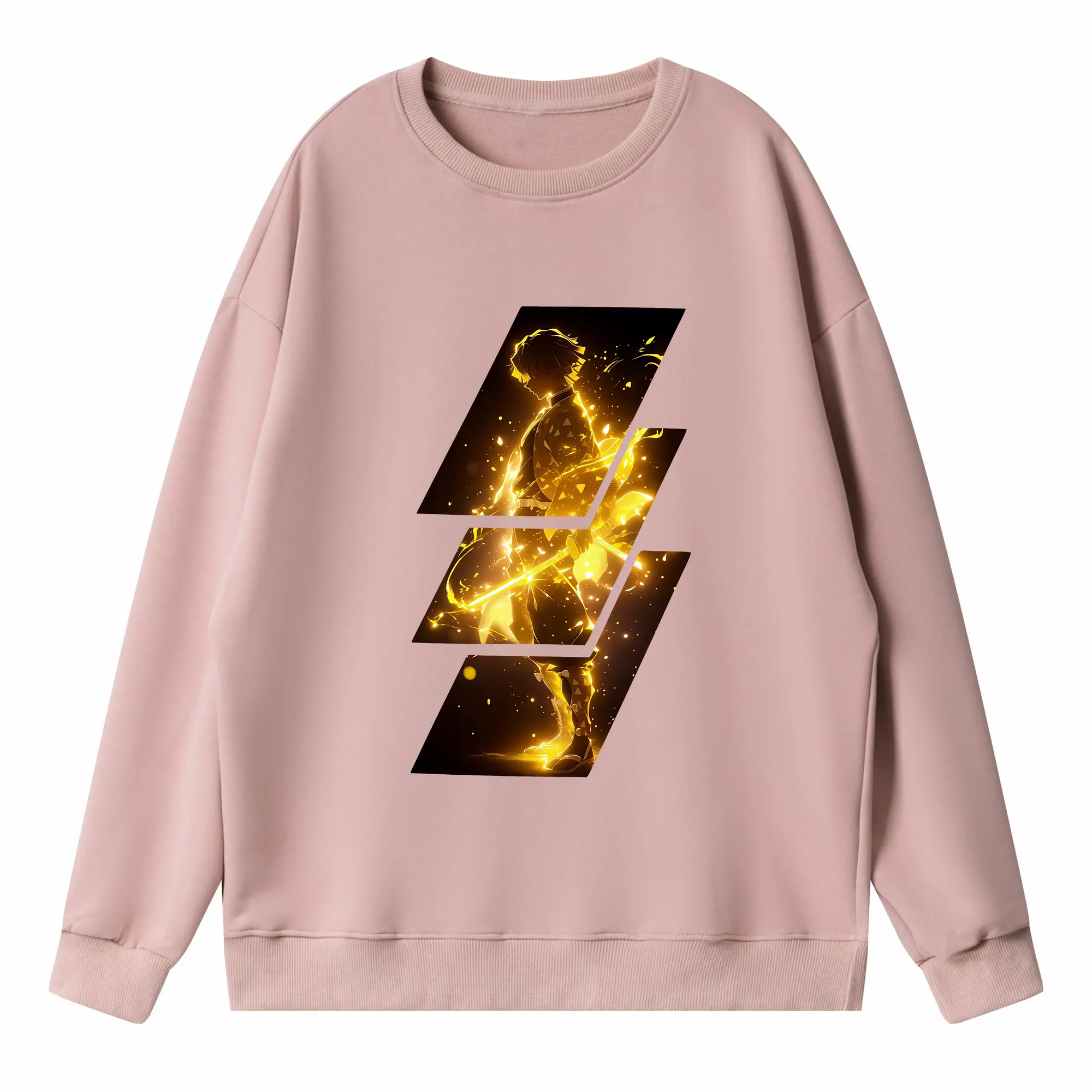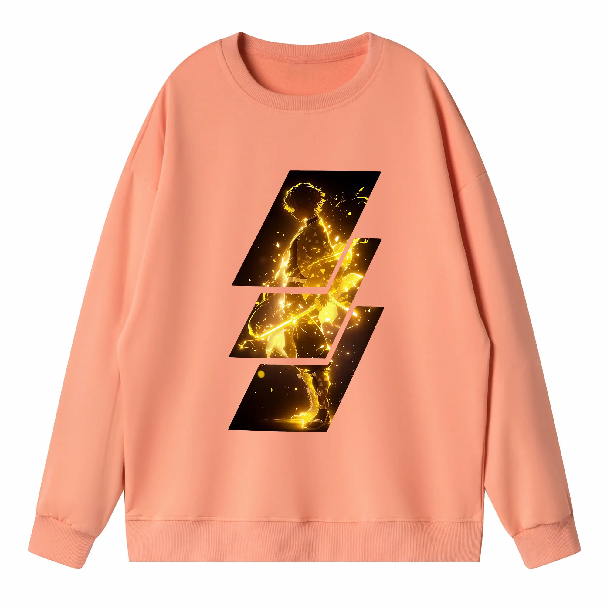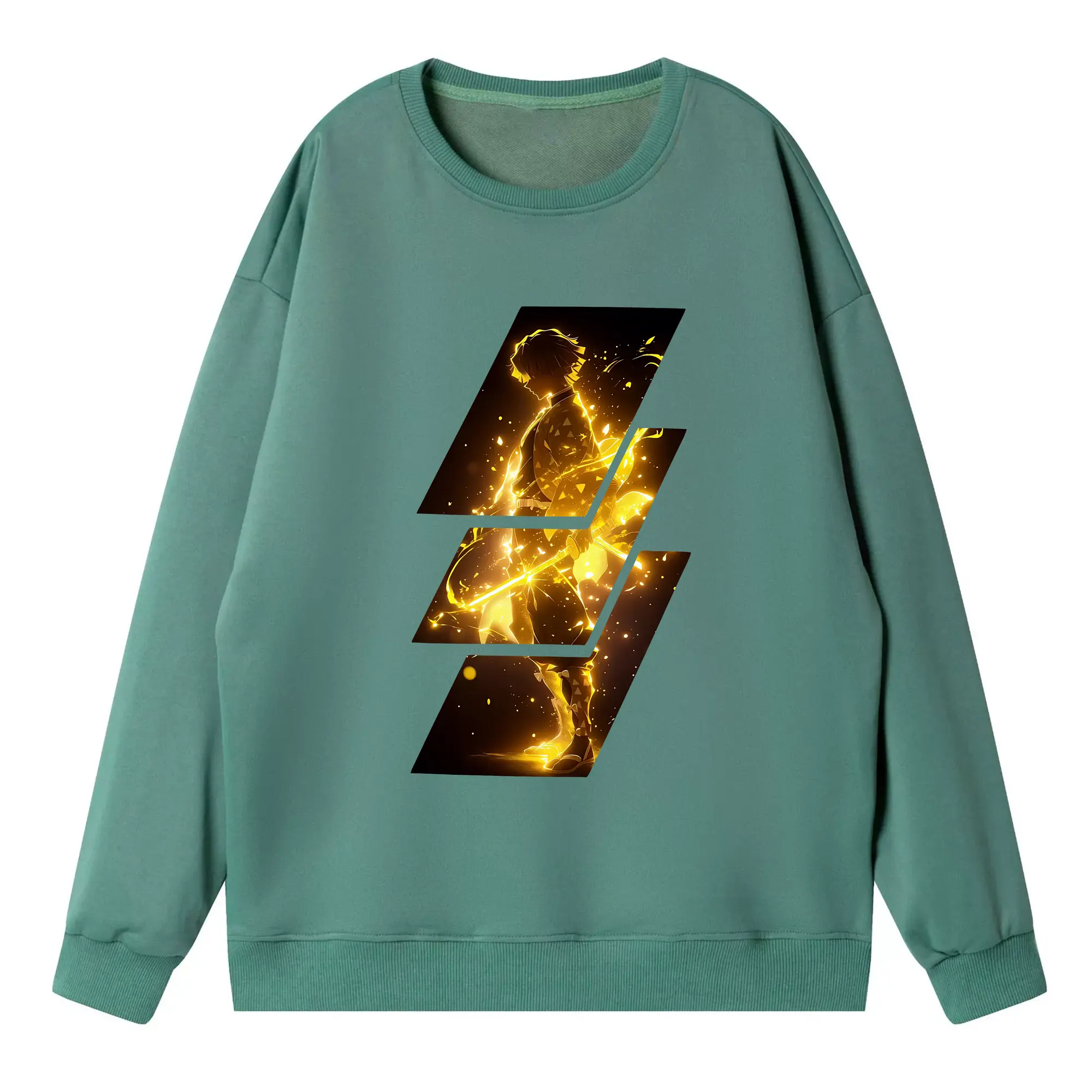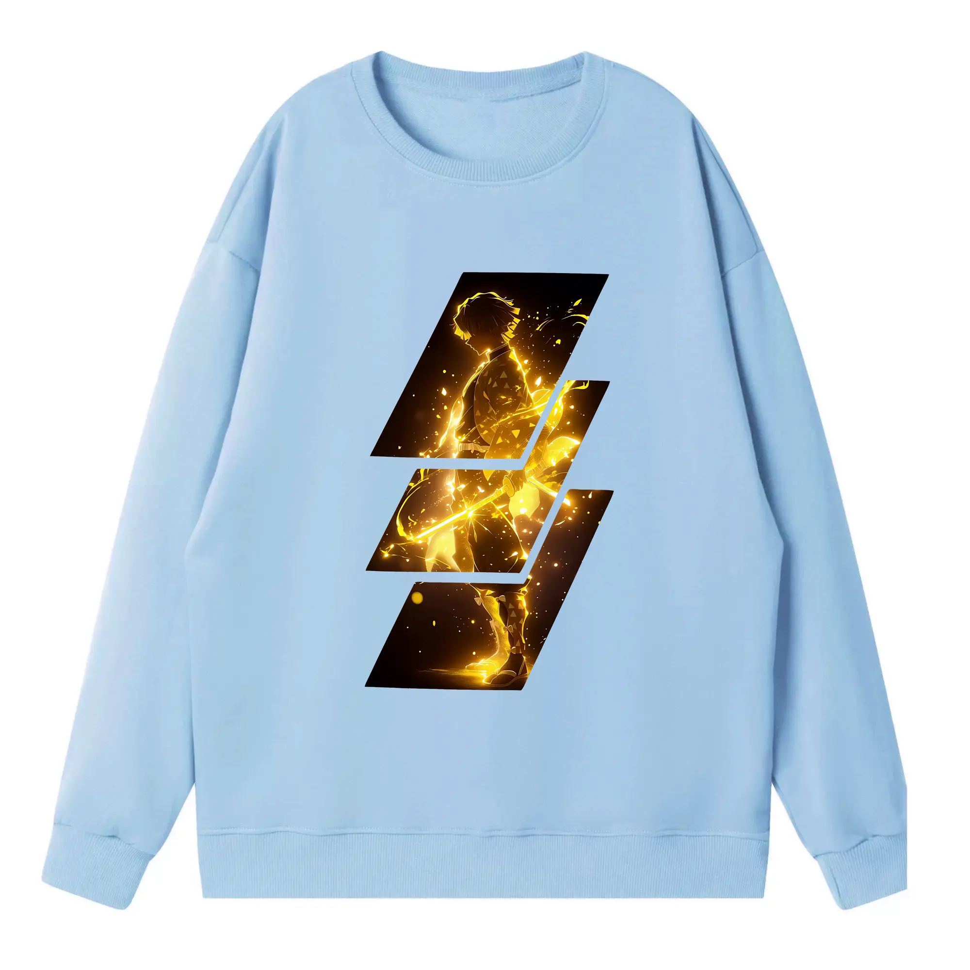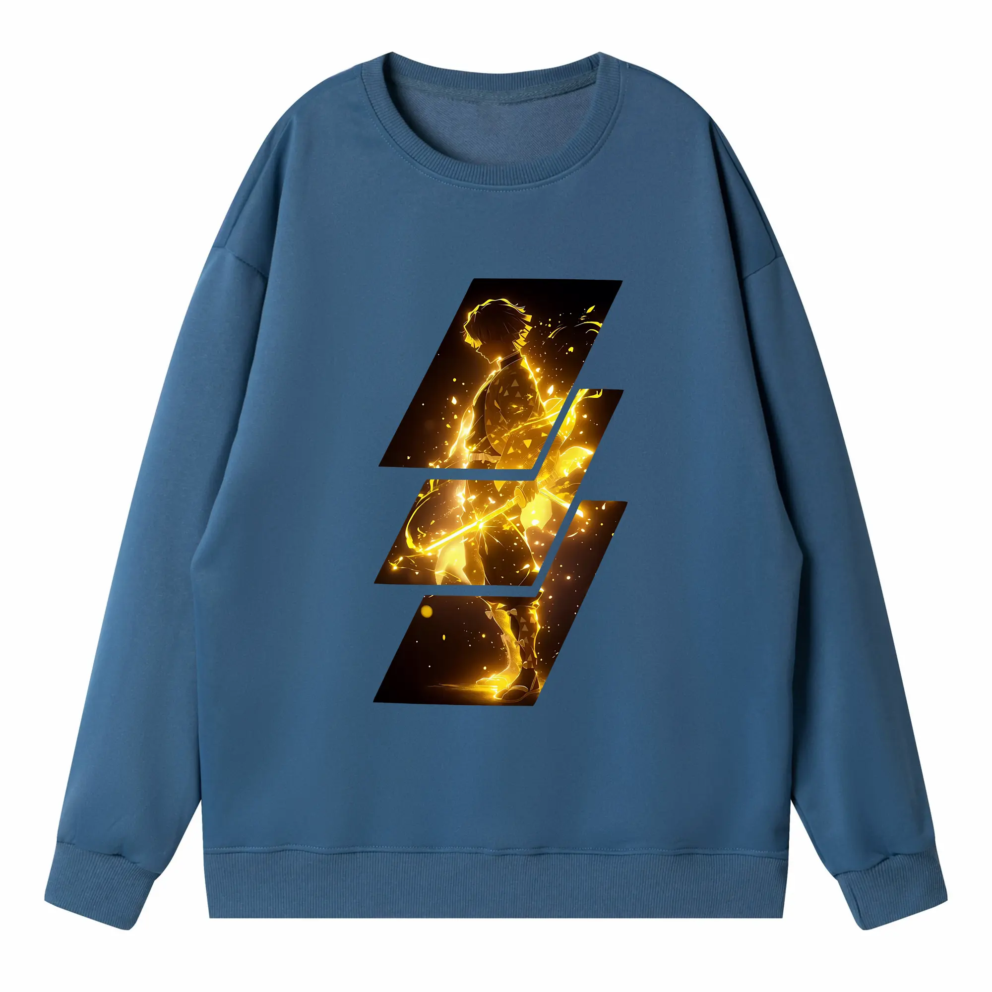 鬼滅の刃 グッズ,我妻 善逸 - 高品質 クルーネック スウェット ・ コットン59% ポリエステル41% ・ ユニセックス 長袖 トレーナー ・ カジュアル デイリー スポーツ 散歩用