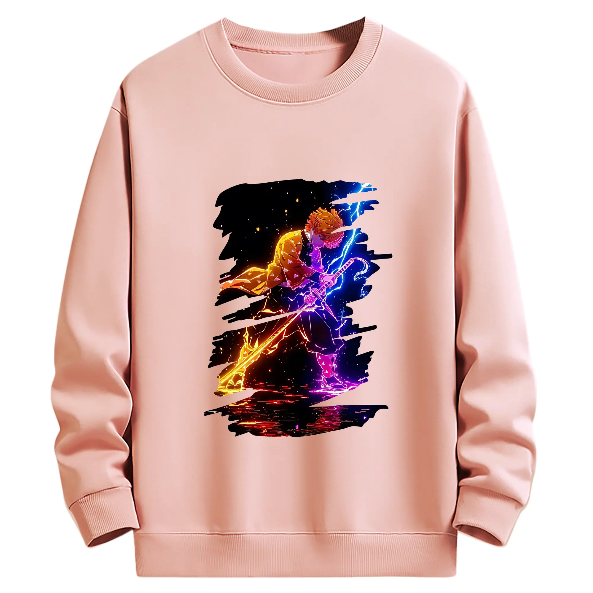 鬼滅の刃 グッズ,我妻 善逸 - 高品質 クルーネック スウェット ・ コットン59% ポリエステル41% ・ ユニセックス 長袖 トレーナー ・ カジュアル デイリー スポーツ 散歩用