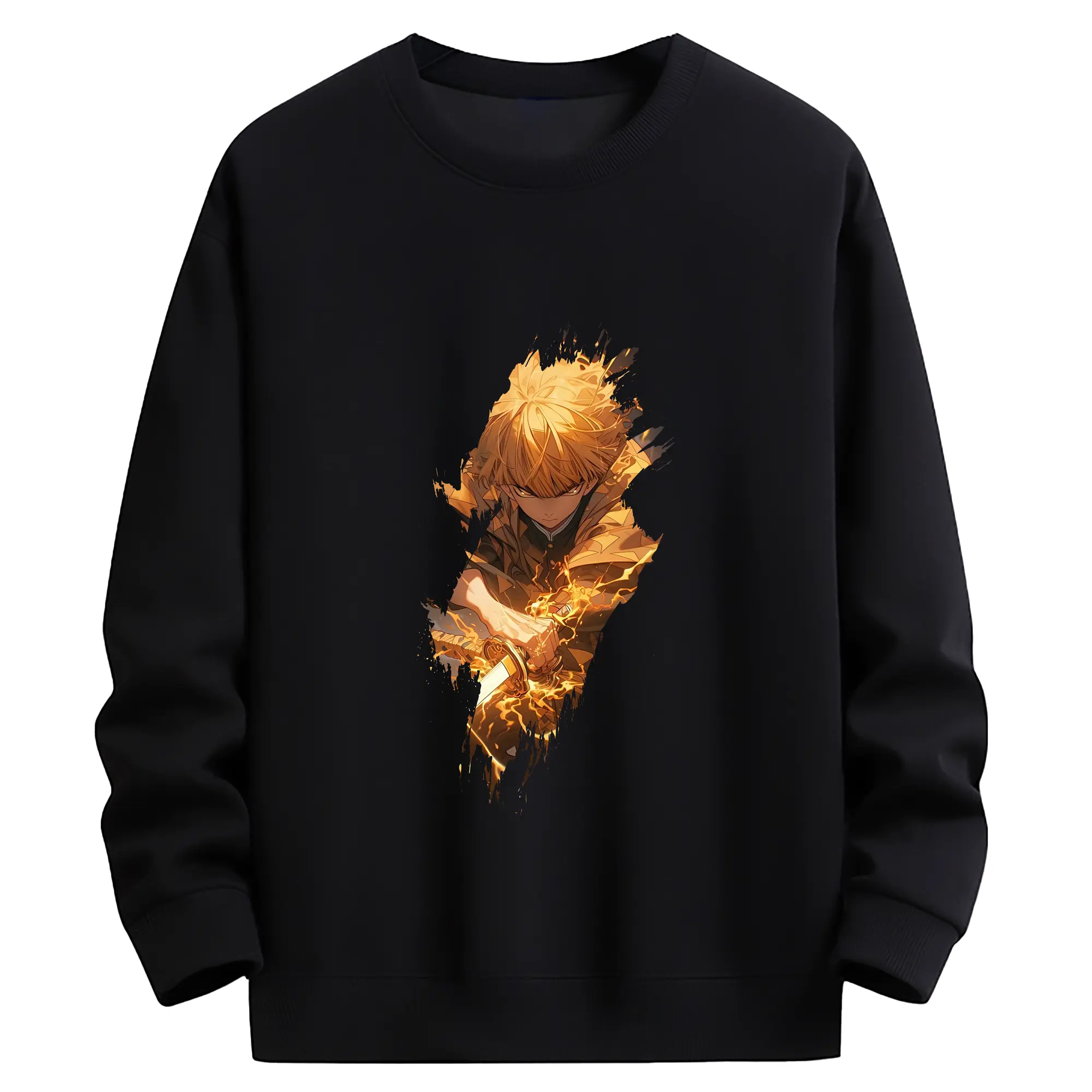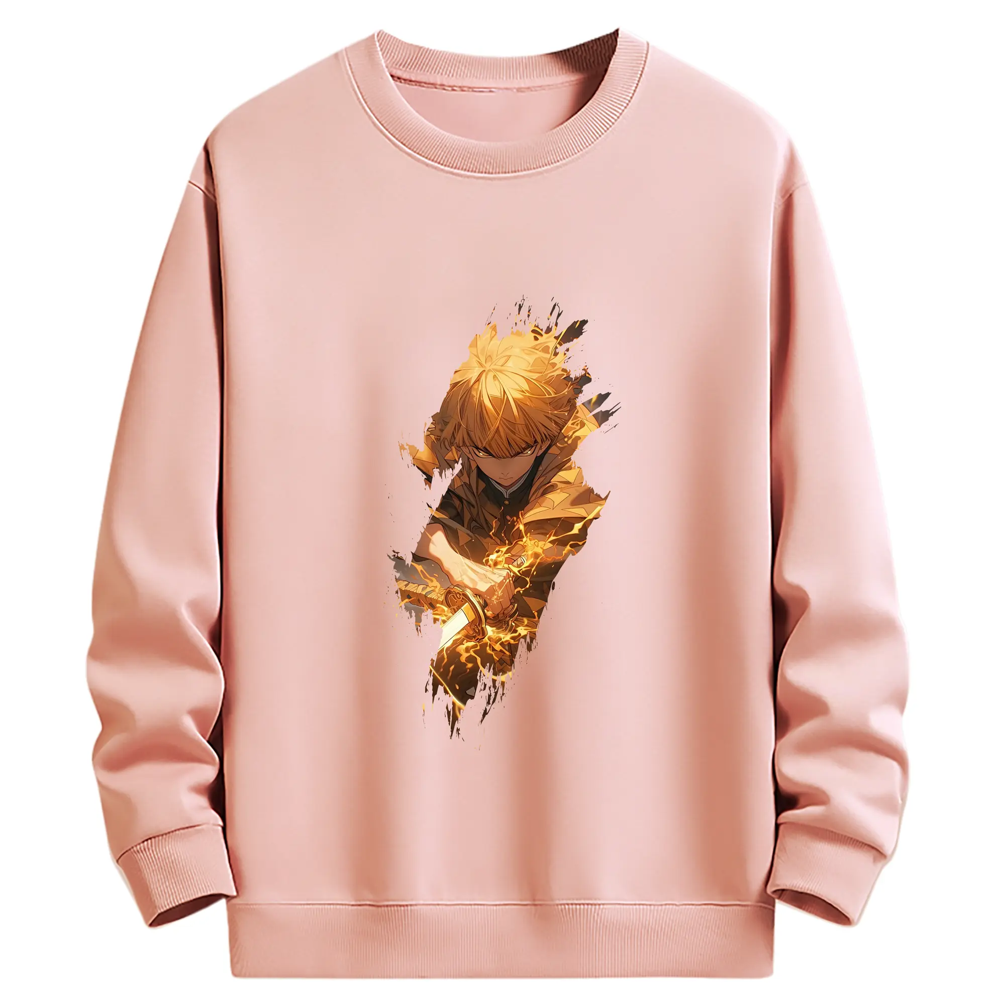 鬼滅の刃 グッズ,我妻 善逸 - 高品質 クルーネック スウェット ・ コットン59% ポリエステル41% ・ ユニセックス 長袖 トレーナー ・ カジュアル デイリー スポーツ 散歩用