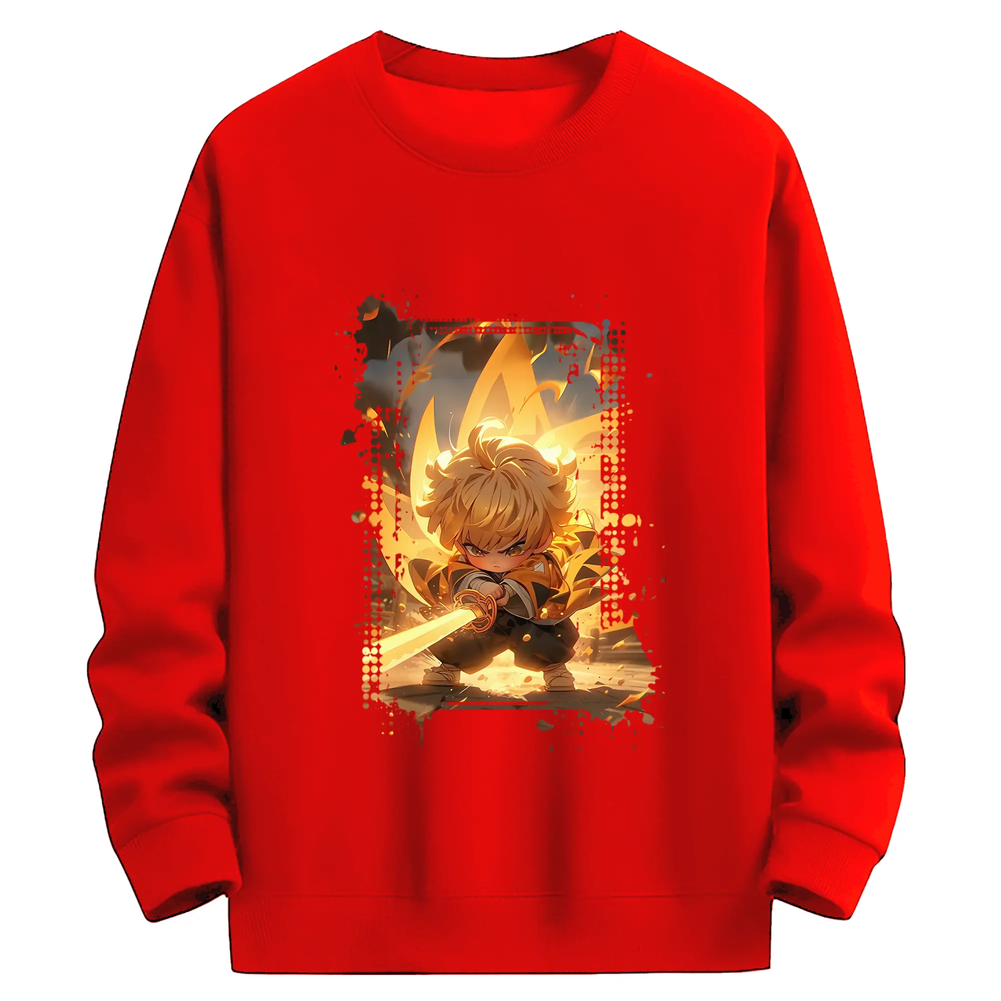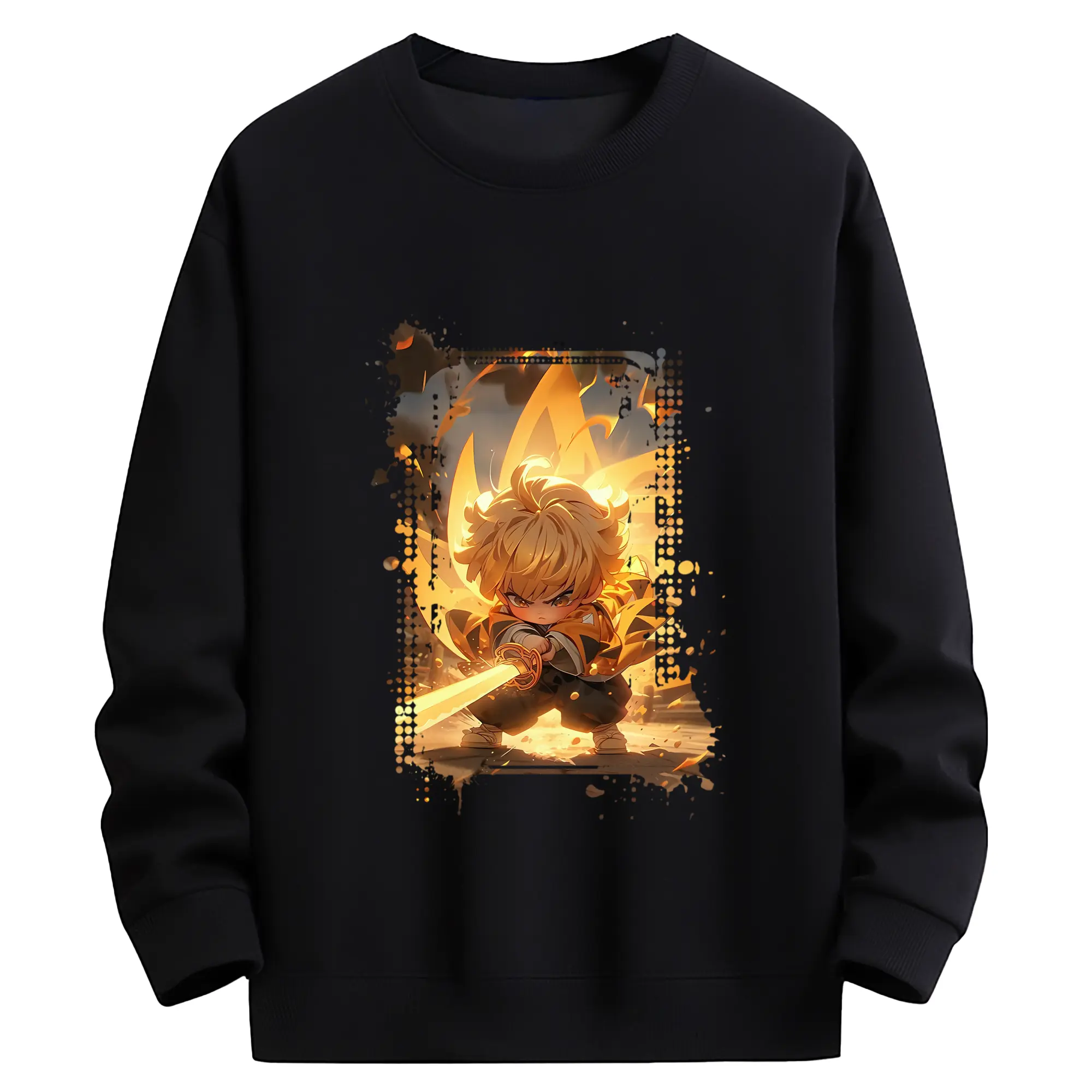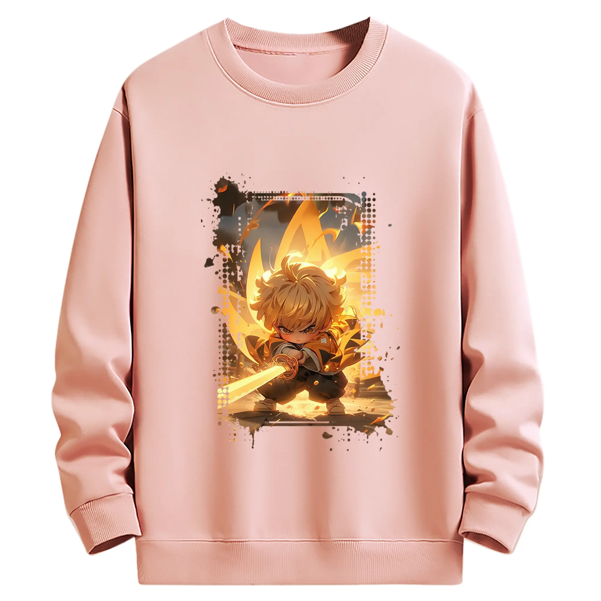鬼滅の刃 グッズ,我妻 善逸 - 高品質 クルーネック スウェット ・ コットン59% ポリエステル41% ・ ユニセックス 長袖 トレーナー ・ カジュアル デイリー スポーツ 散歩用