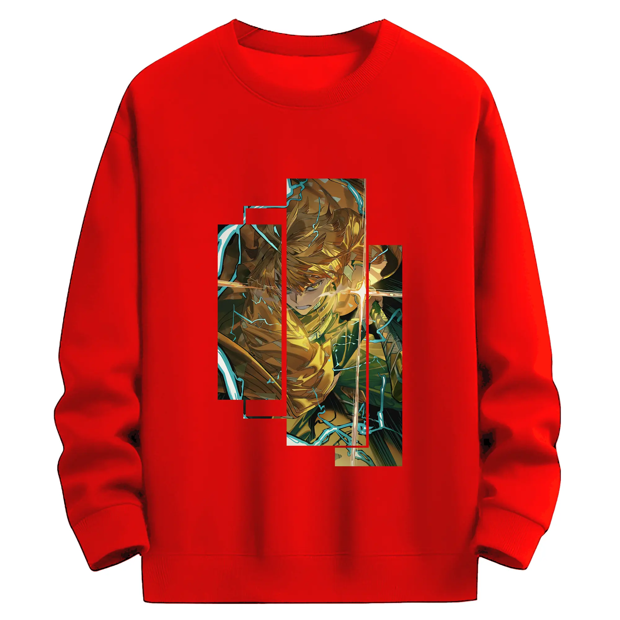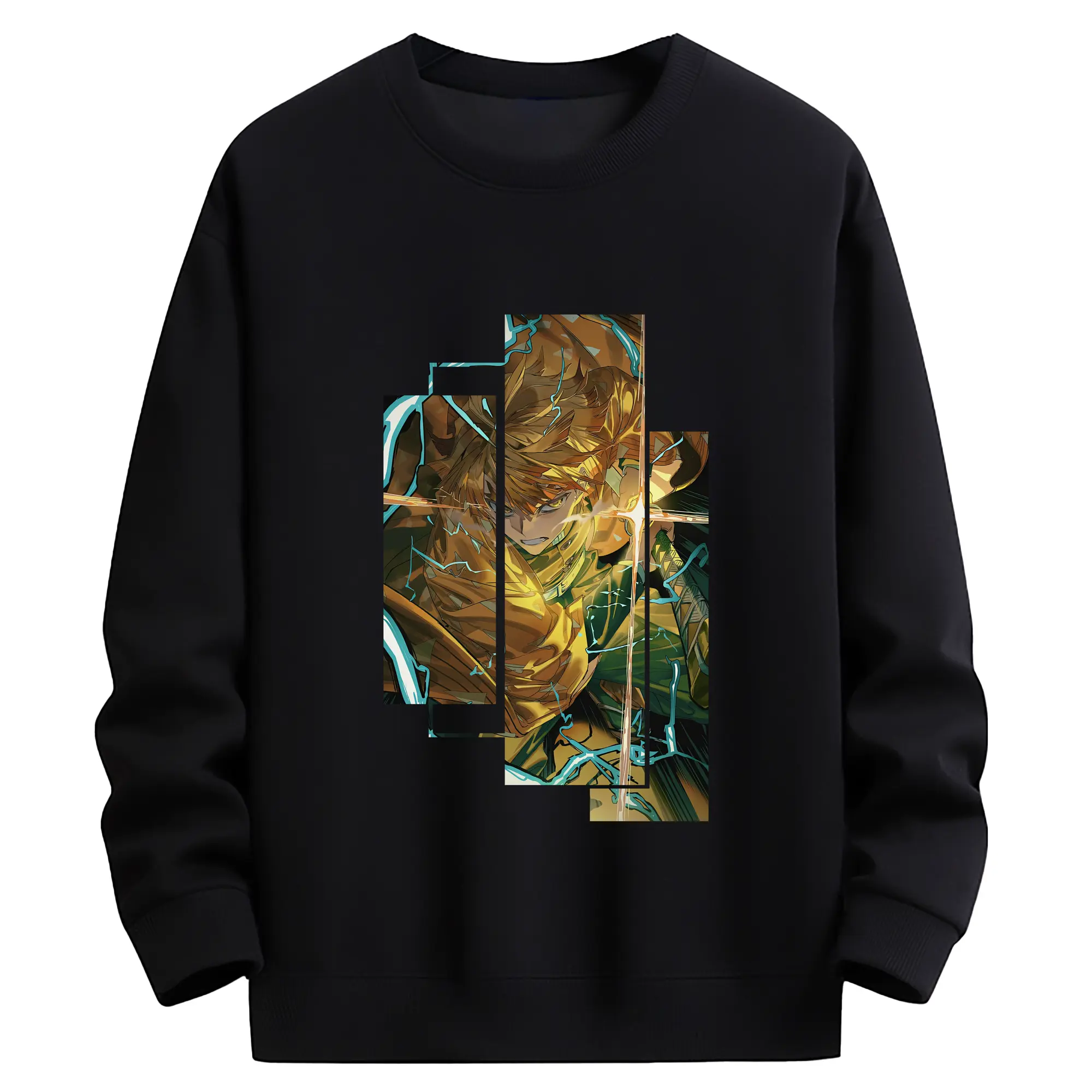 鬼滅の刃 グッズ,我妻 善逸 - 高品質 クルーネック スウェット ・ コットン59% ポリエステル41% ・ ユニセックス 長袖 トレーナー ・ カジュアル デイリー スポーツ 散歩用