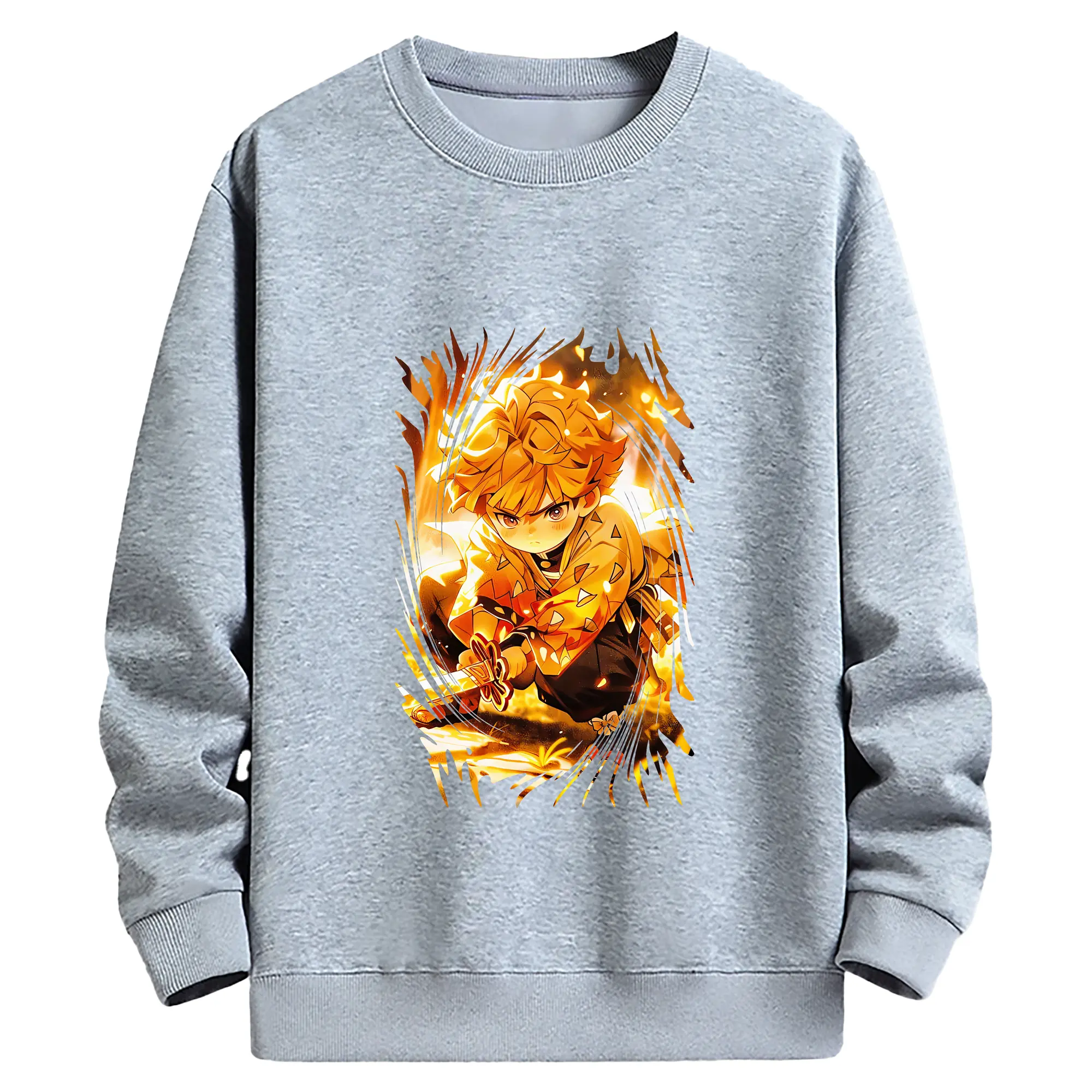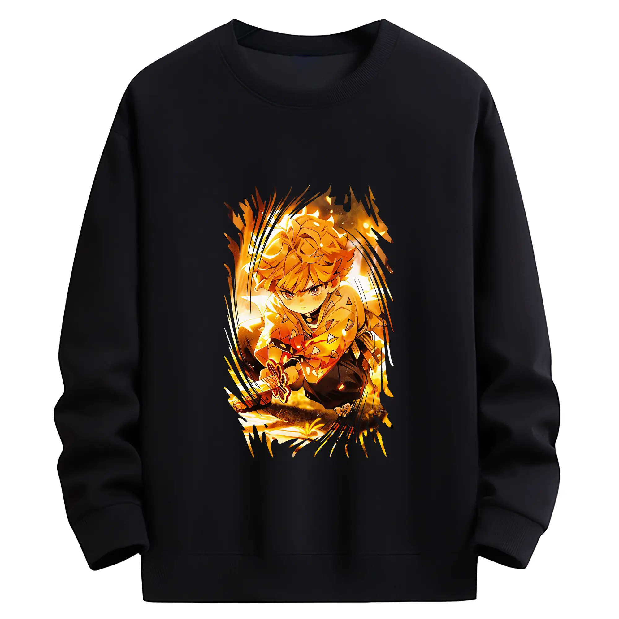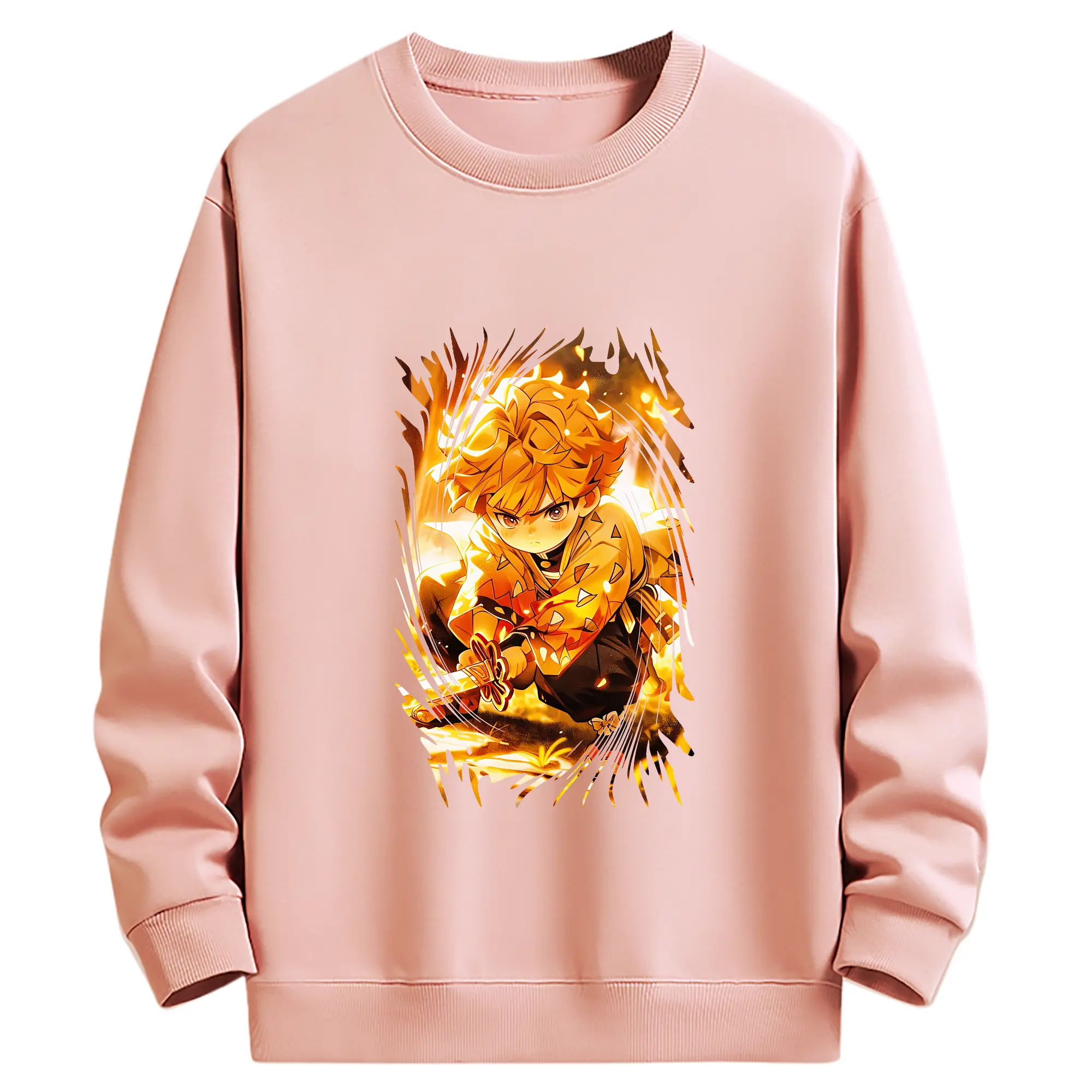 鬼滅の刃 グッズ,我妻 善逸 - 高品質 クルーネック スウェット ・ コットン59% ポリエステル41% ・ ユニセックス 長袖 トレーナー ・ カジュアル デイリー スポーツ 散歩用