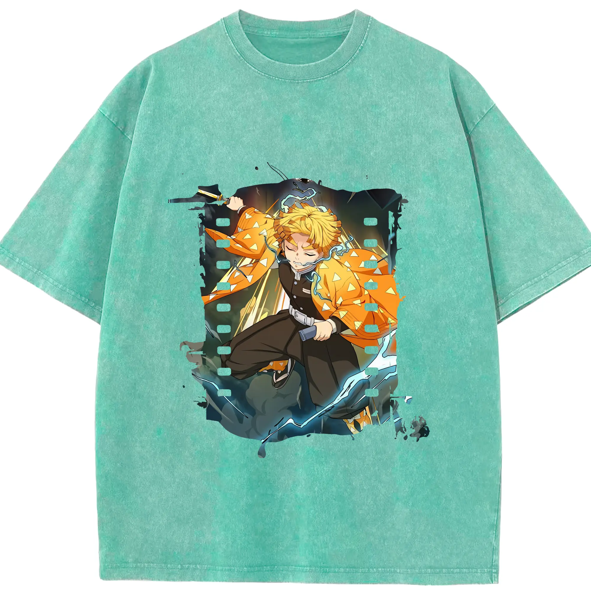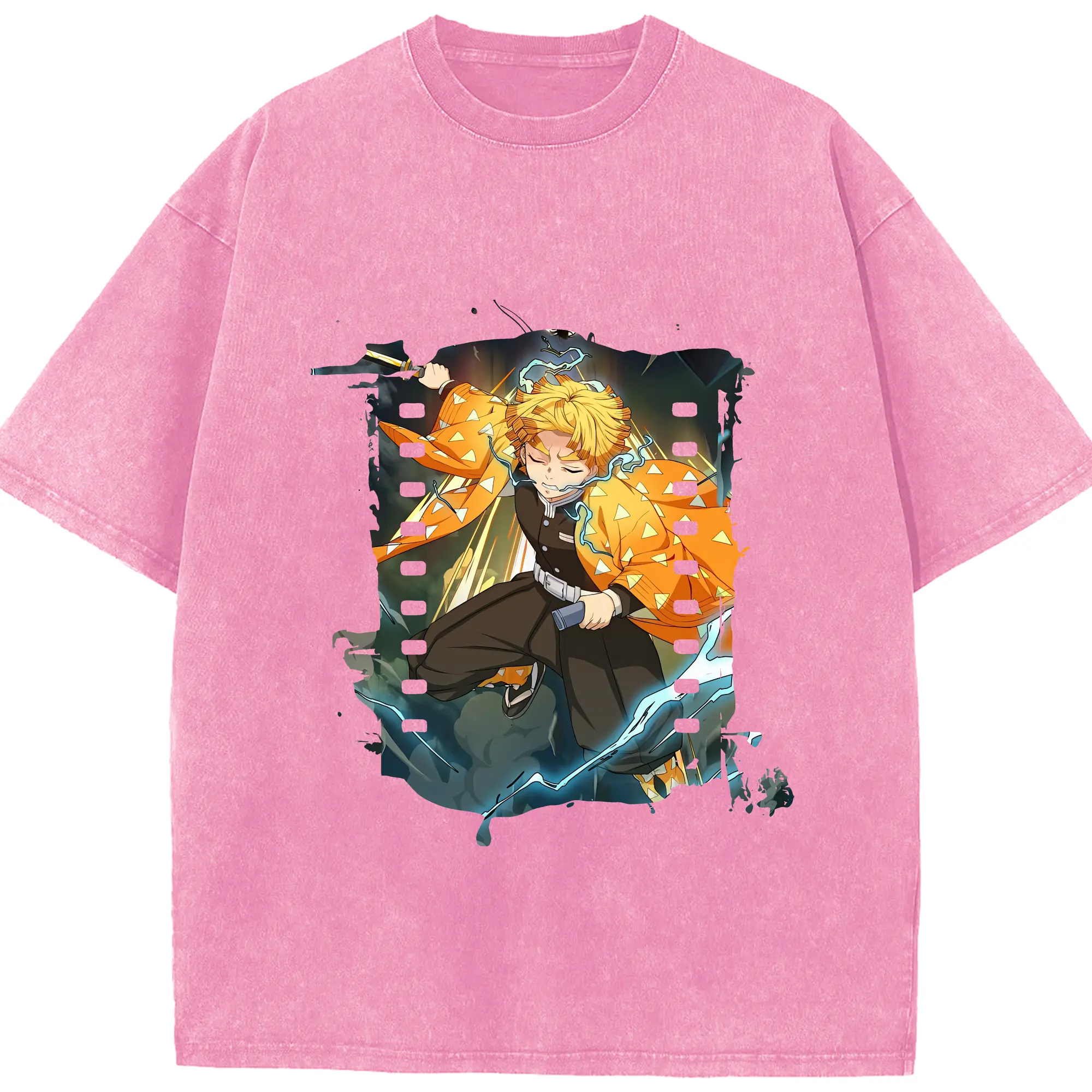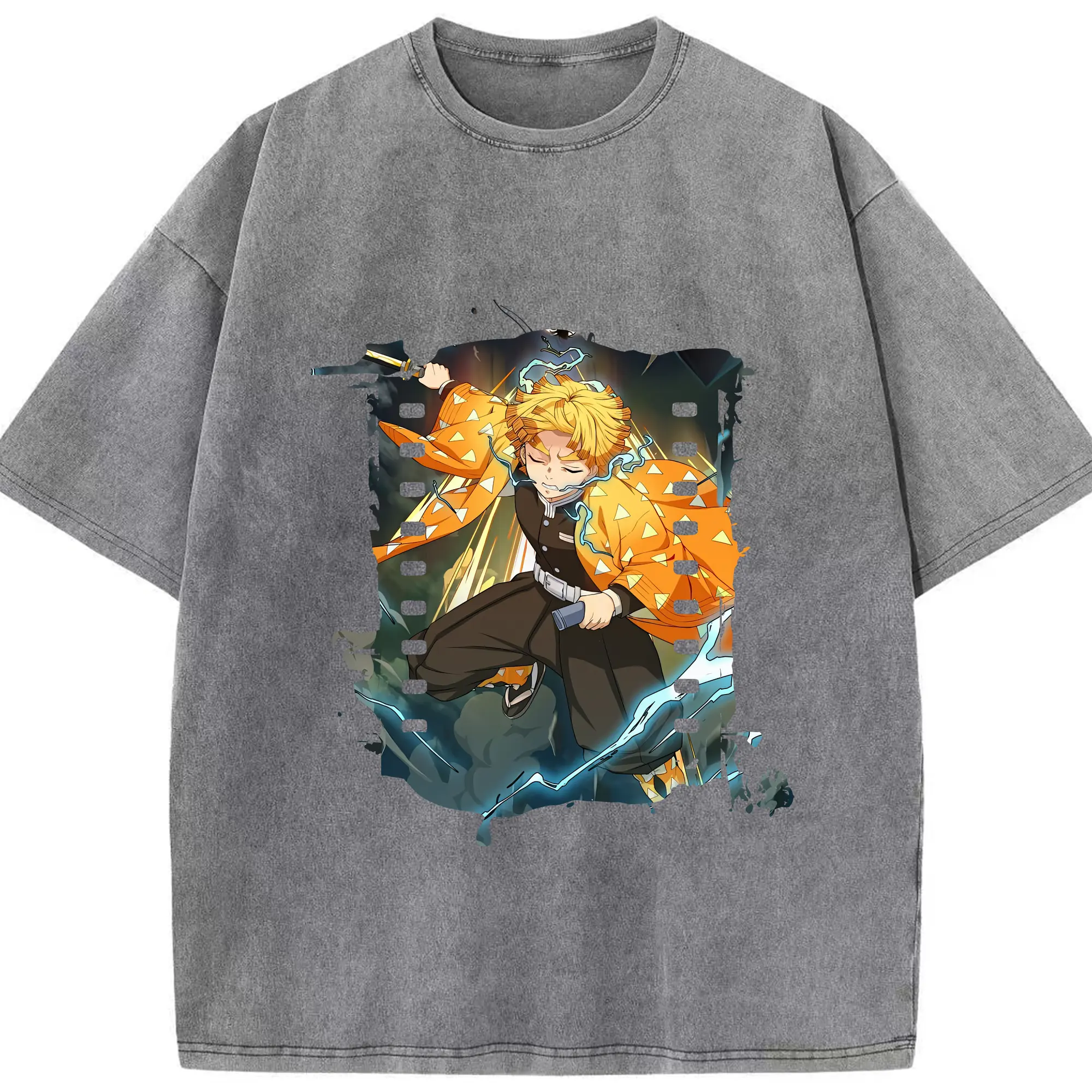 鬼滅の刃 グッズ,我妻 善逸 - 綿100% 半袖Tシャツ ・ フロントプリント ・ 快適 通気性 ・ 日常使い 散歩 スポーツ用