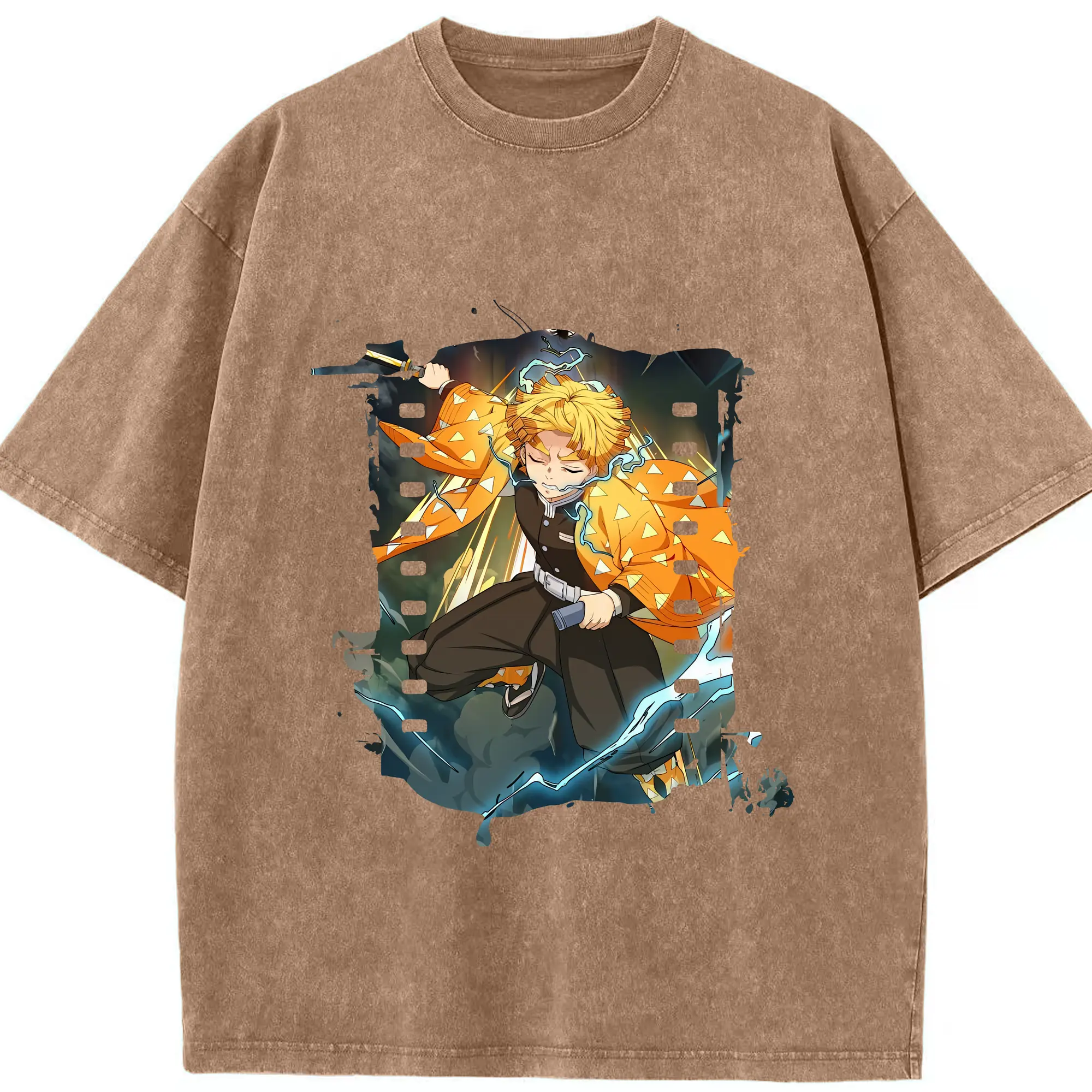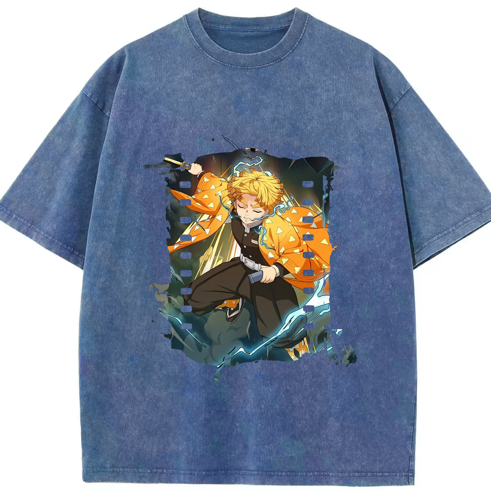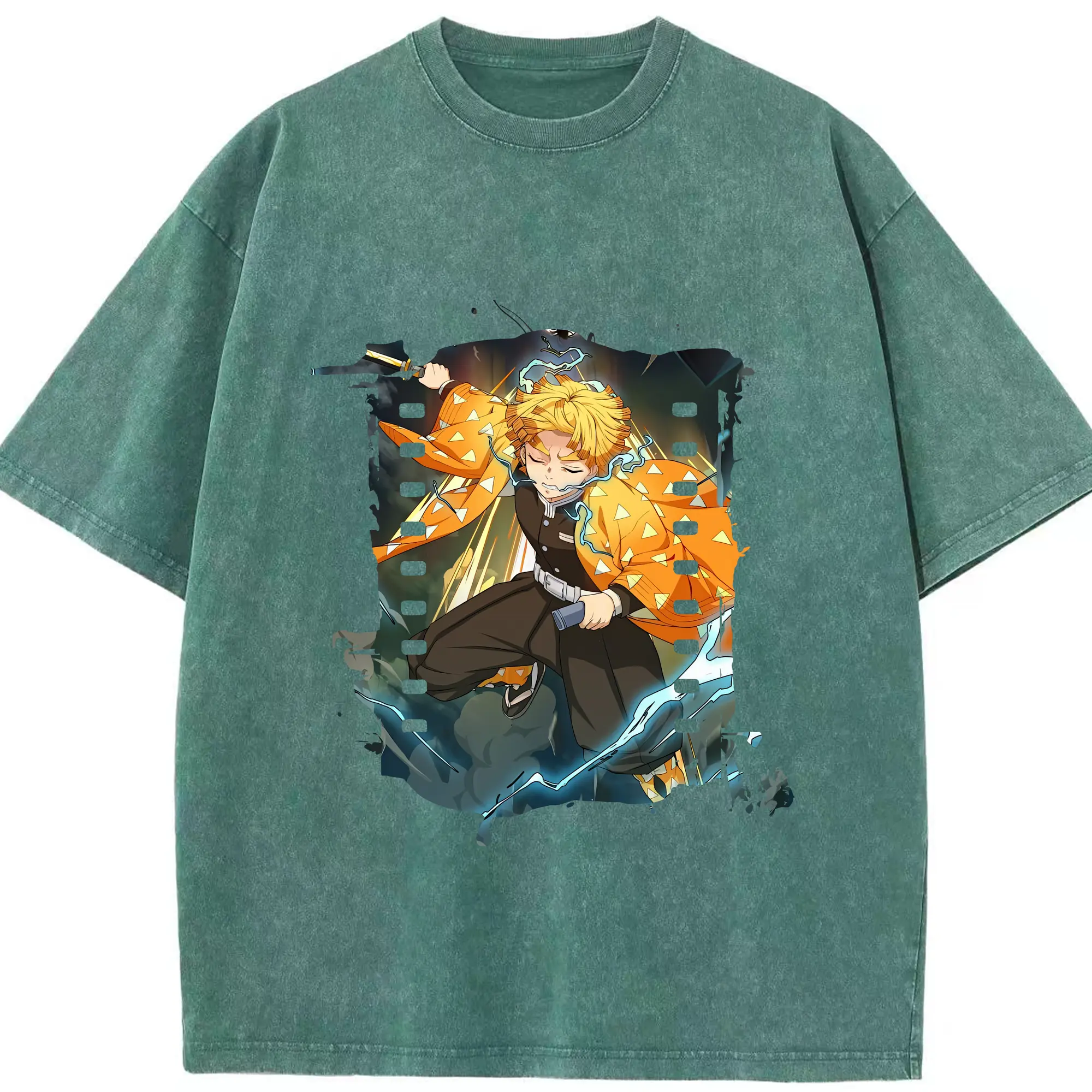 鬼滅の刃 グッズ,我妻 善逸 - 綿100% 半袖Tシャツ ・ フロントプリント ・ 快適 通気性 ・ 日常使い 散歩 スポーツ用