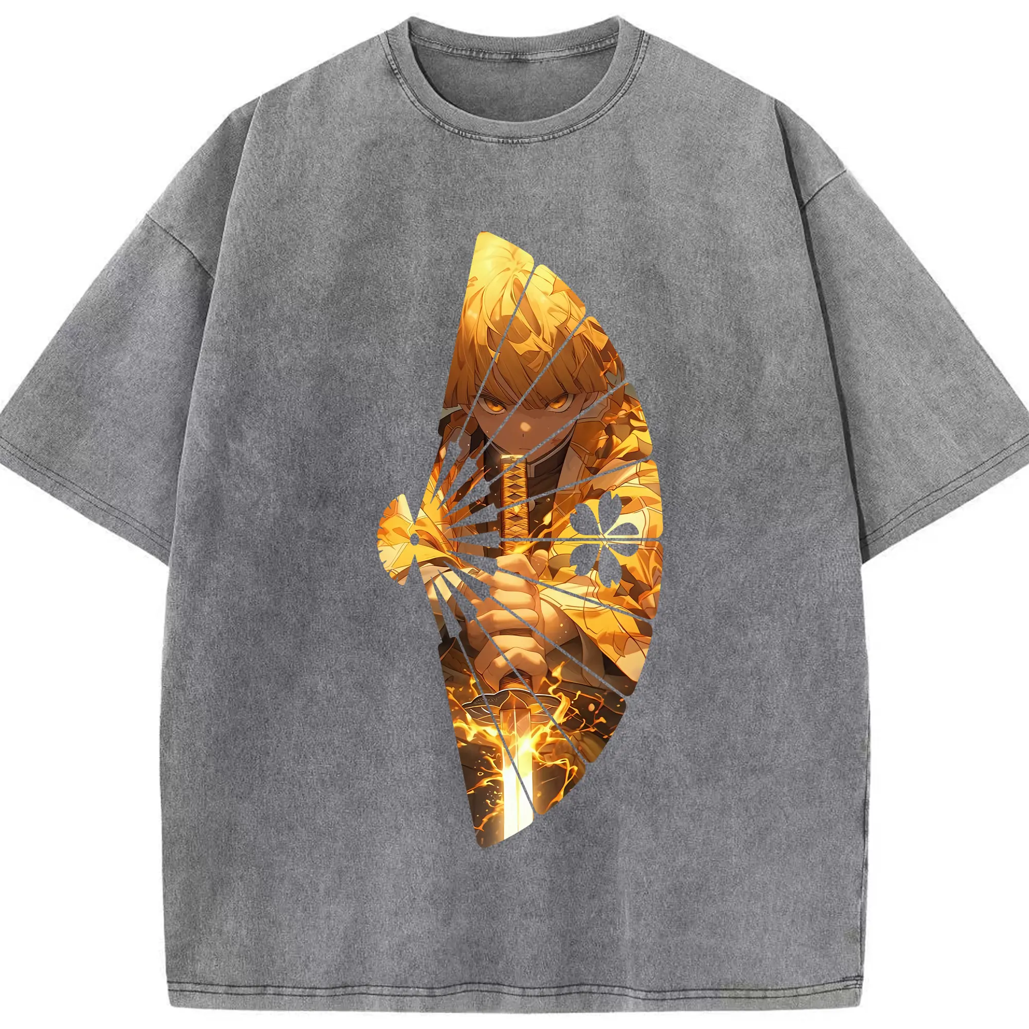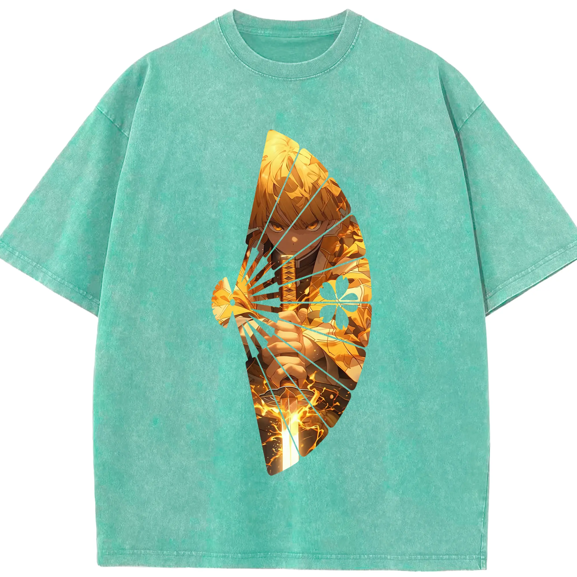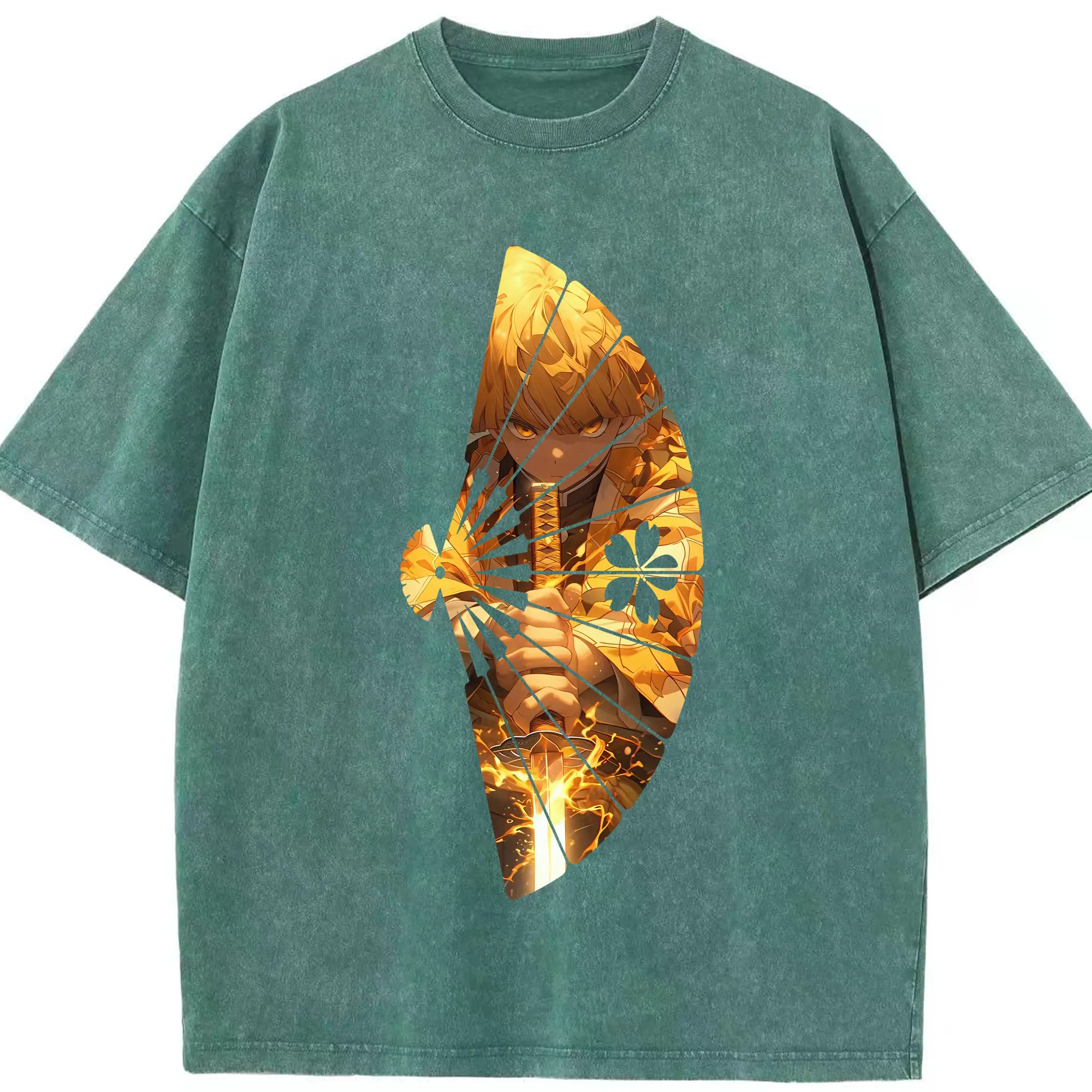 鬼滅の刃 グッズ,我妻 善逸 - 綿100% 半袖Tシャツ ・ フロントプリント ・ 快適 通気性 ・ 日常使い 散歩 スポーツ用