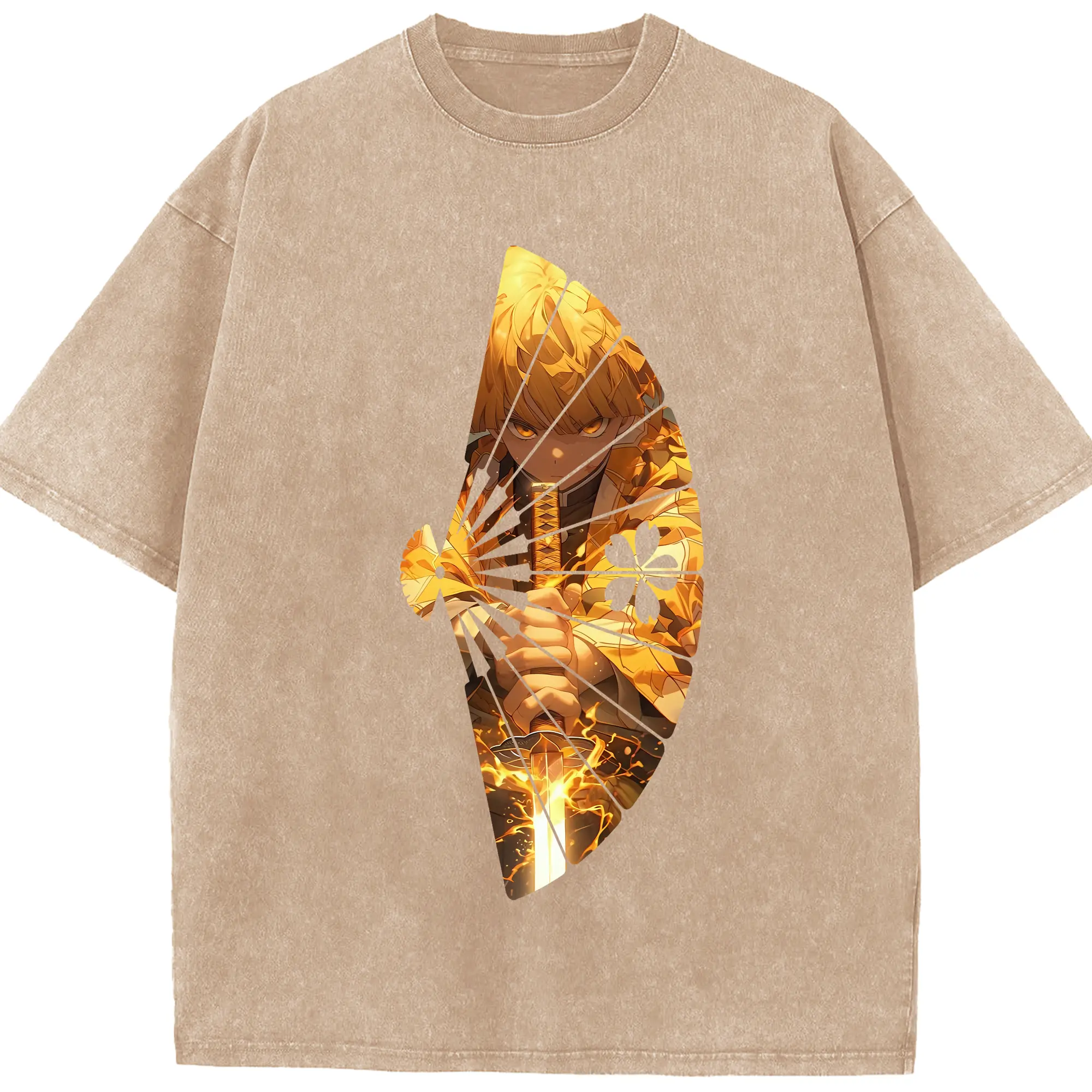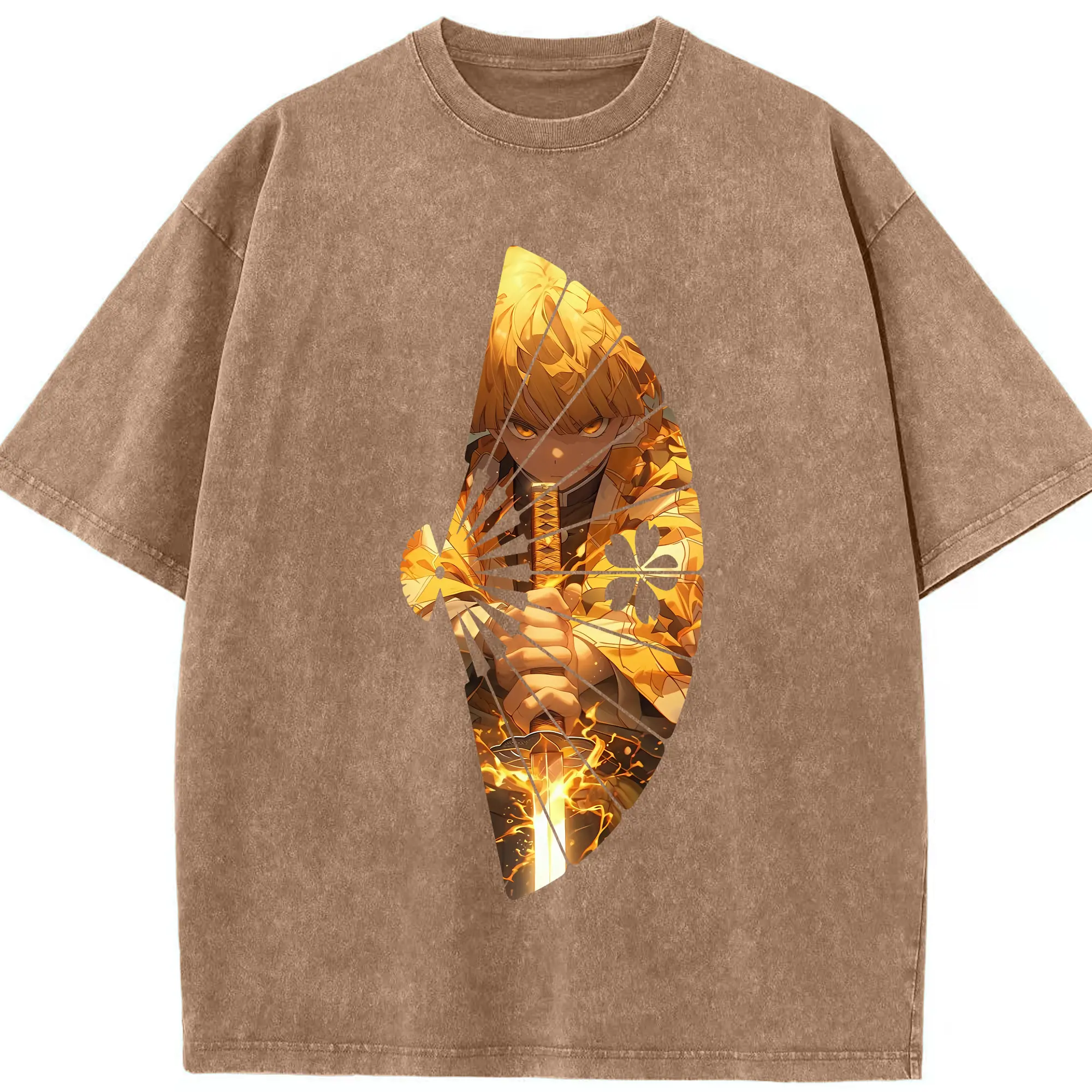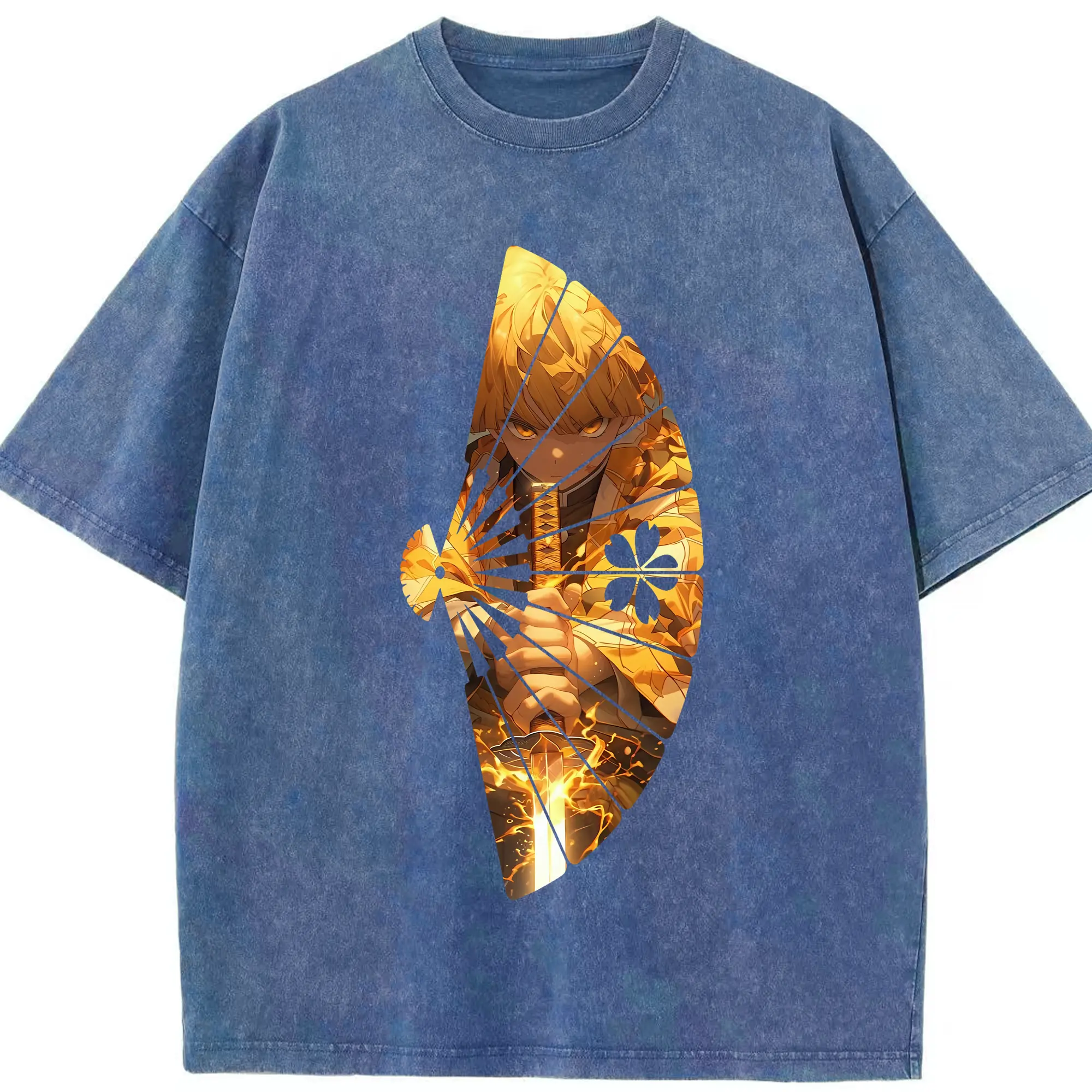 鬼滅の刃 グッズ,我妻 善逸 - 綿100% 半袖Tシャツ ・ フロントプリント ・ 快適 通気性 ・ 日常使い 散歩 スポーツ用