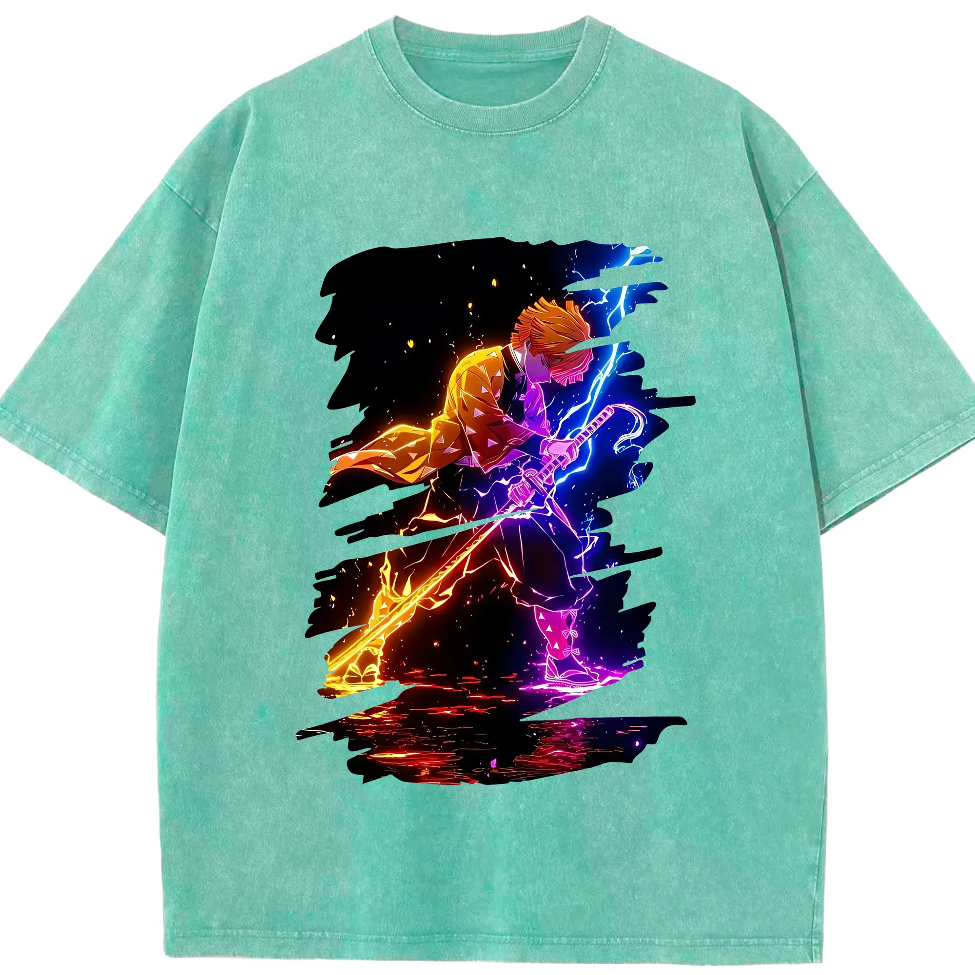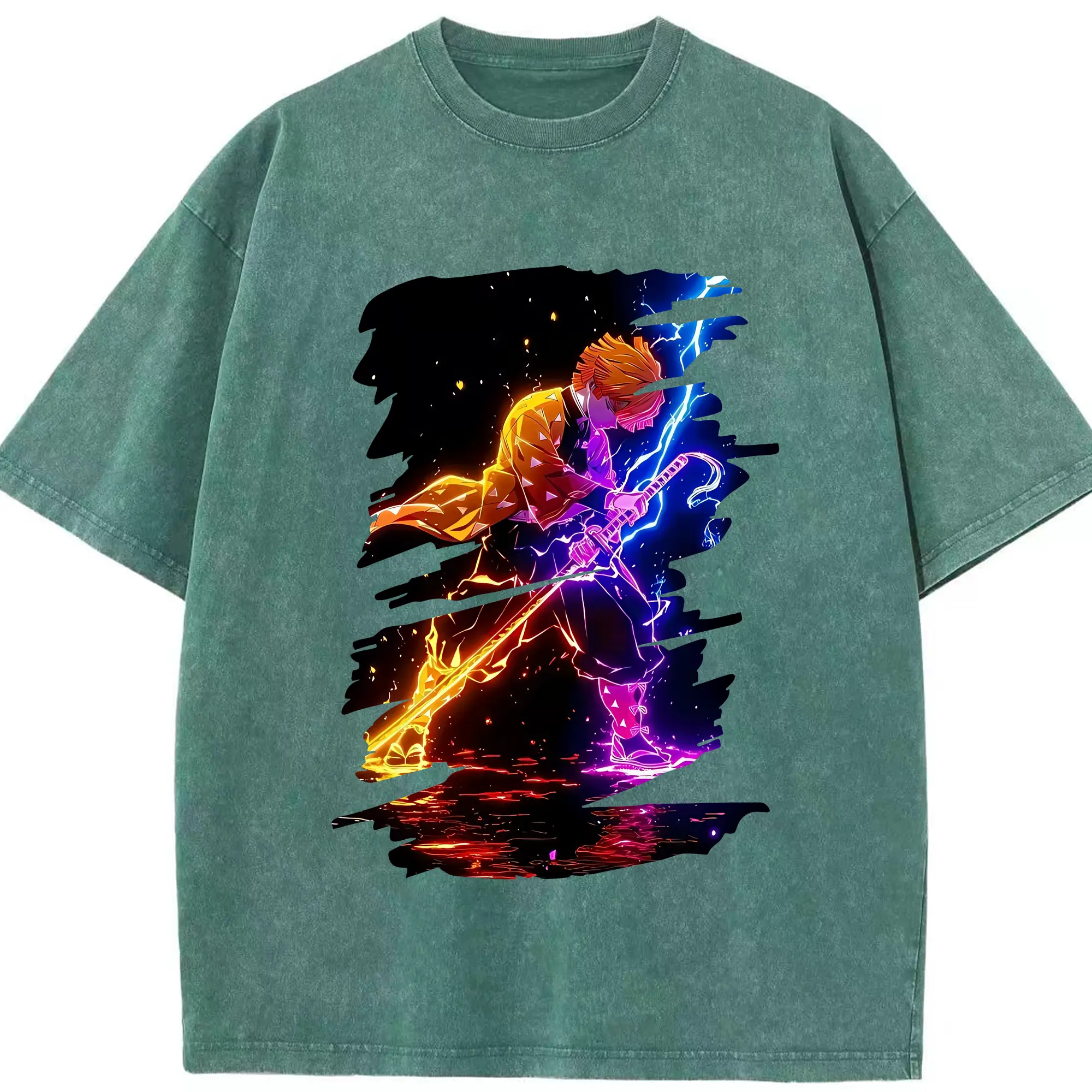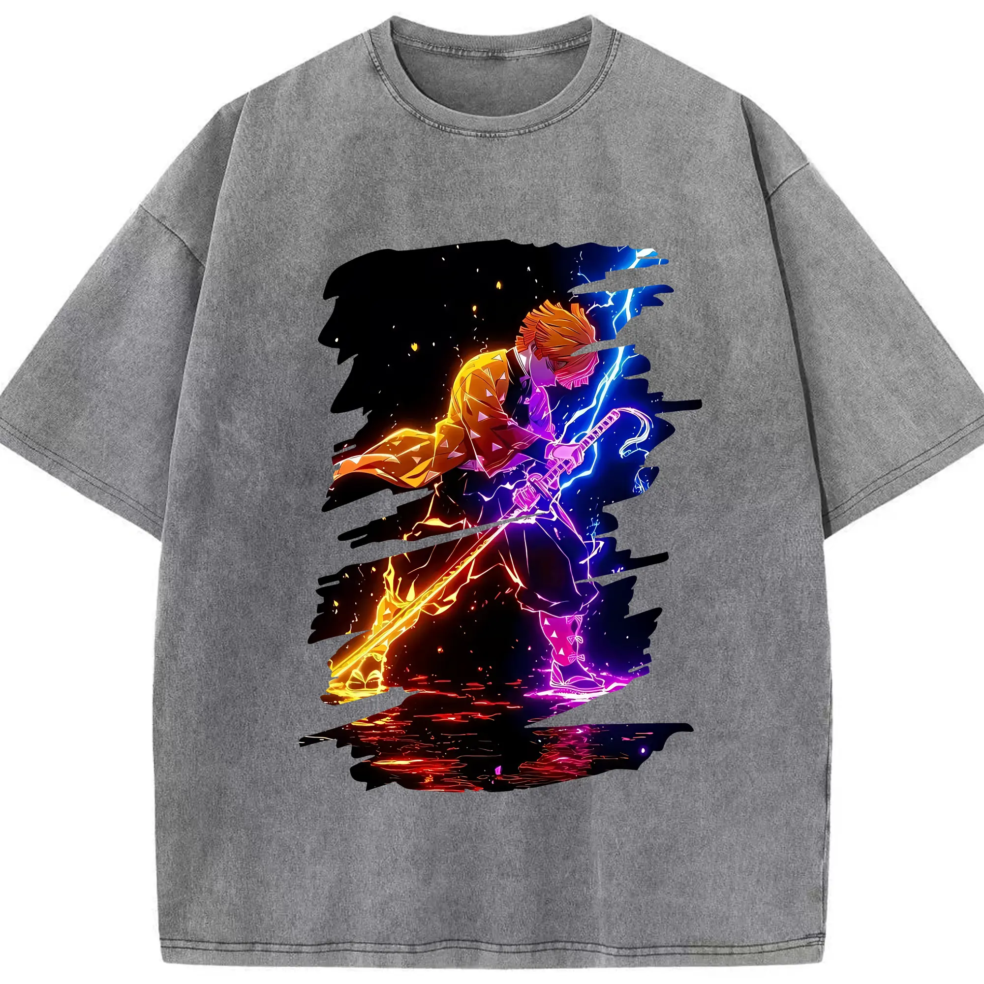 鬼滅の刃 グッズ,我妻 善逸 - 綿100% 半袖Tシャツ ・ フロントプリント ・ 快適 通気性 ・ 日常使い 散歩 スポーツ用