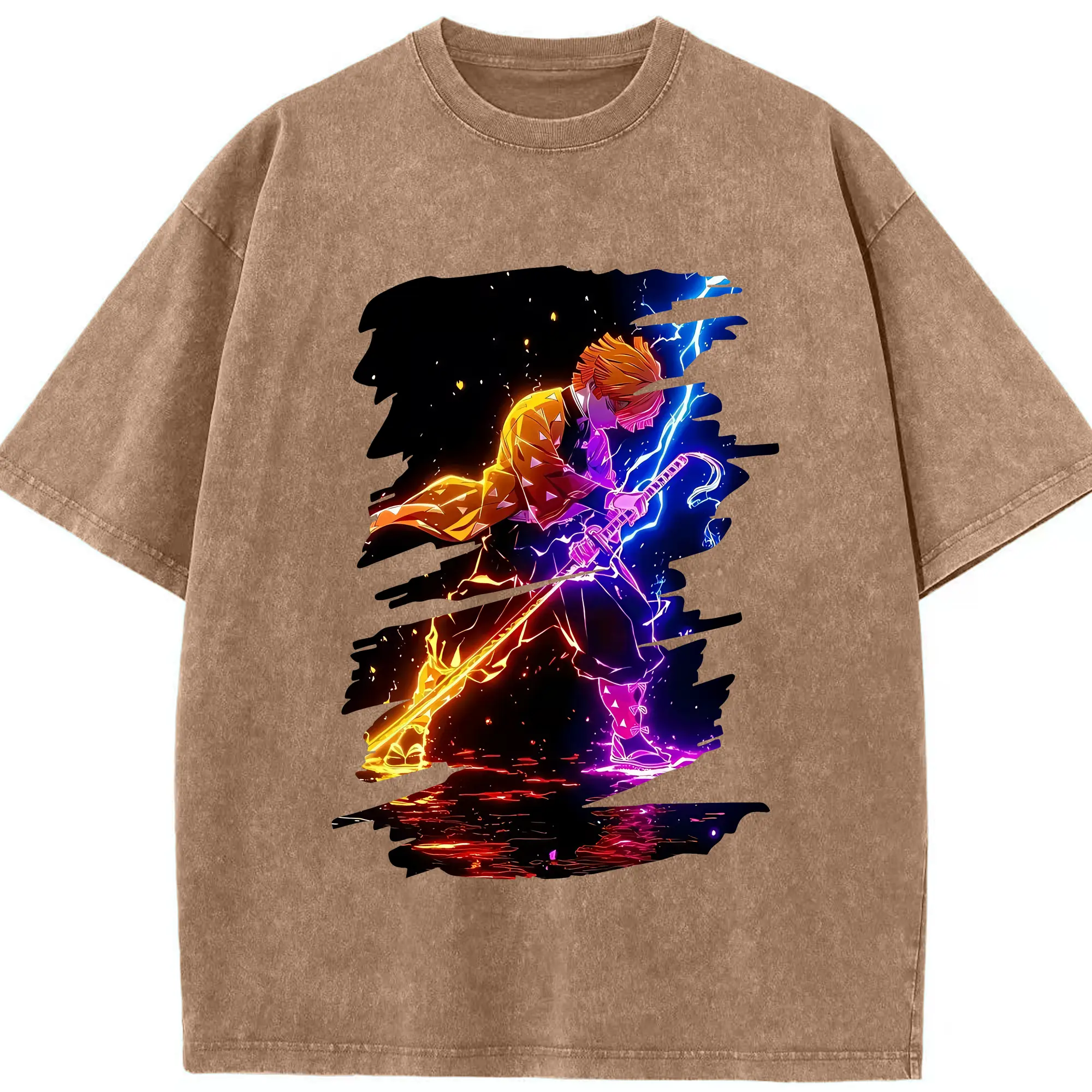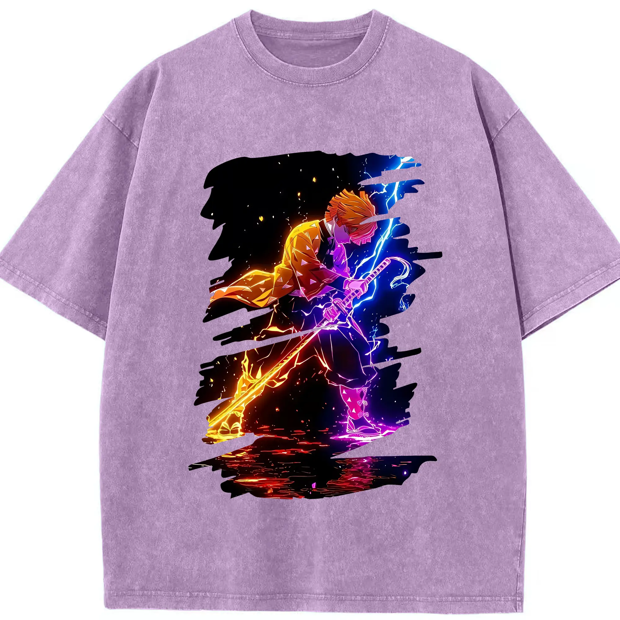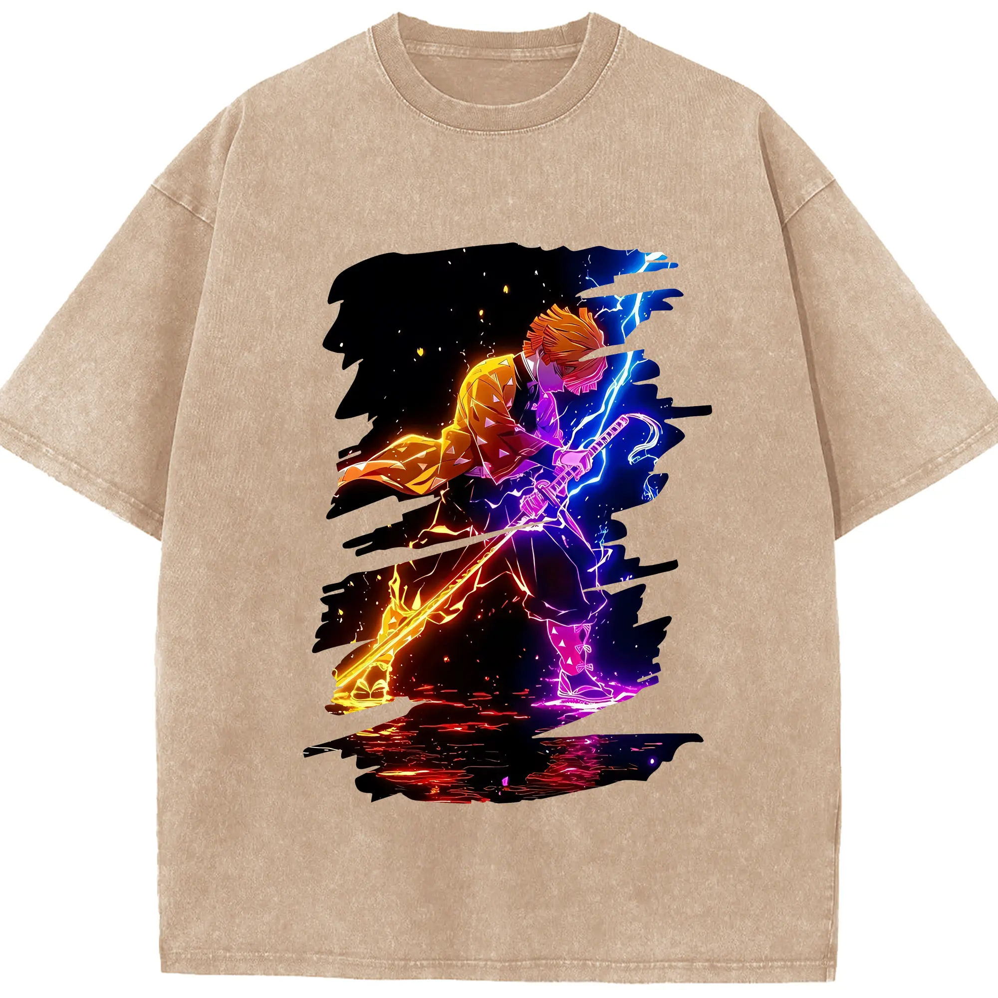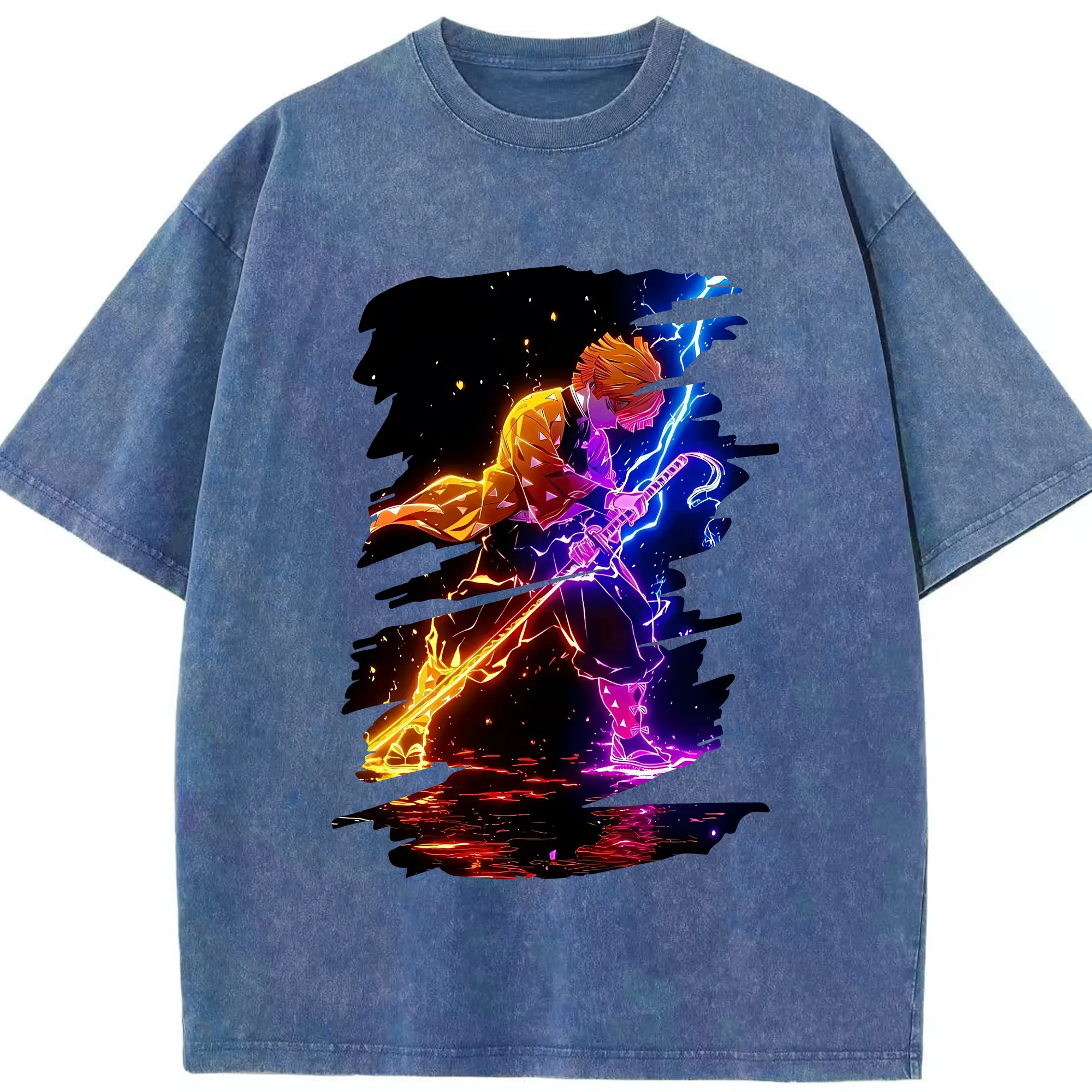 鬼滅の刃 グッズ,我妻 善逸 - 綿100% 半袖Tシャツ ・ フロントプリント ・ 快適 通気性 ・ 日常使い 散歩 スポーツ用